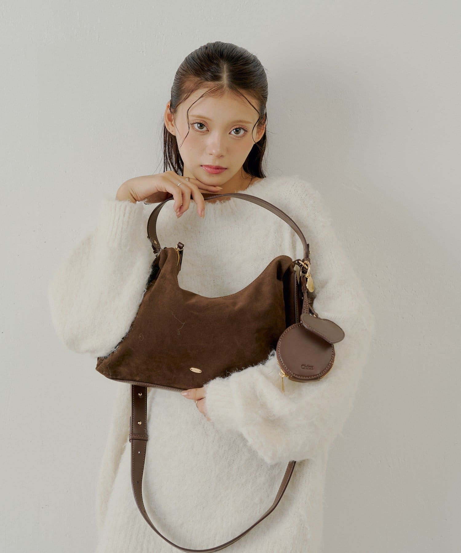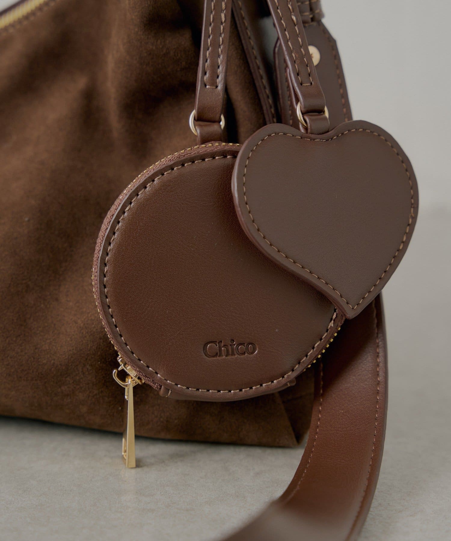 ・ポーチチャームとハートミラーがコーディネートのアクセントに。