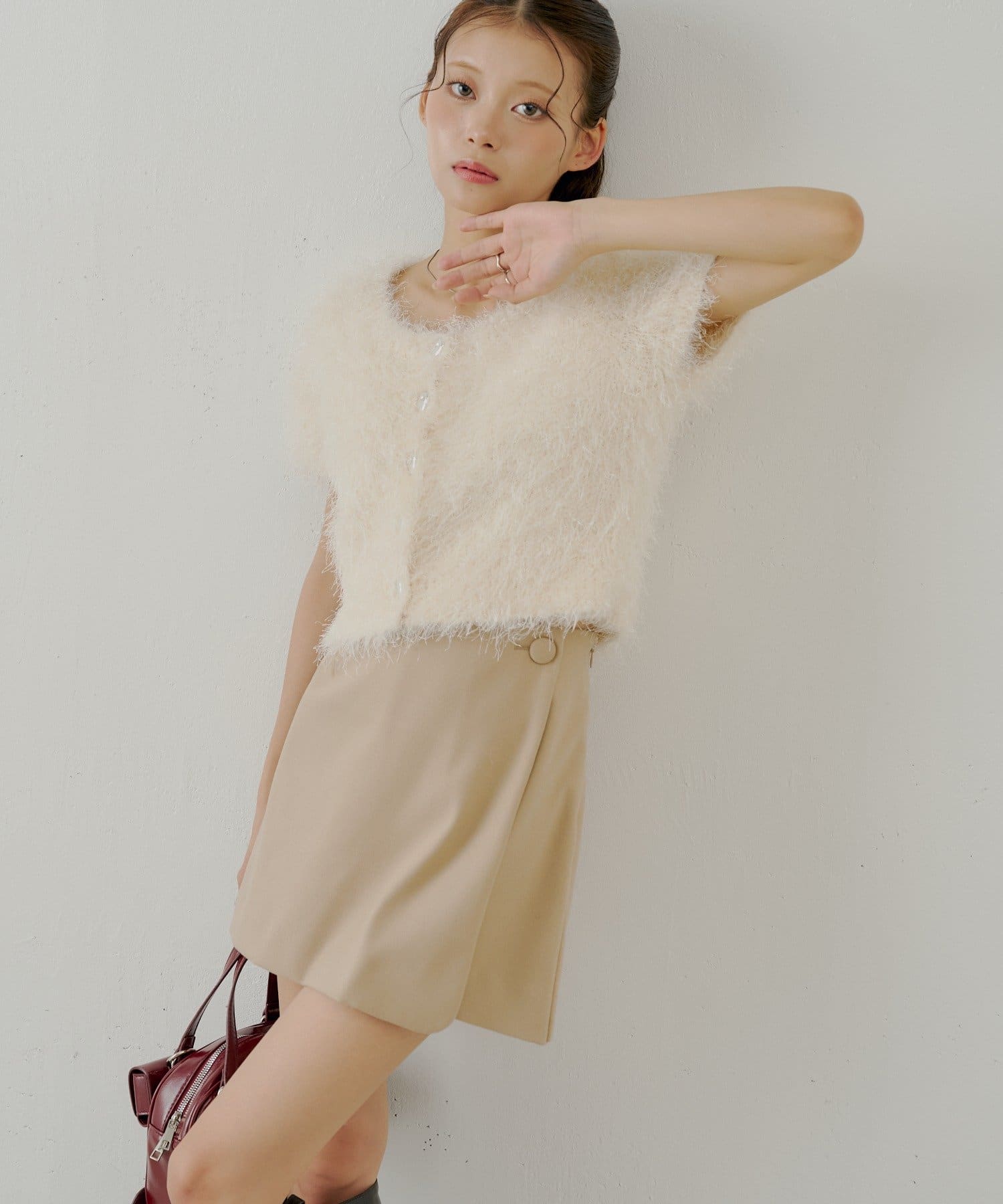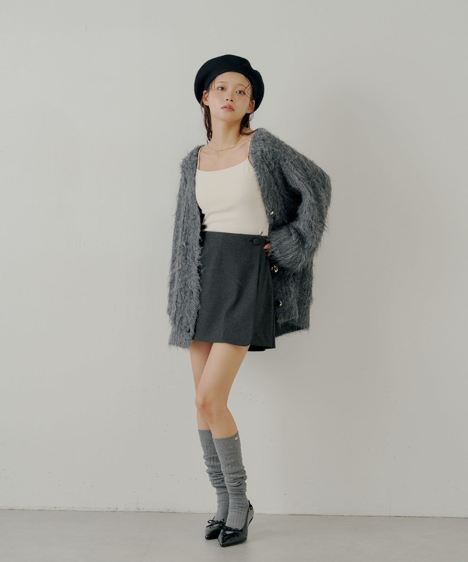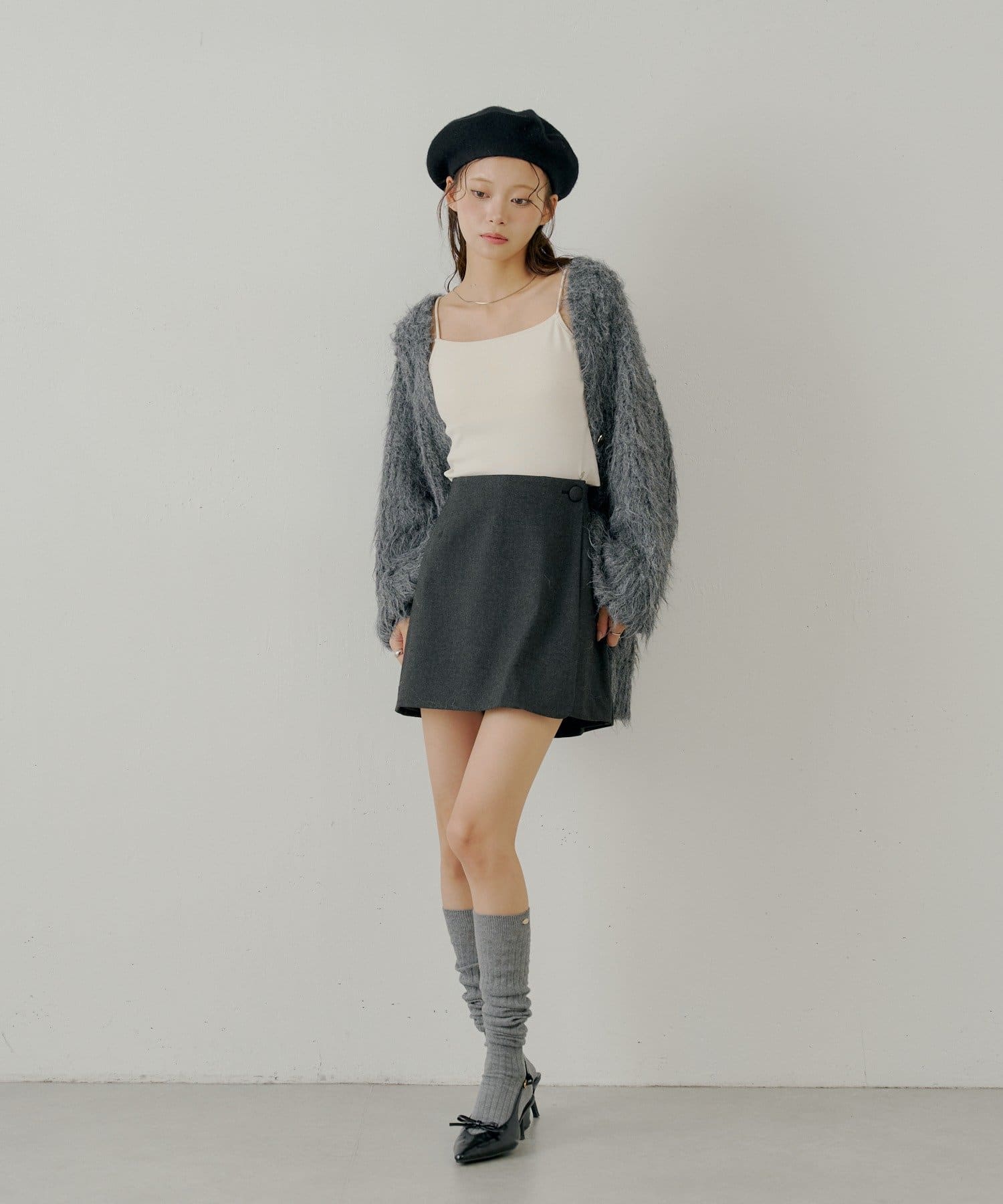 スタイルアップとトレンドを両立したフロントラップミニスカパン登場!