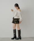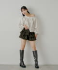・ブラウスを合わせると、フェミニンで上品な印象に。