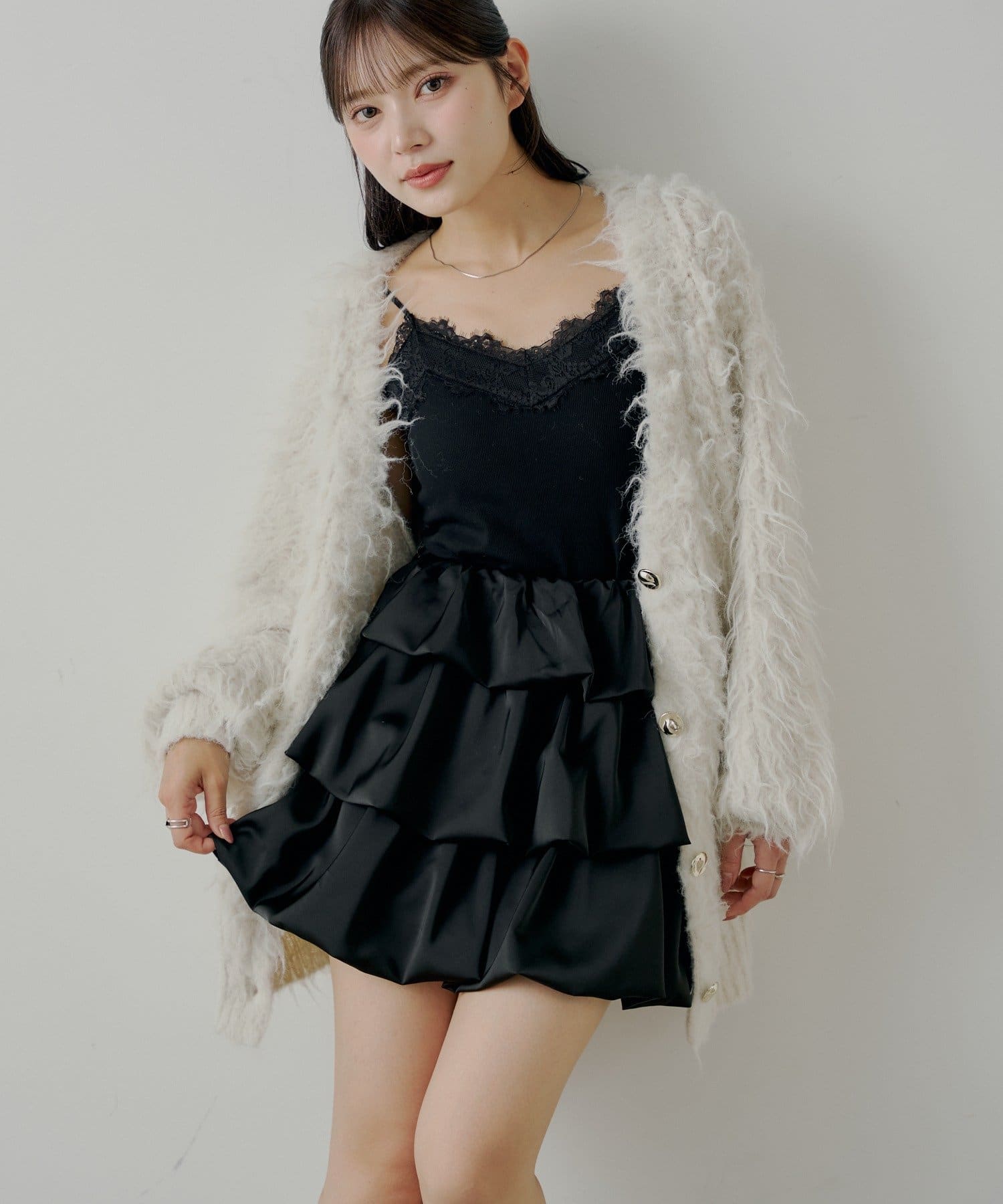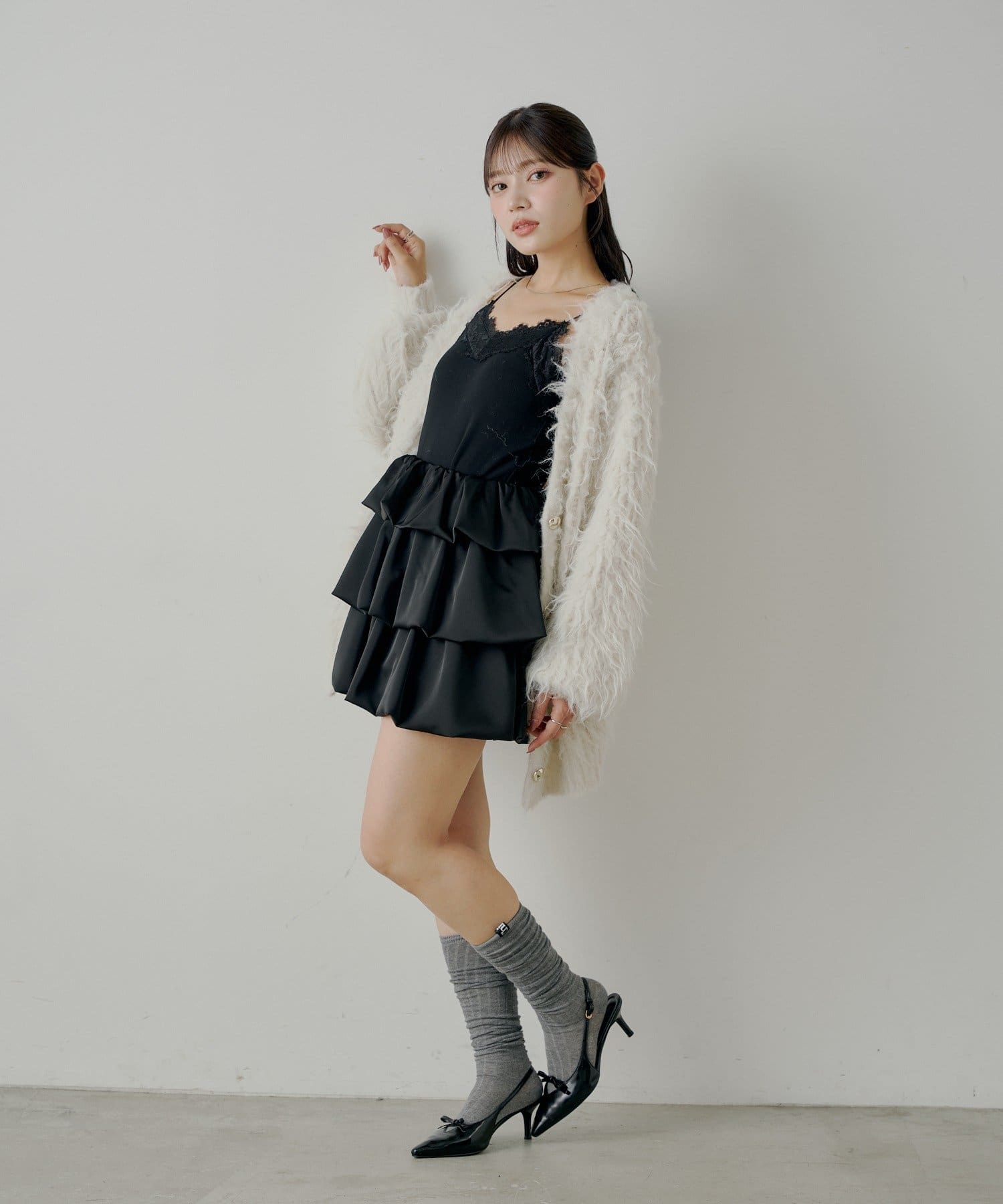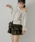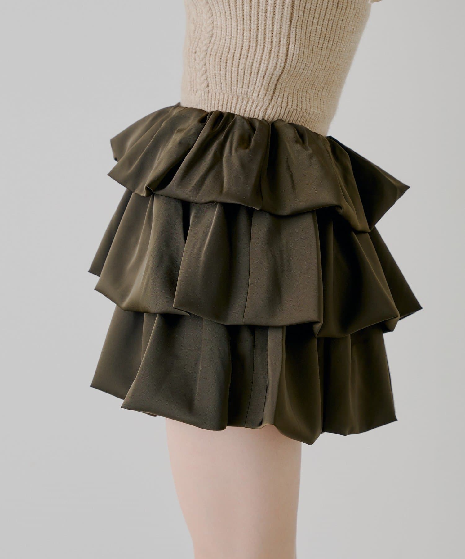 ・ふんわりと広がるティアードデザインが、着こなしに華やかさをプラスするミニスカート。