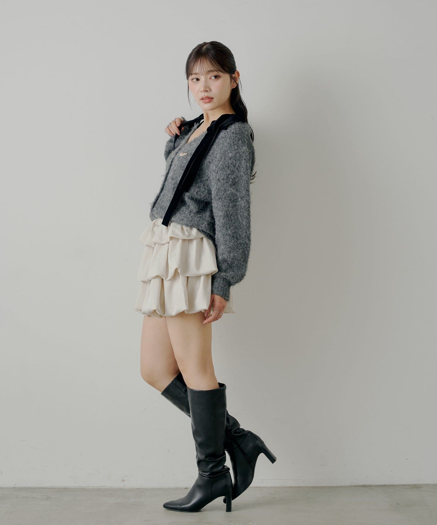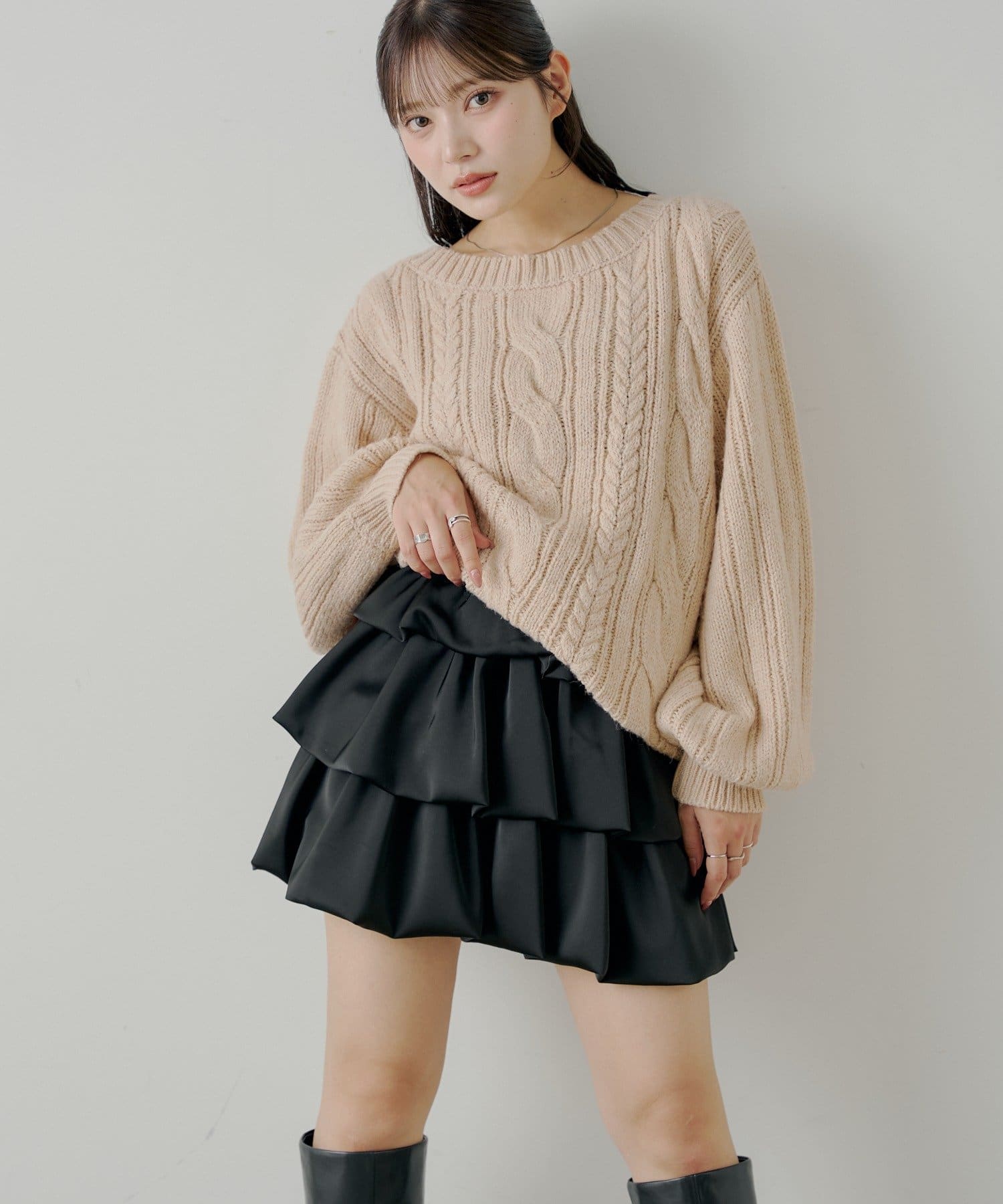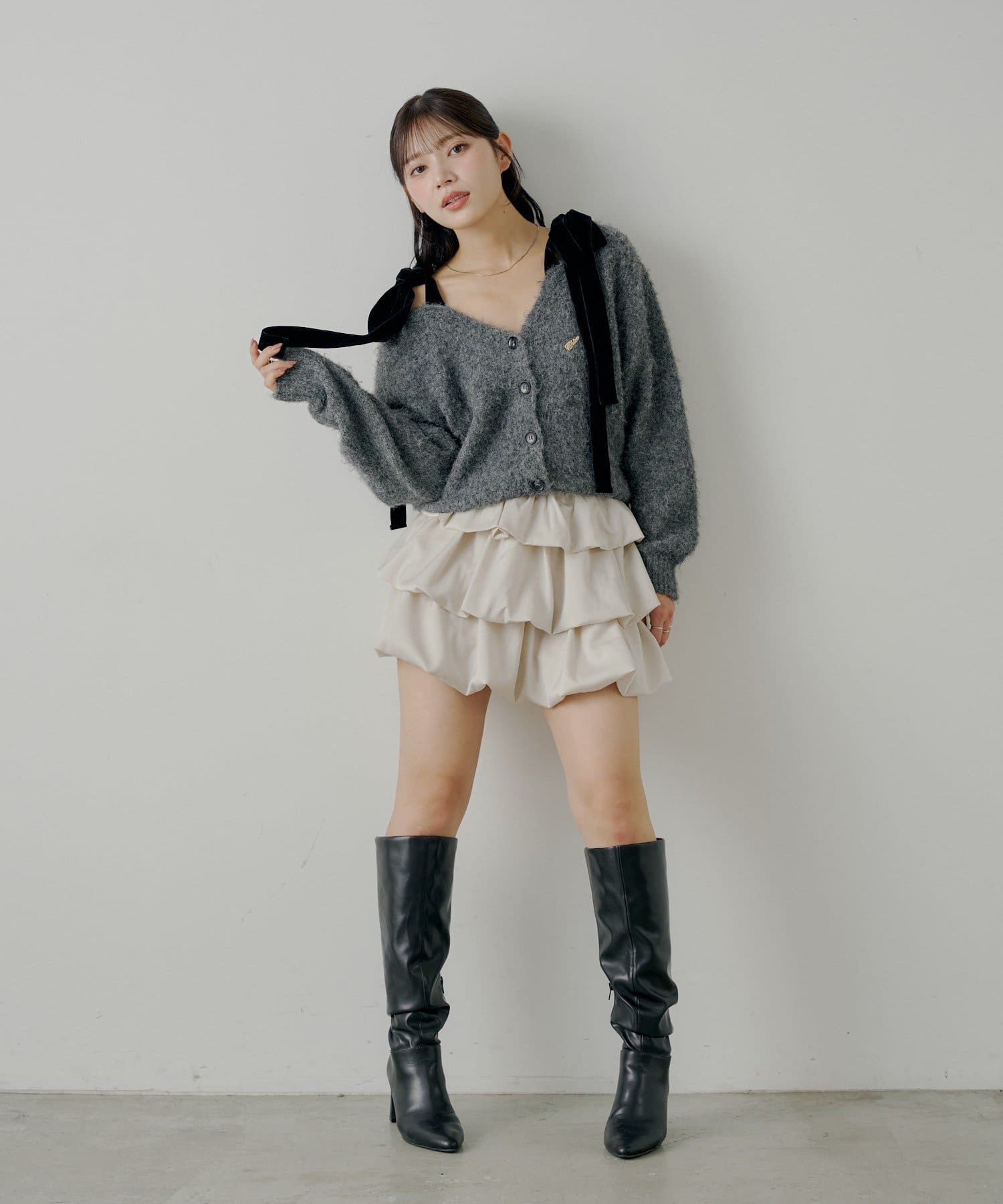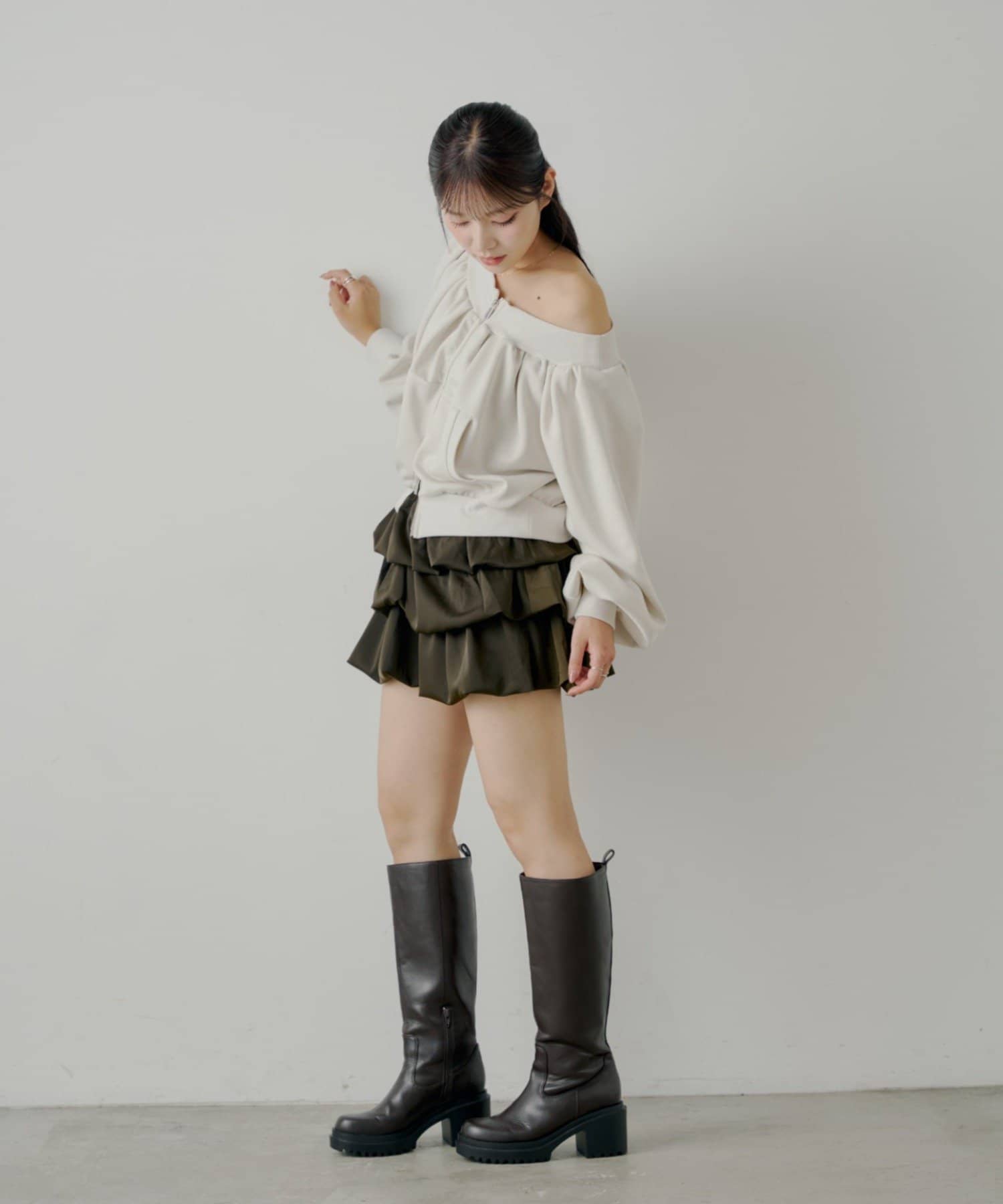 ・ふんわりと広がるティアードデザインが、着こなしに華やかさをプラスするミニスカート。