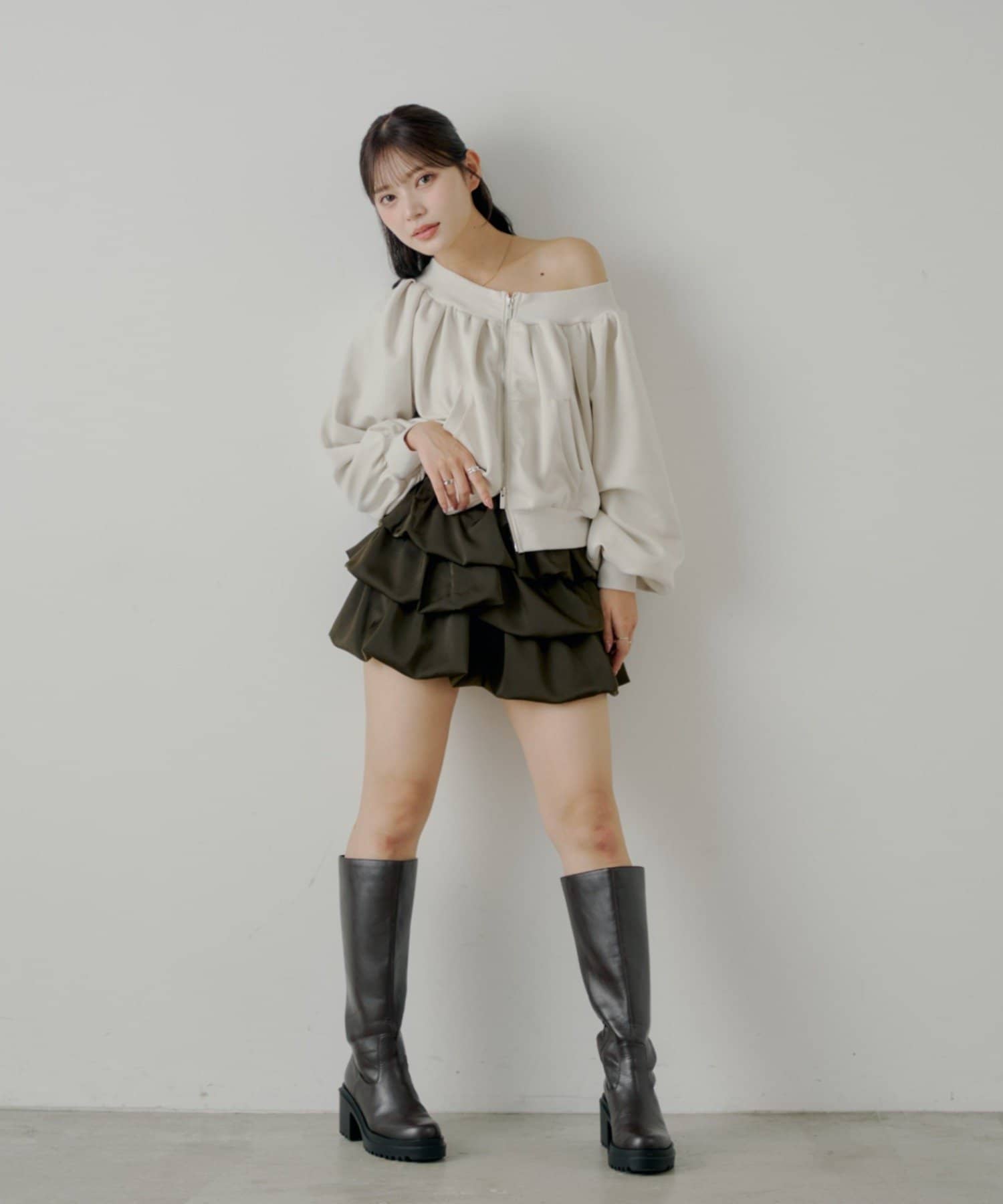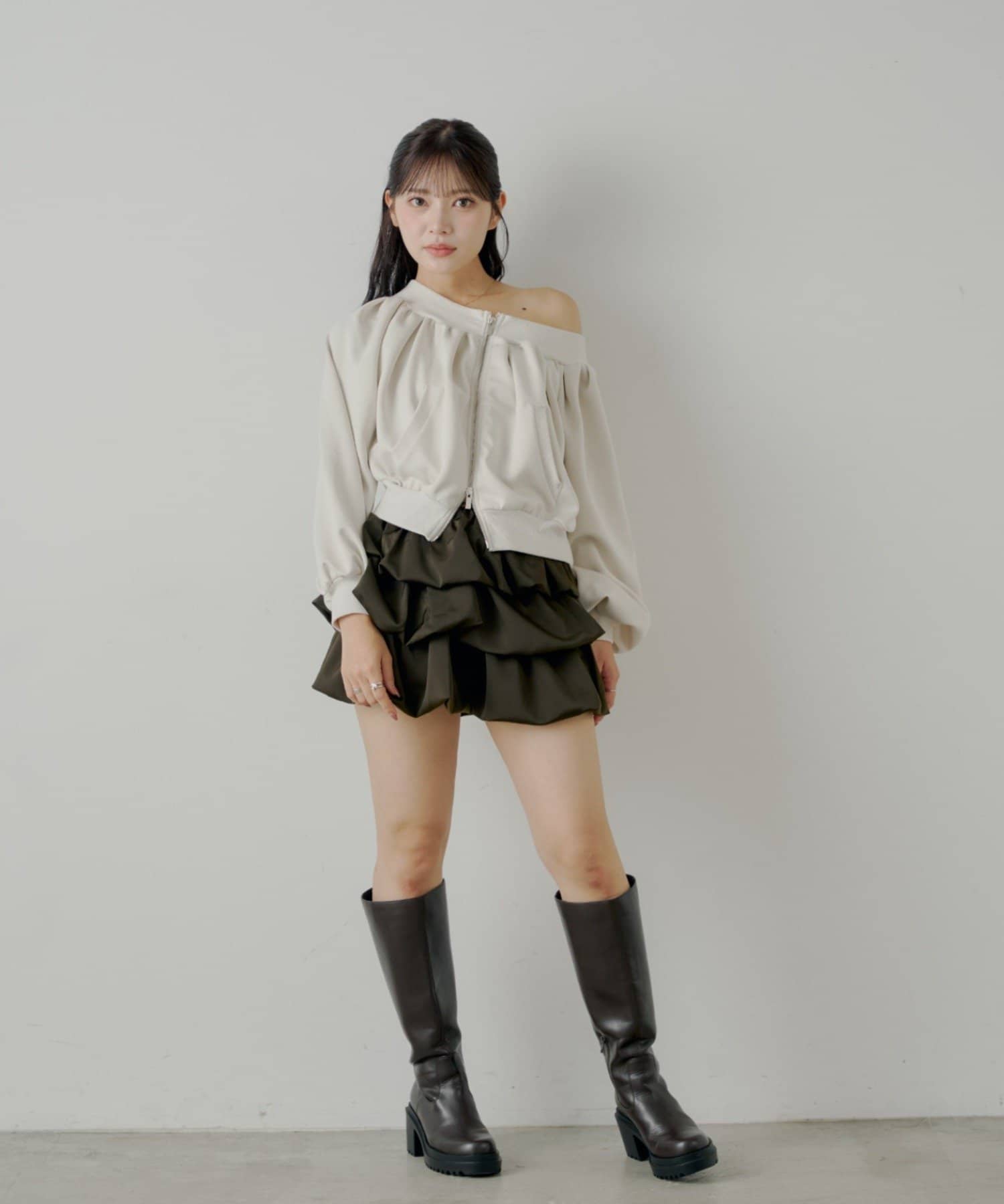 ・バルーンシルエットが、気になる体型をカバーしつつ、脚を細く長く見せてくれる効果も◎