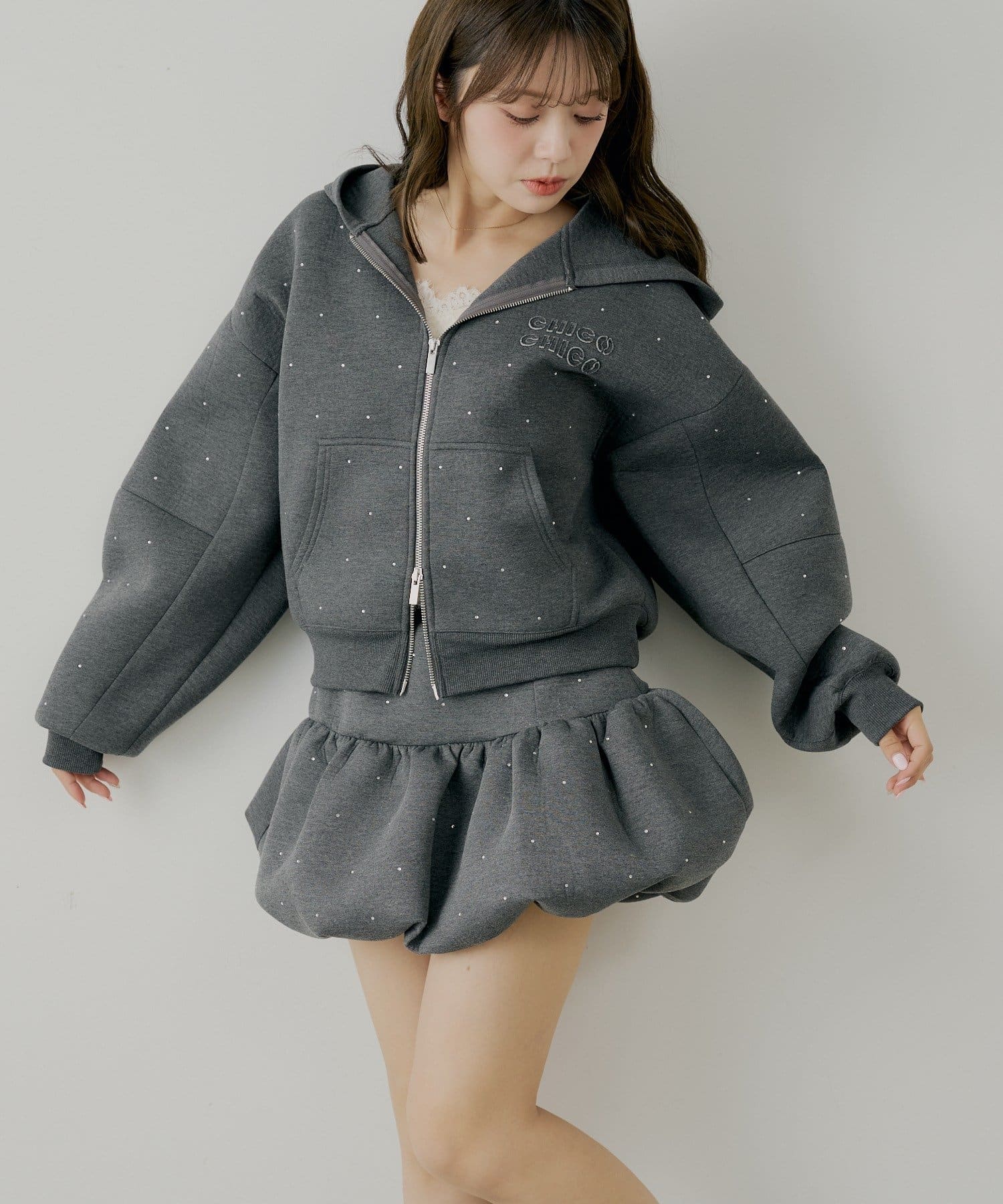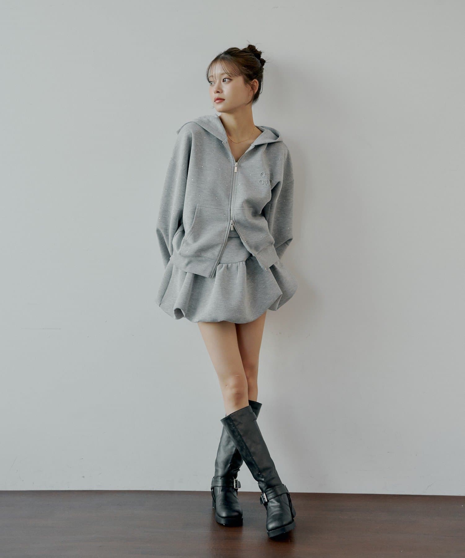 ・同素材のスウェットと合わせてセットアップで着るのが可愛くておすすめです。