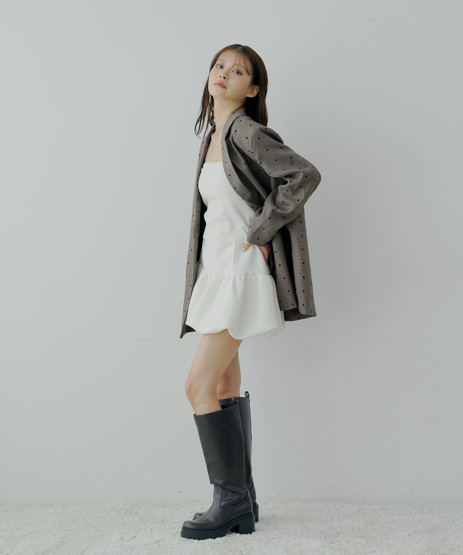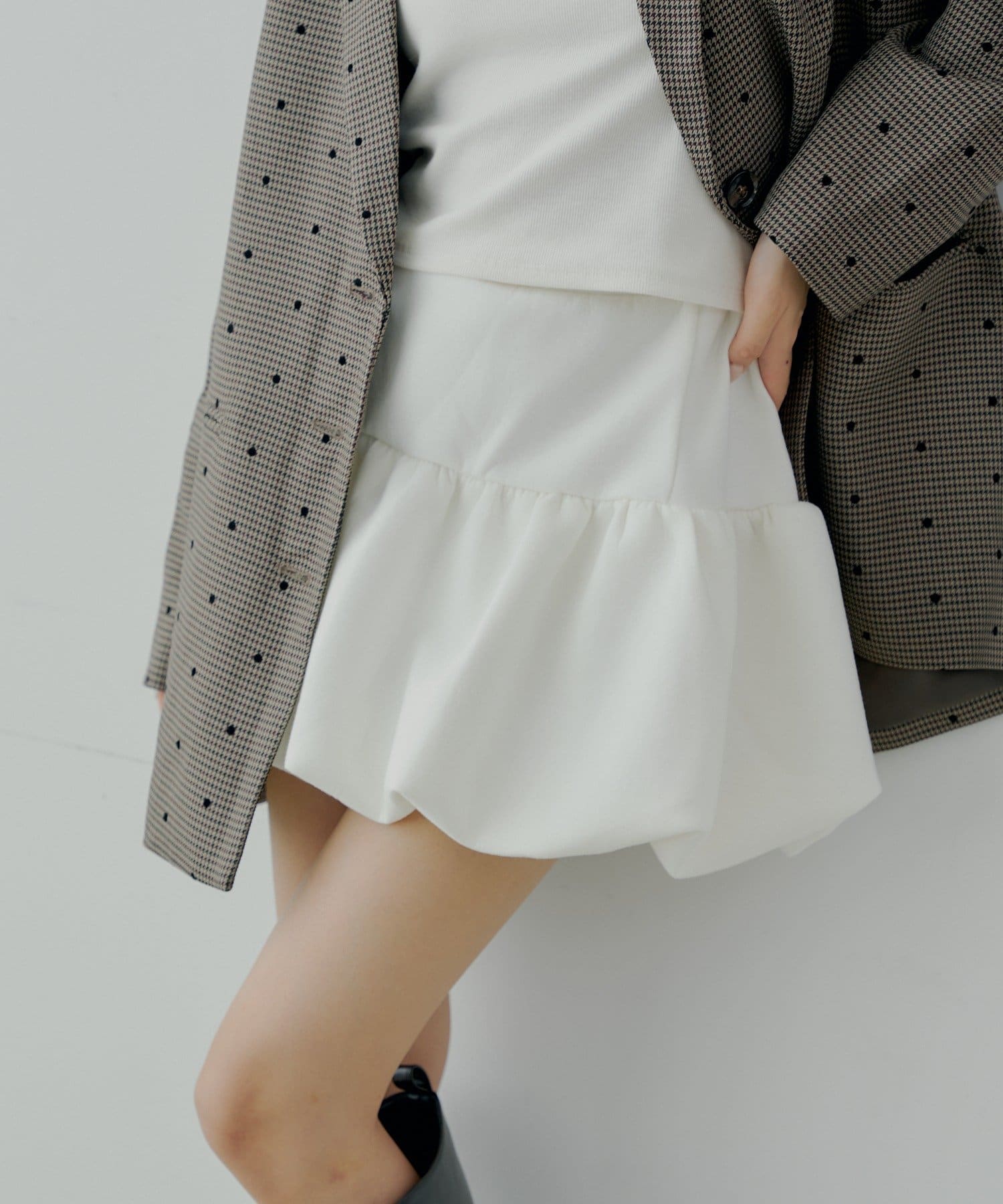 ・裾のバルーンシルエットが歩くたびにふんわりと揺れ、女性らしい可愛らしさを演出します。