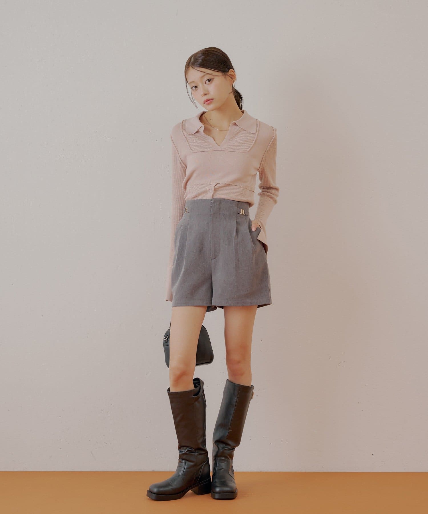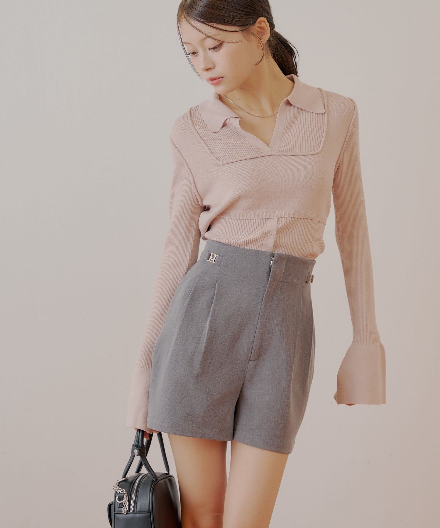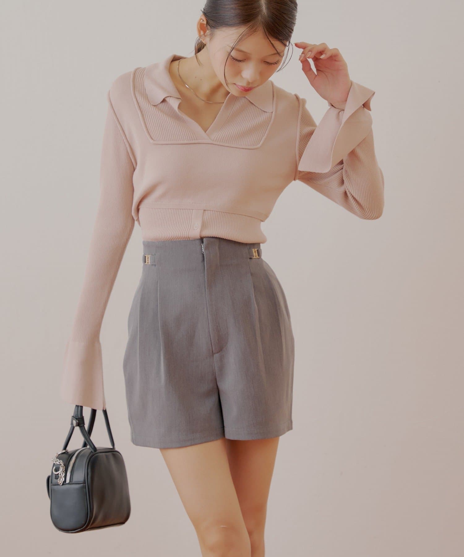 ・ウエスト部分に施されたチャームが目を惹くタックショートパンツ。
