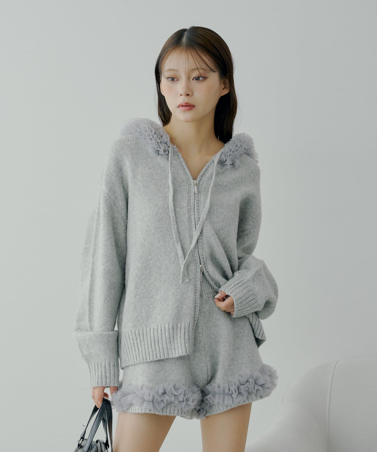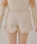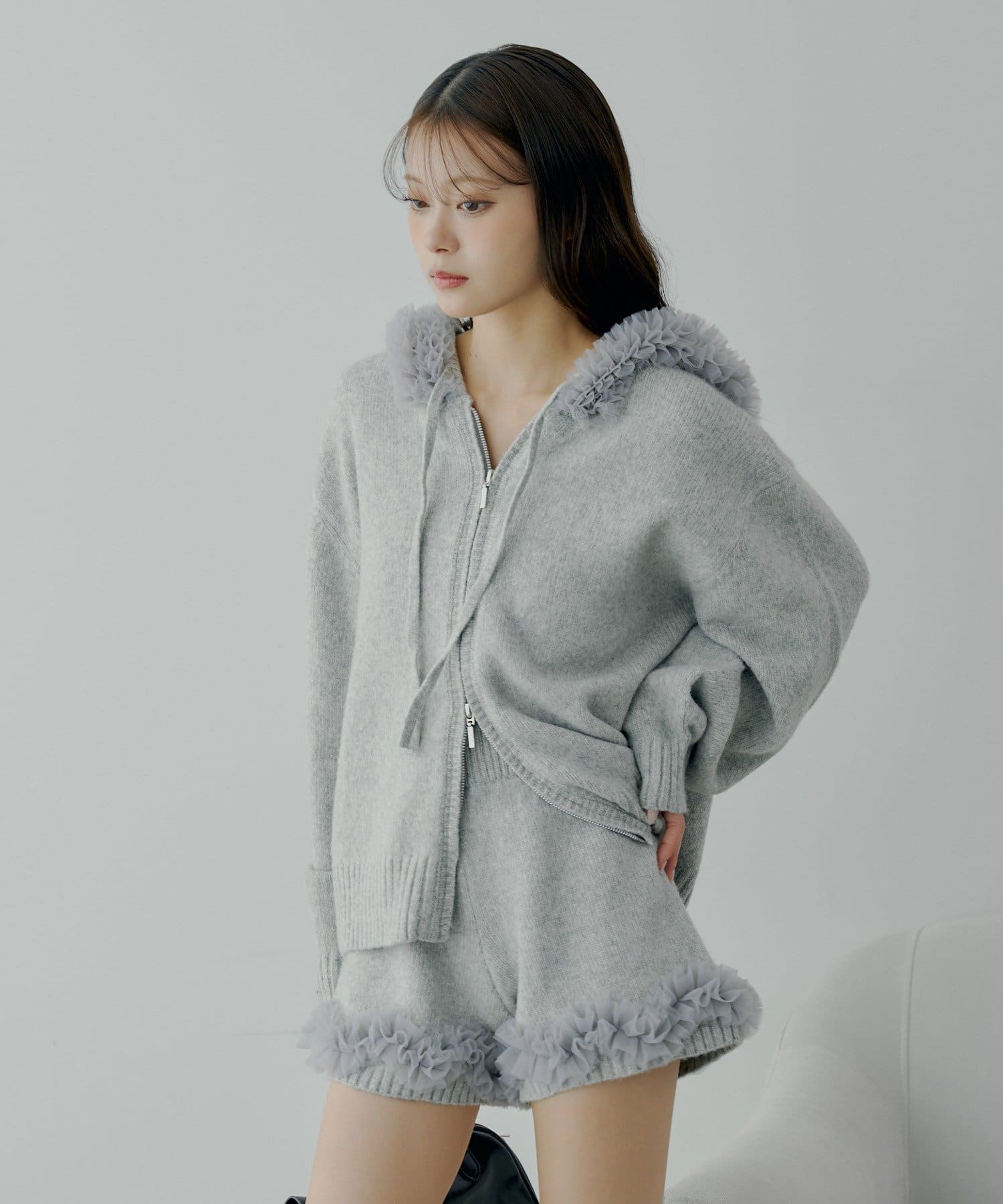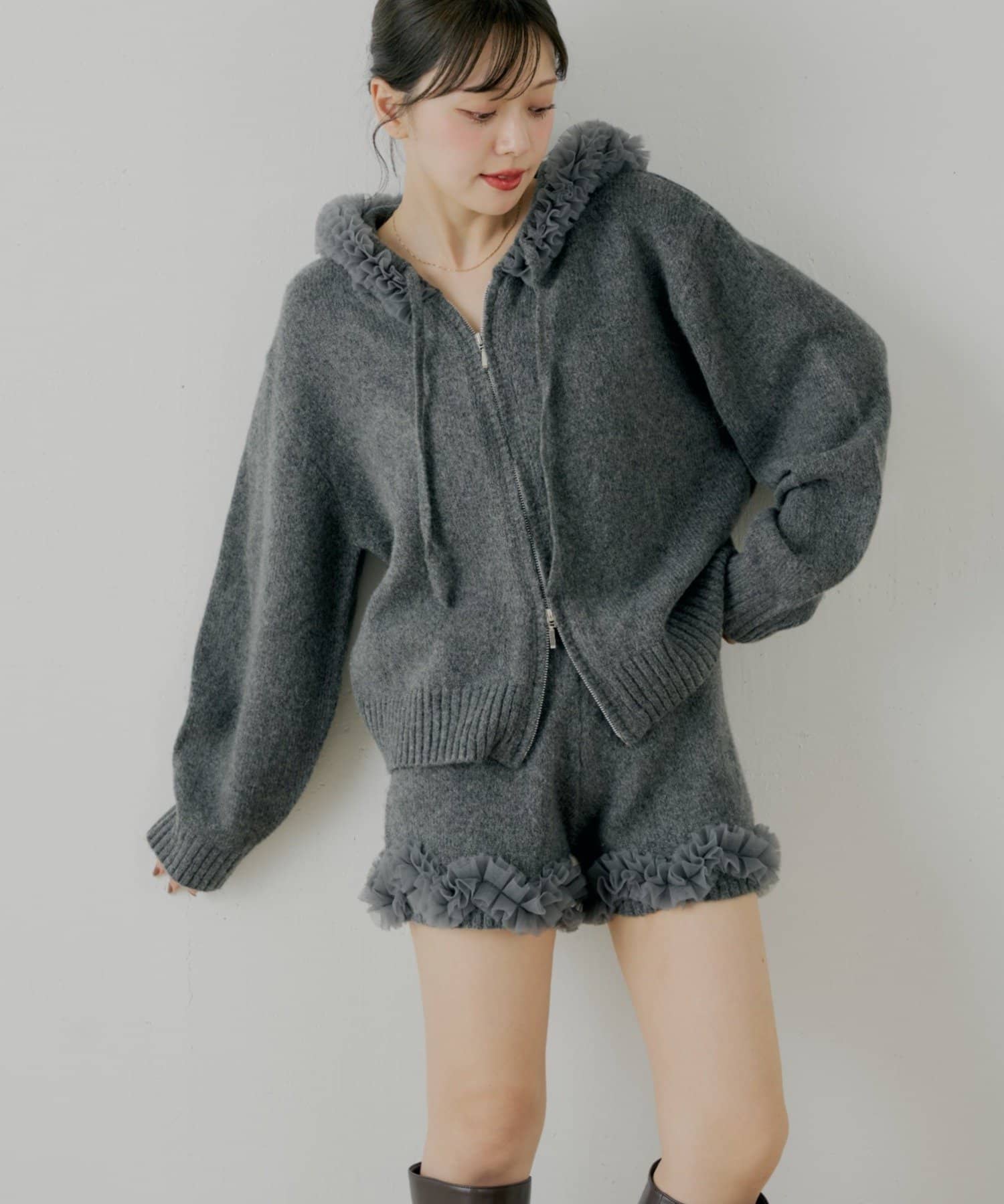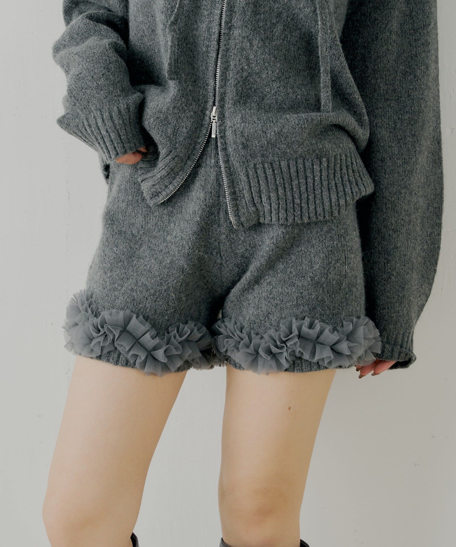 ふわふわチュールで甘さをプラスする裾フリルニットショートパンツ登場!