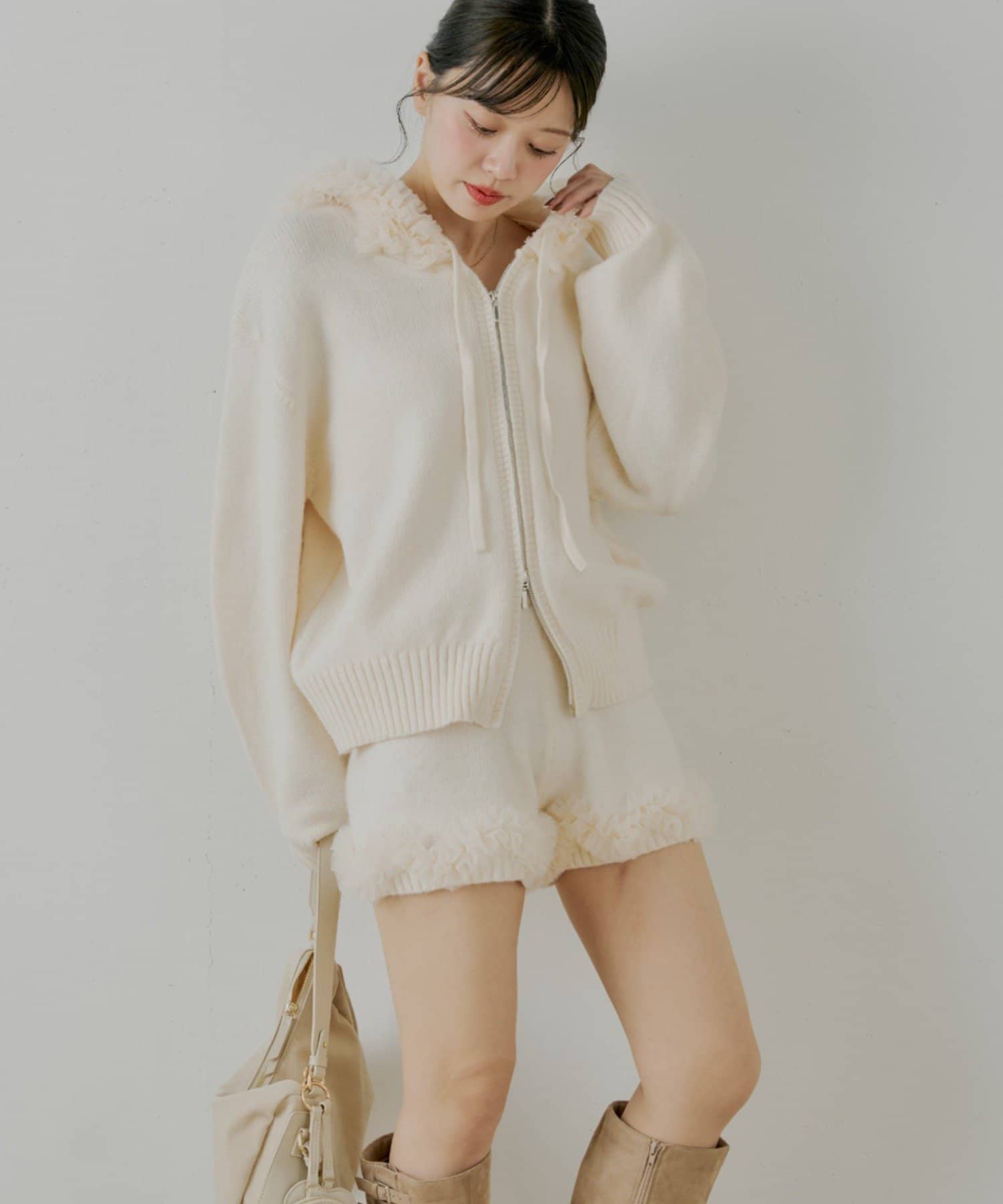 • Chico(チコ) 【セットアップ対応】裾フリルニットショートパンツ