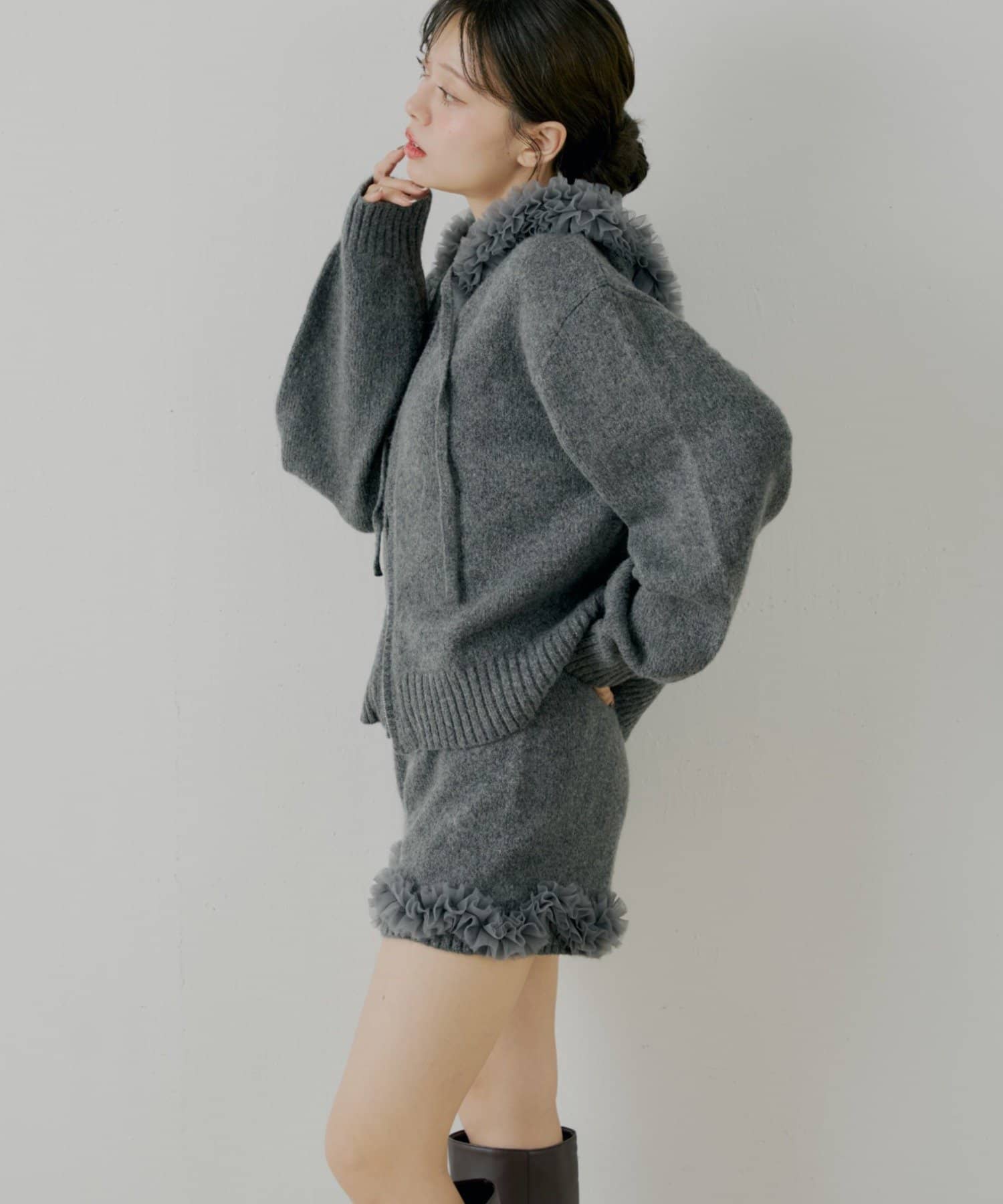 ・歩くたびにふわりと揺れるチュールフリルが、シンプルなニットに華やかさをプラスしてくれます。