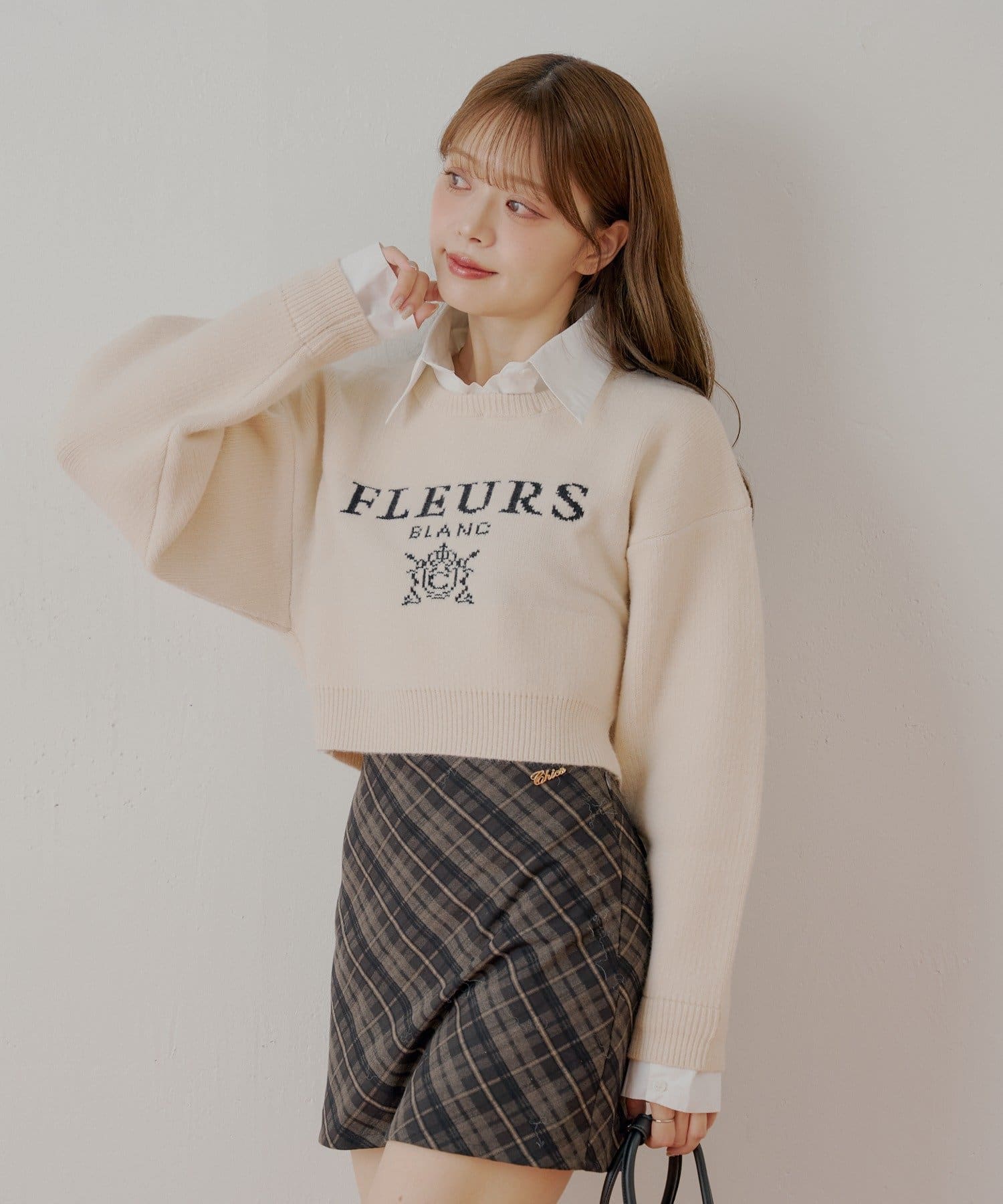これ一枚でトレンドのレイヤードスタイルが叶うロゴジャガードショートニット登場!