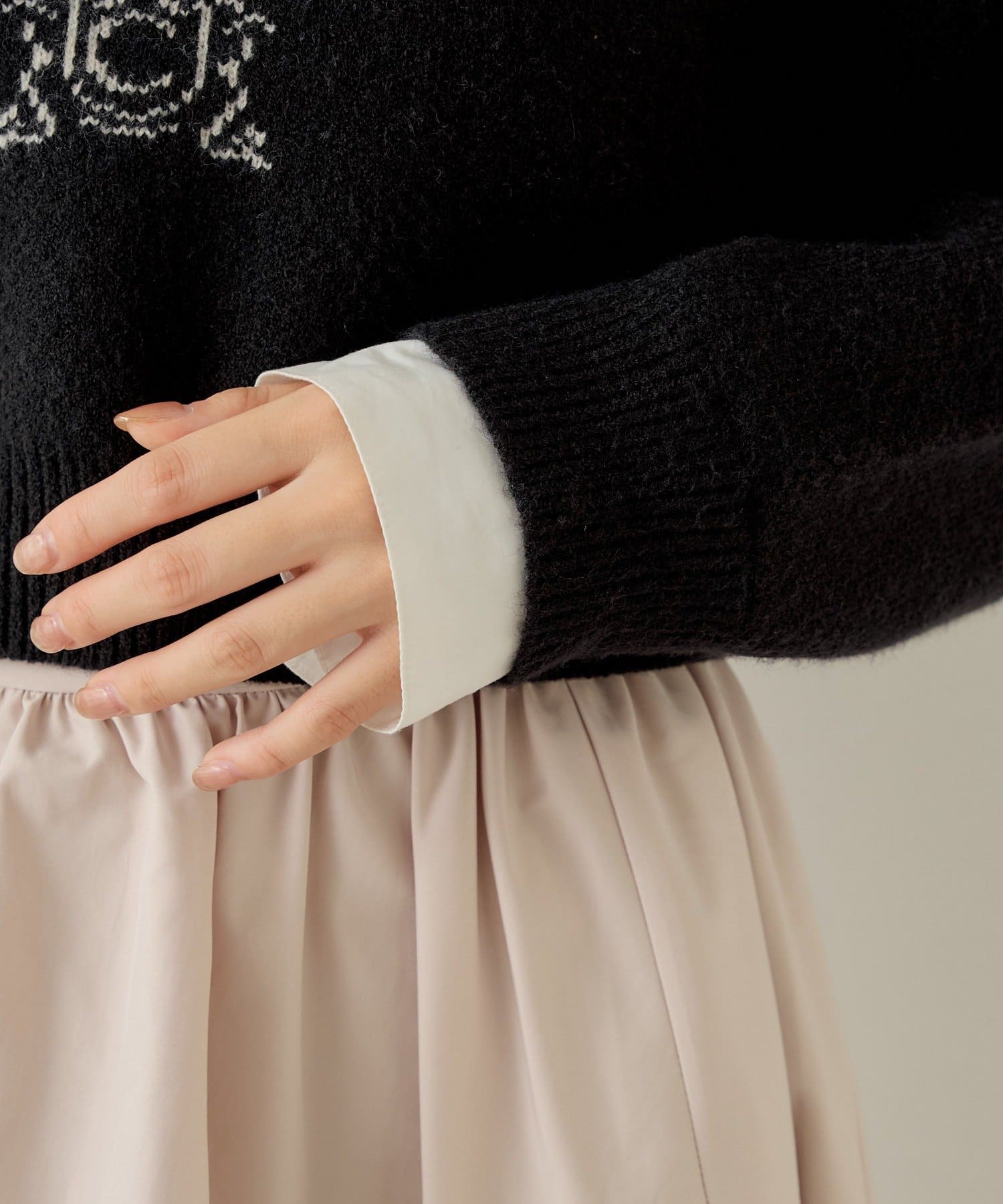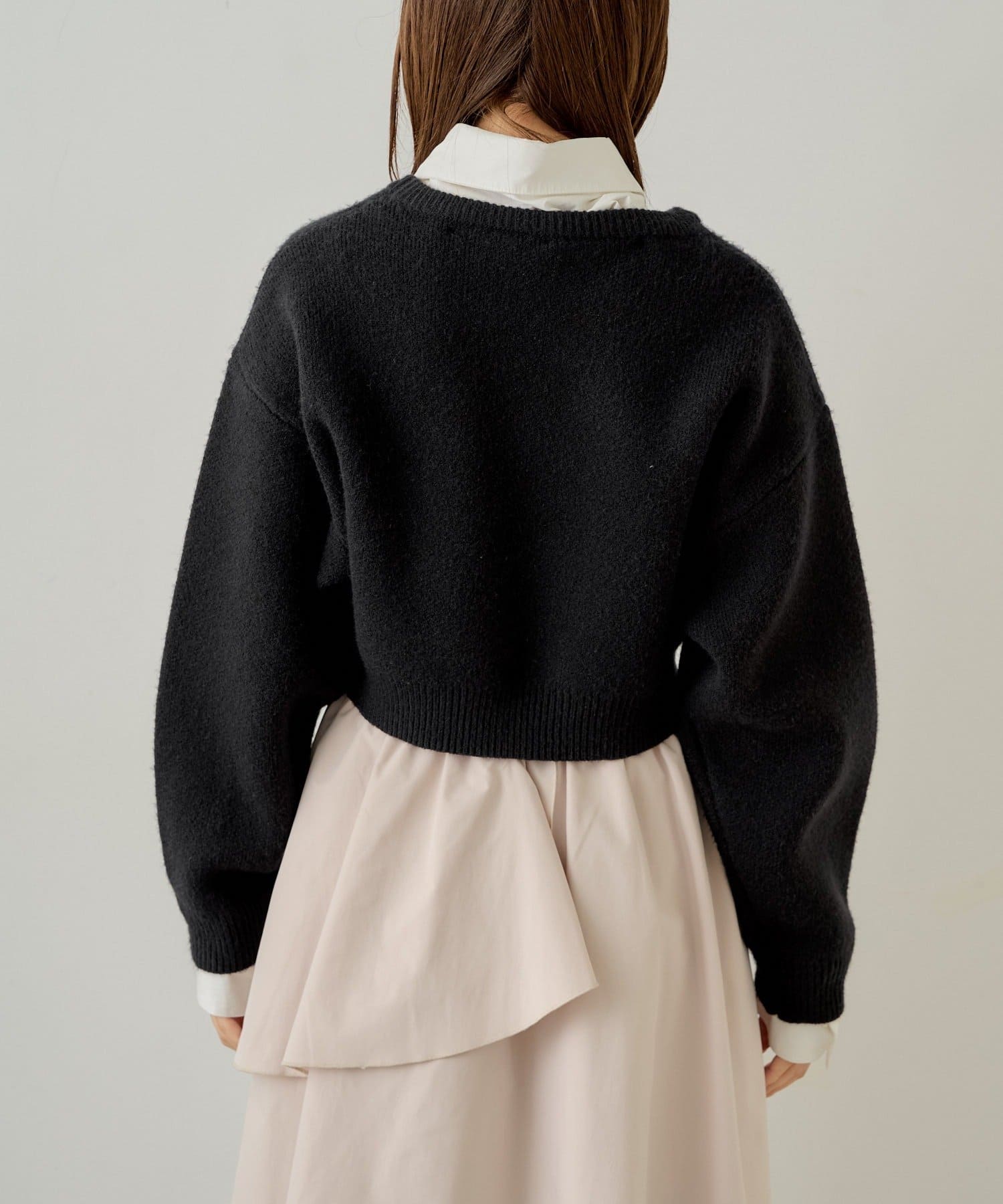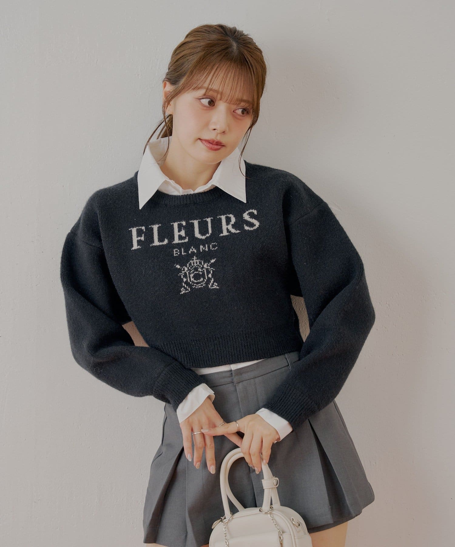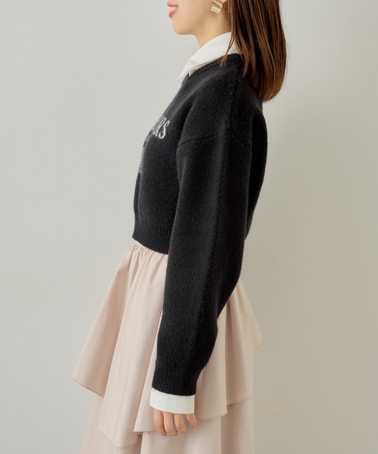 ・トレンドのレイヤードスタイルが叶う襟取り外しロゴジャガードショートニット。