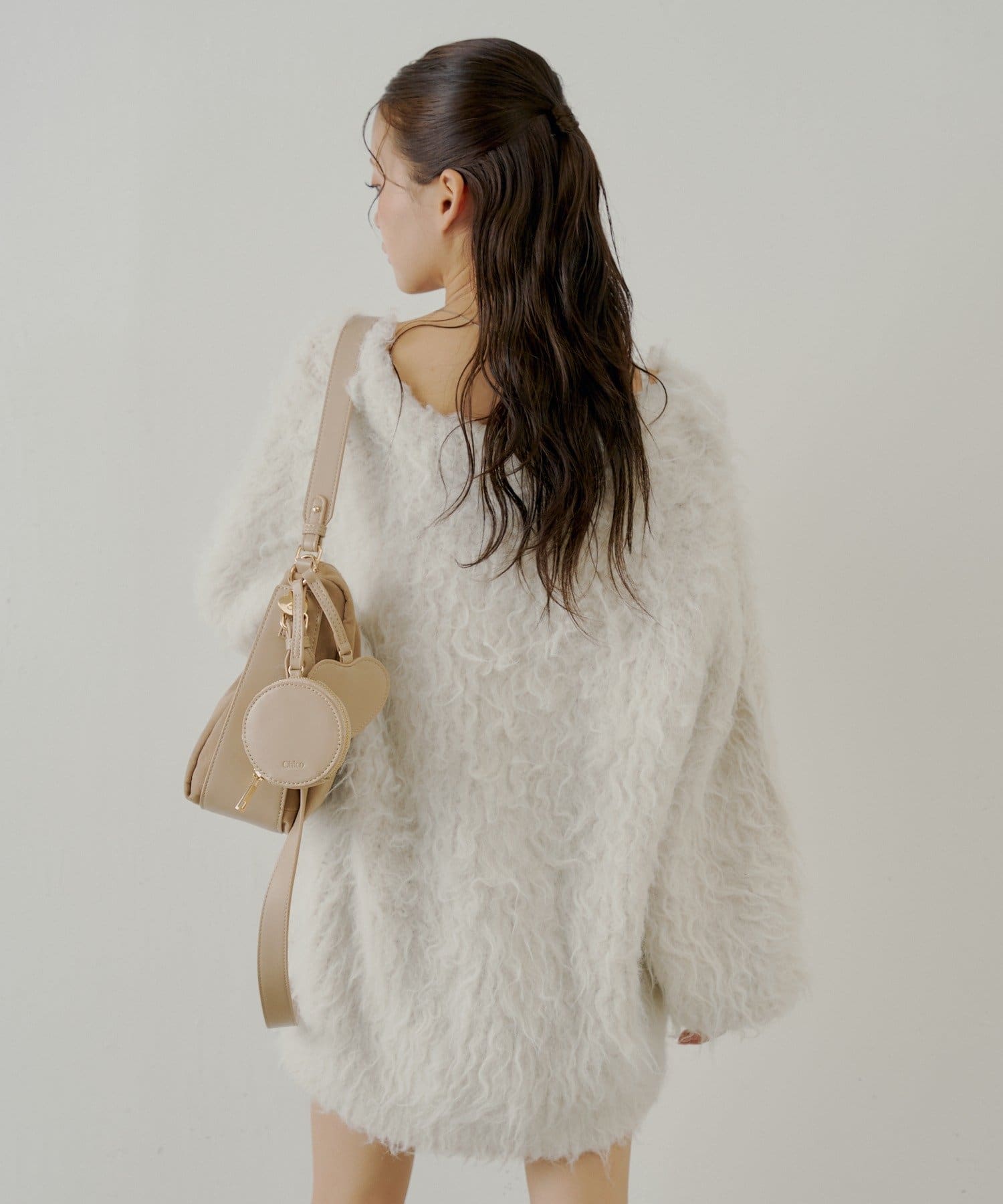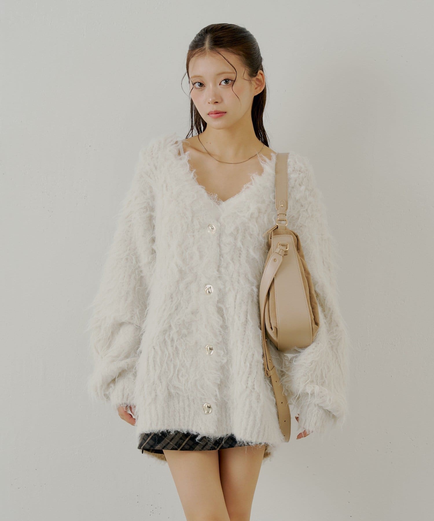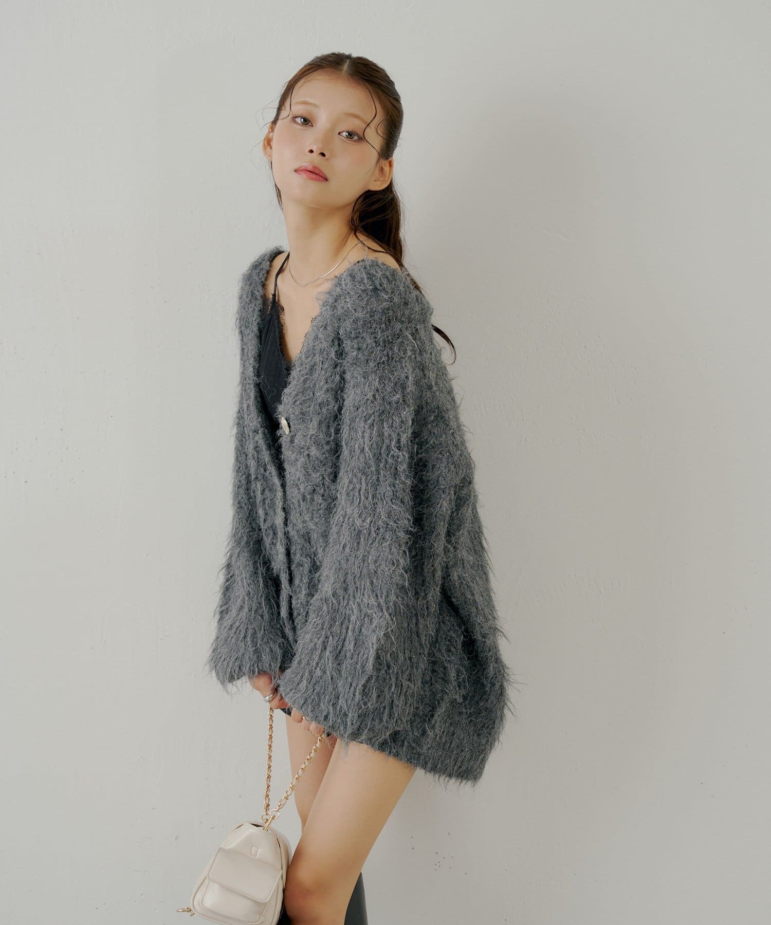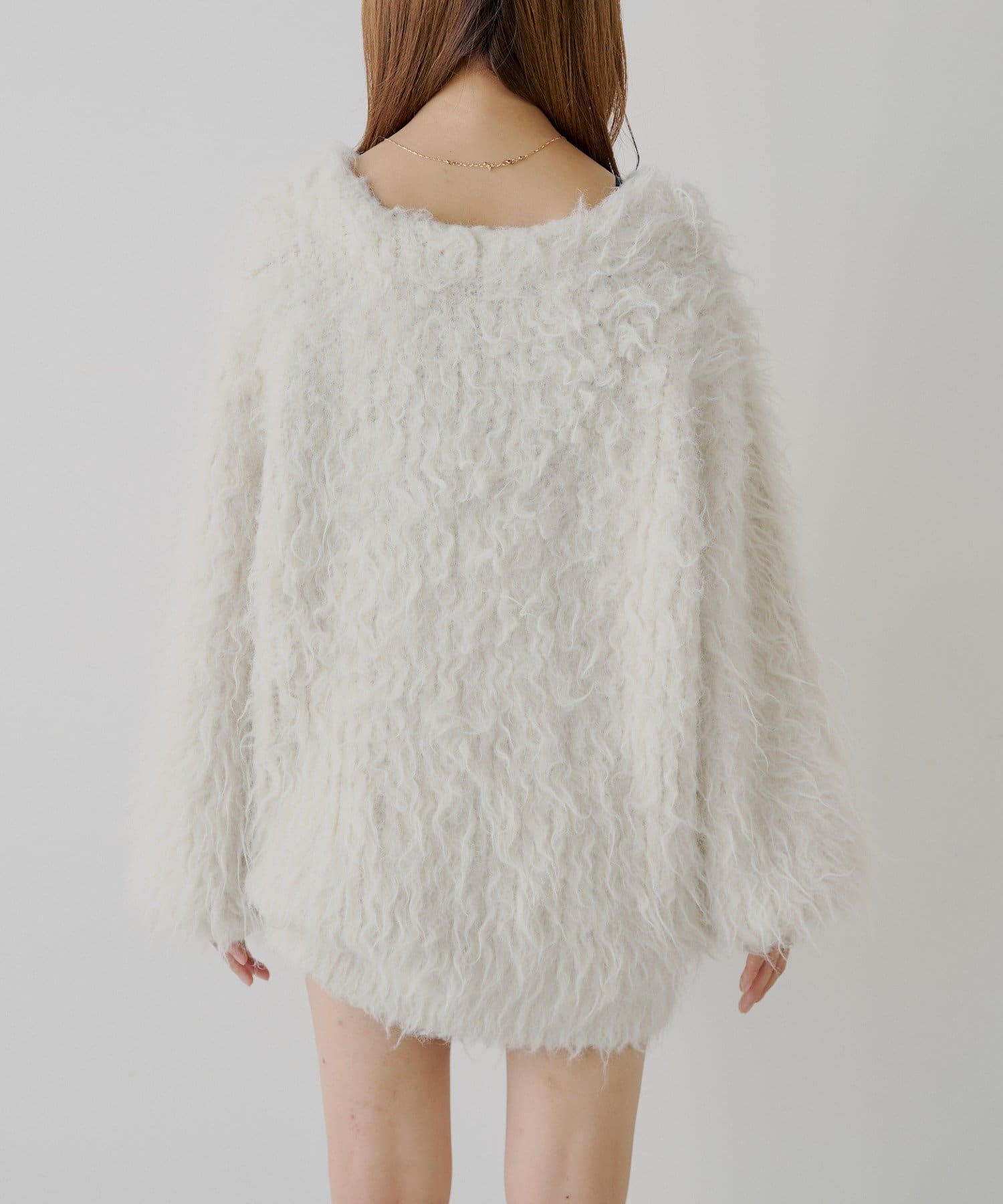 ・ふわふわのシャギー素材が可愛いルーズカーディガン。