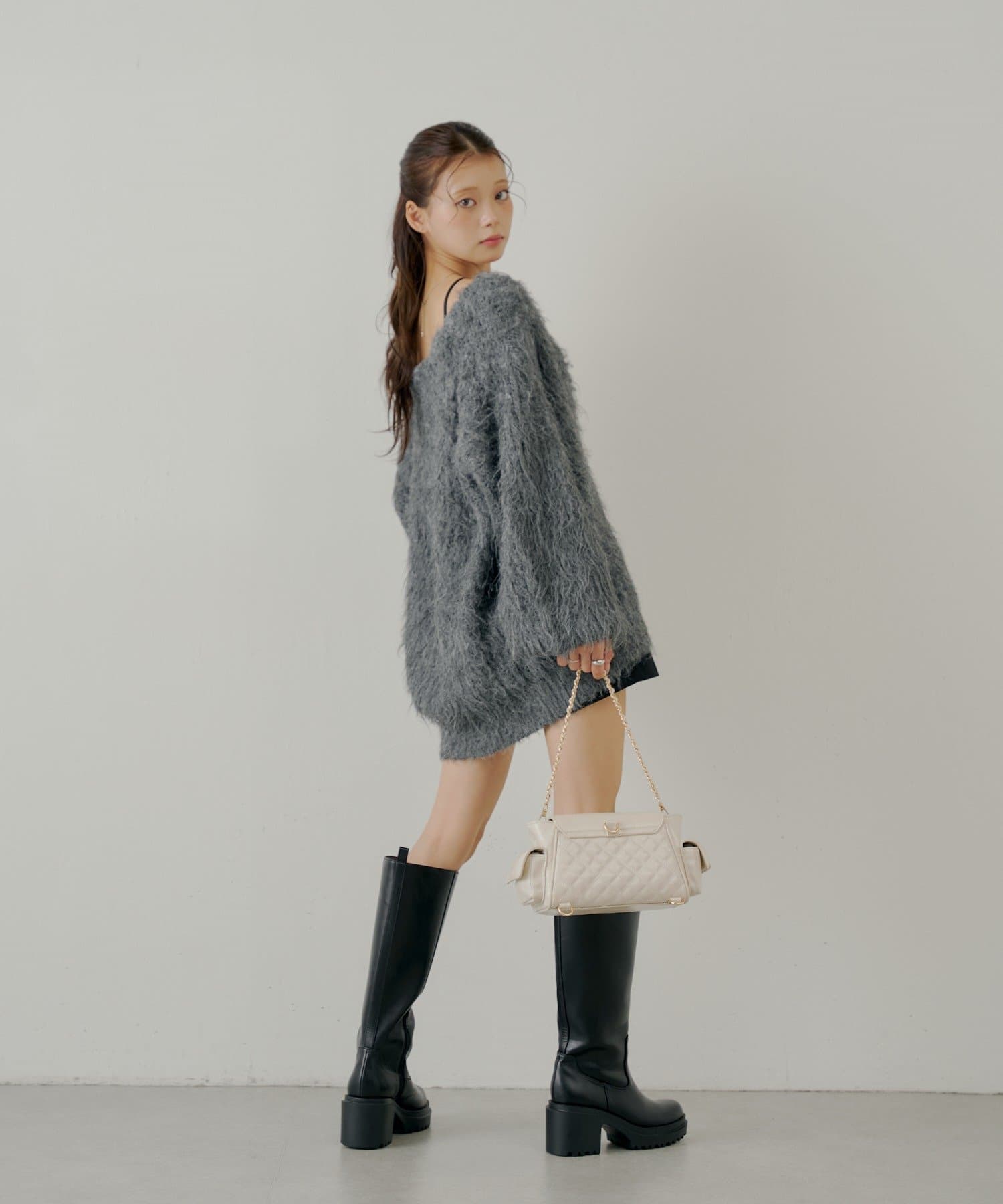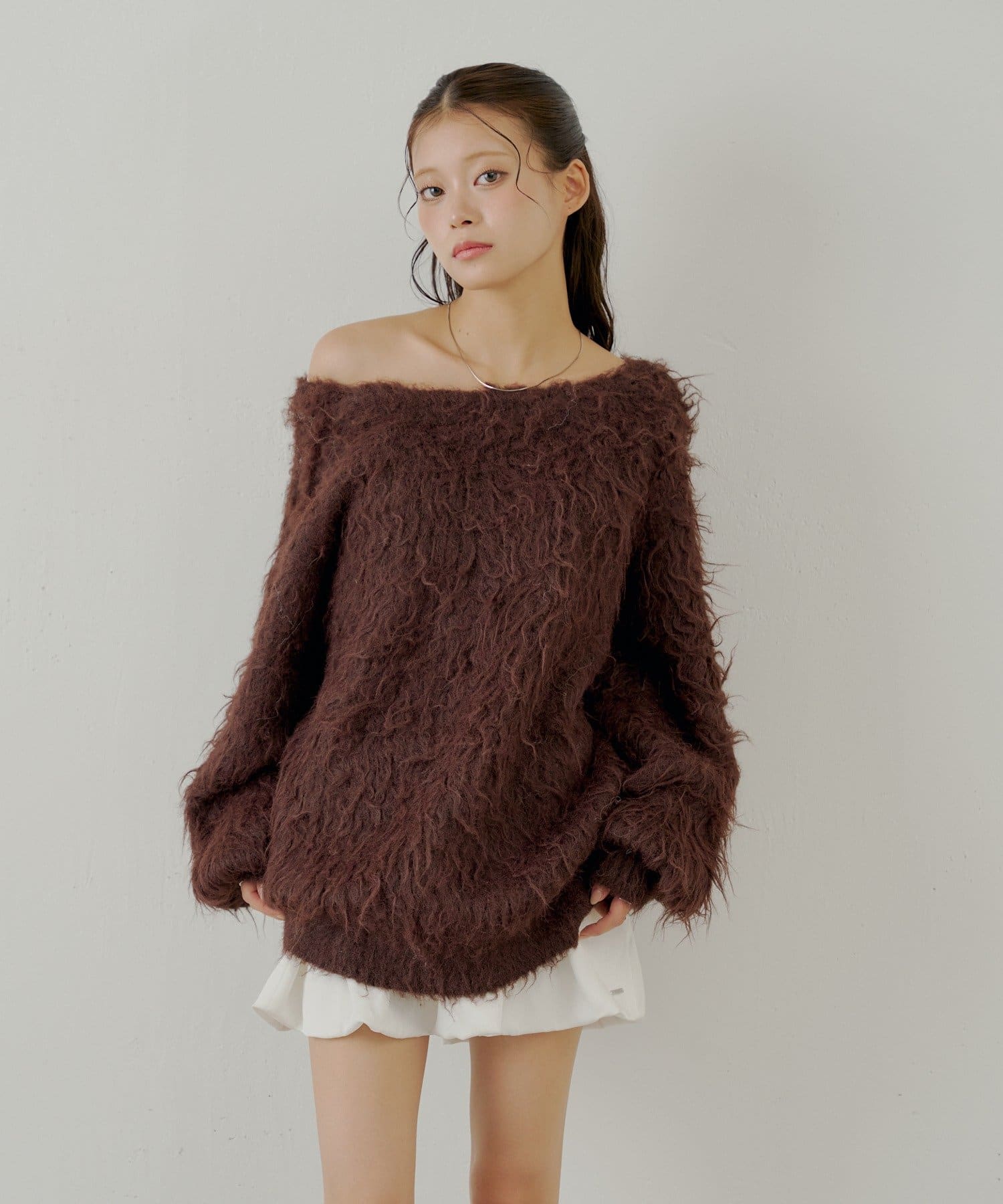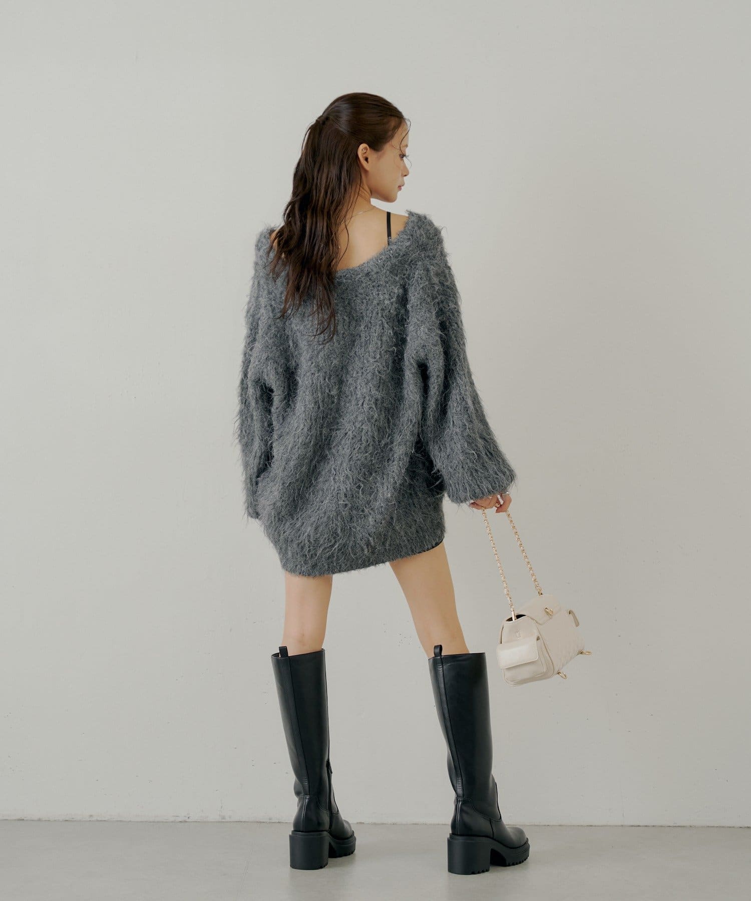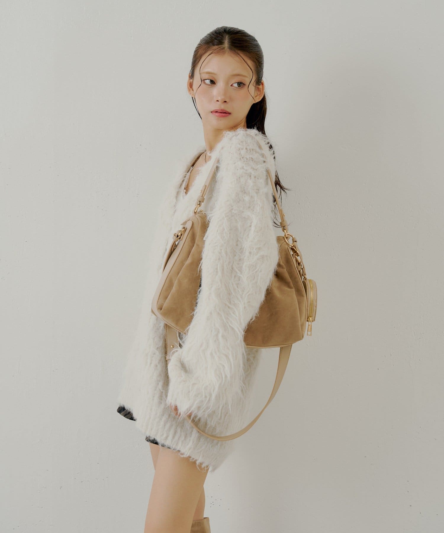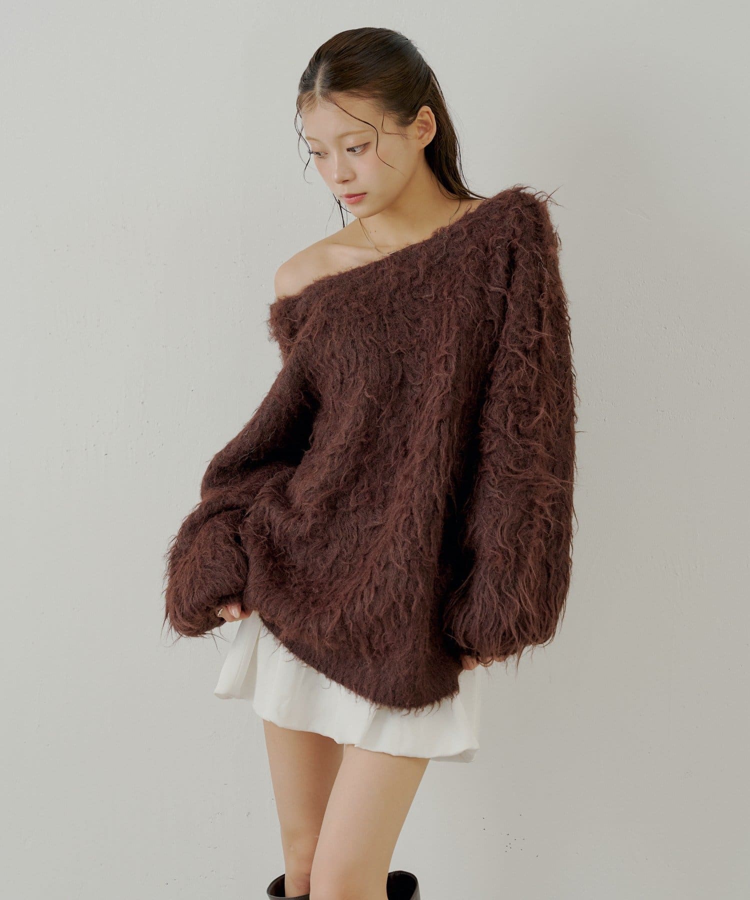 ・ふわふわのシャギー素材が可愛いルーズカーディガン。