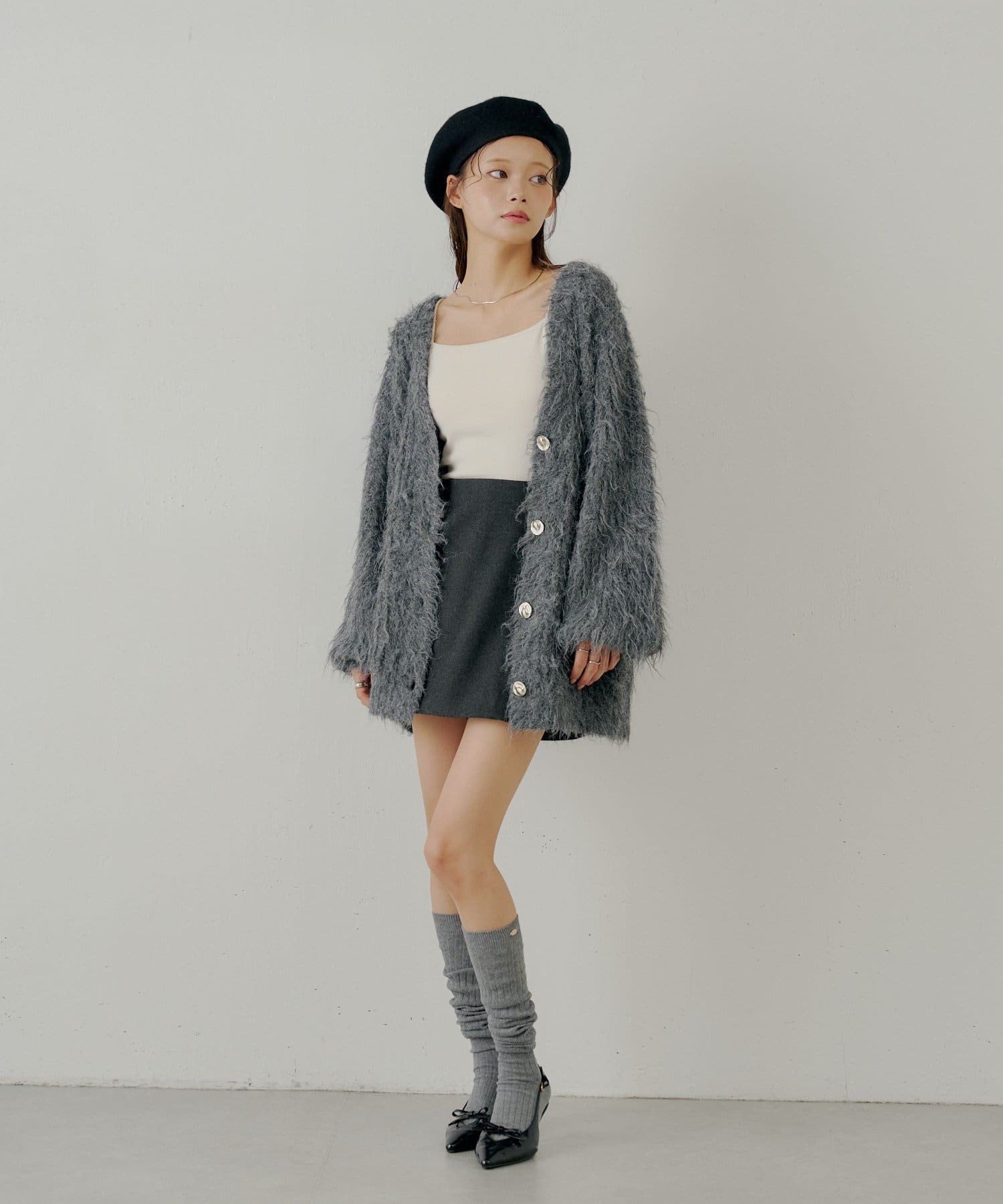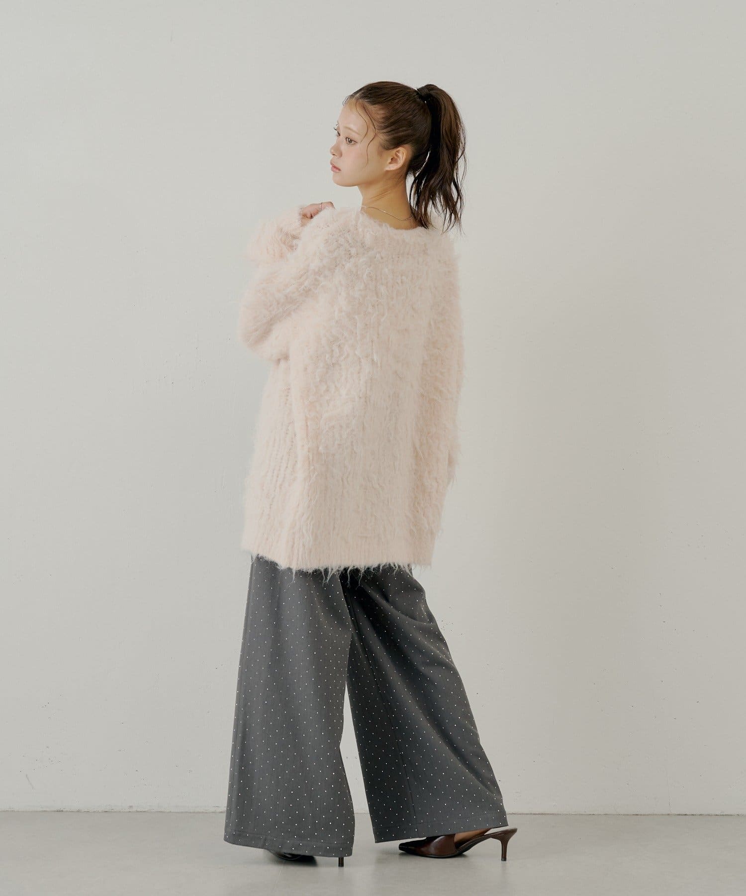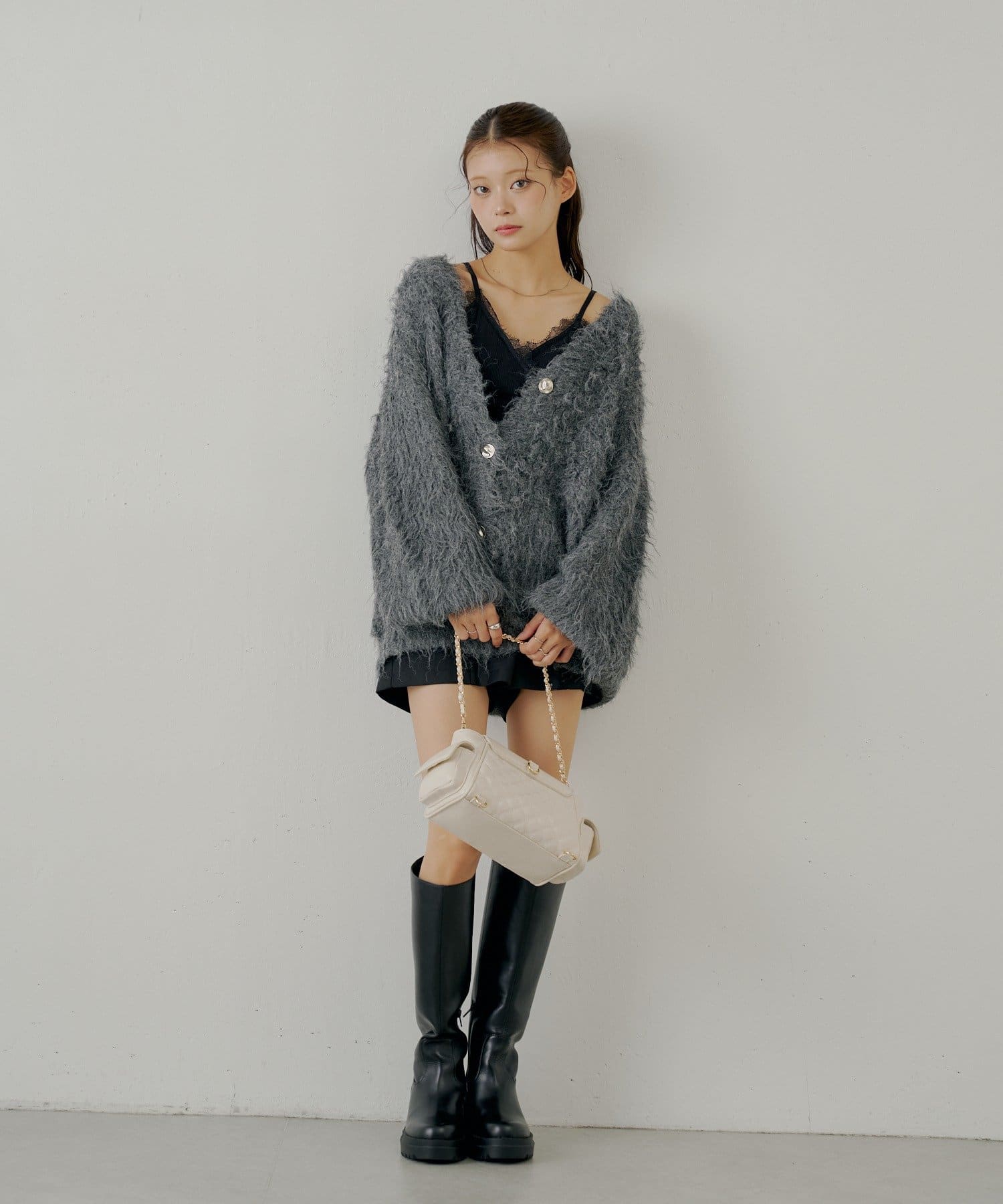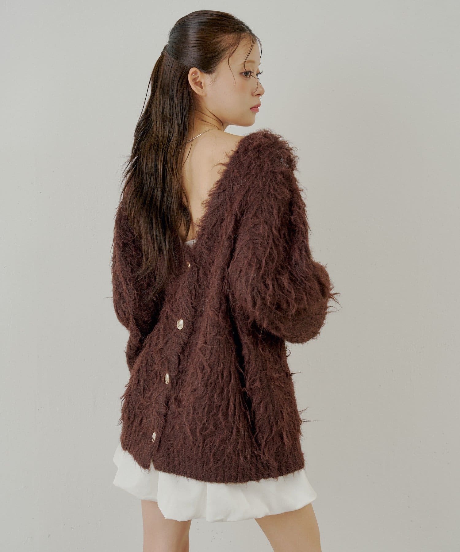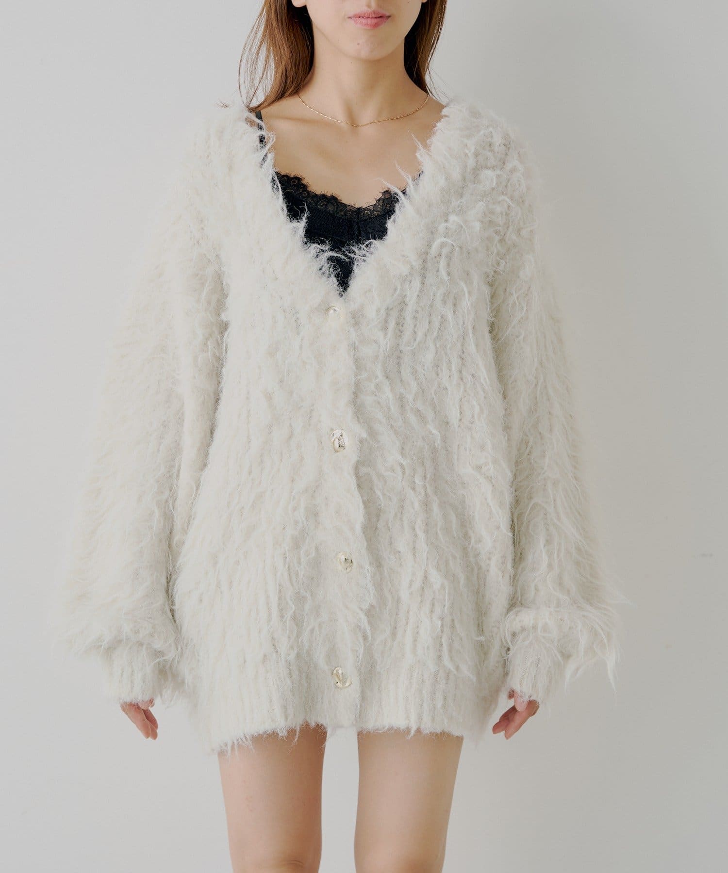 ふわふわのシャギー素材が魅力の金釦シャギールーズカーディガン