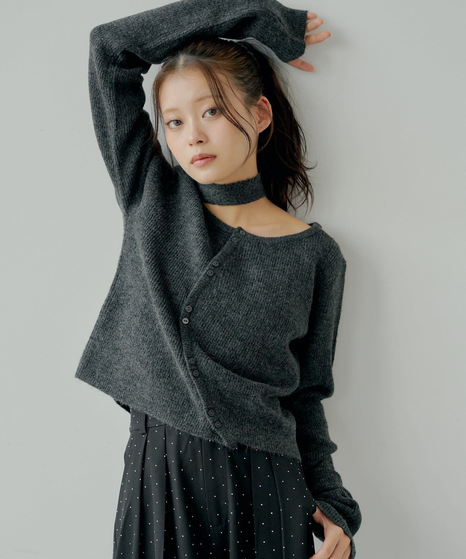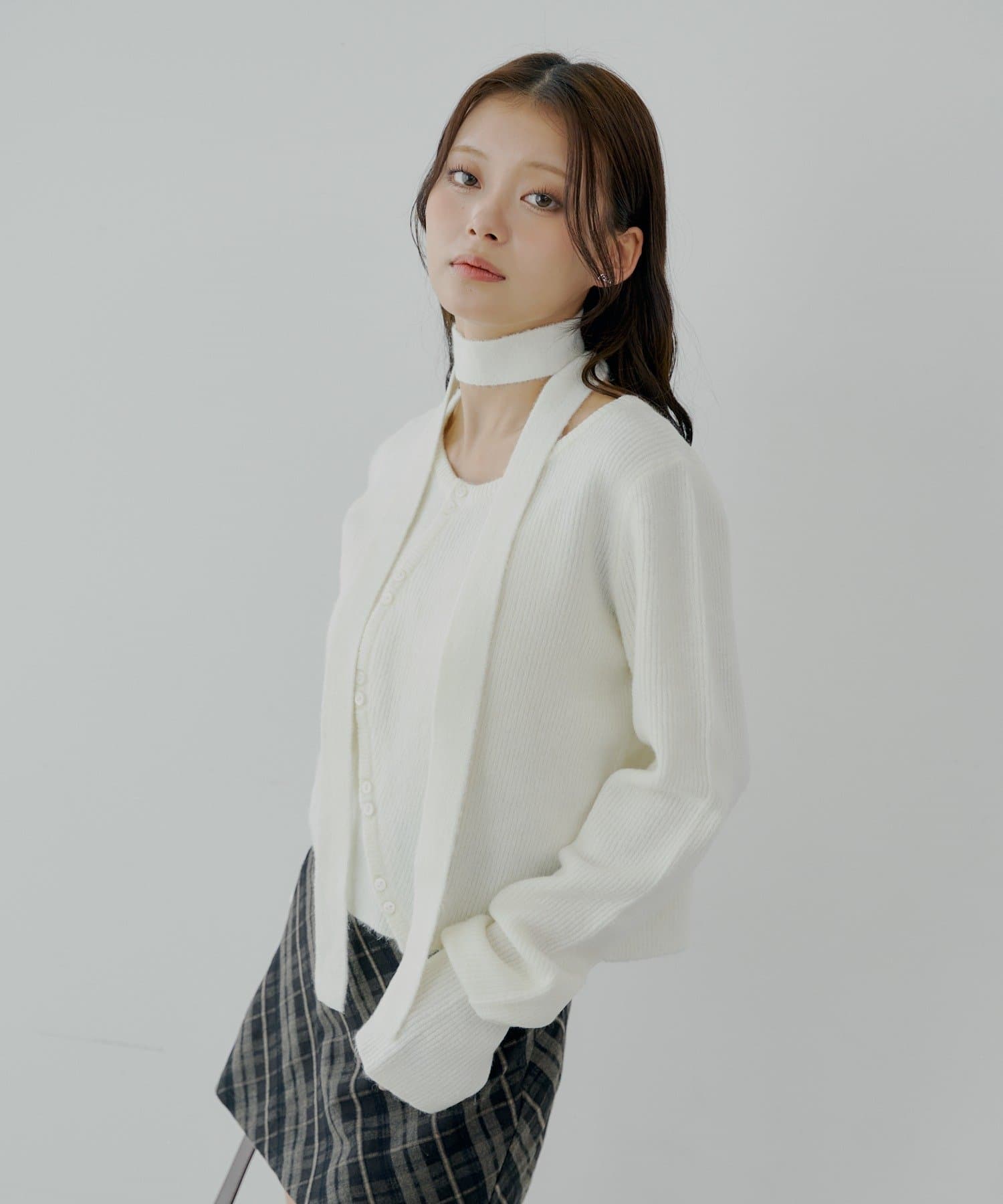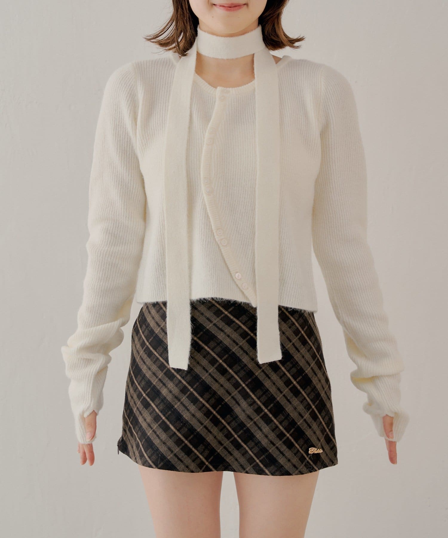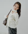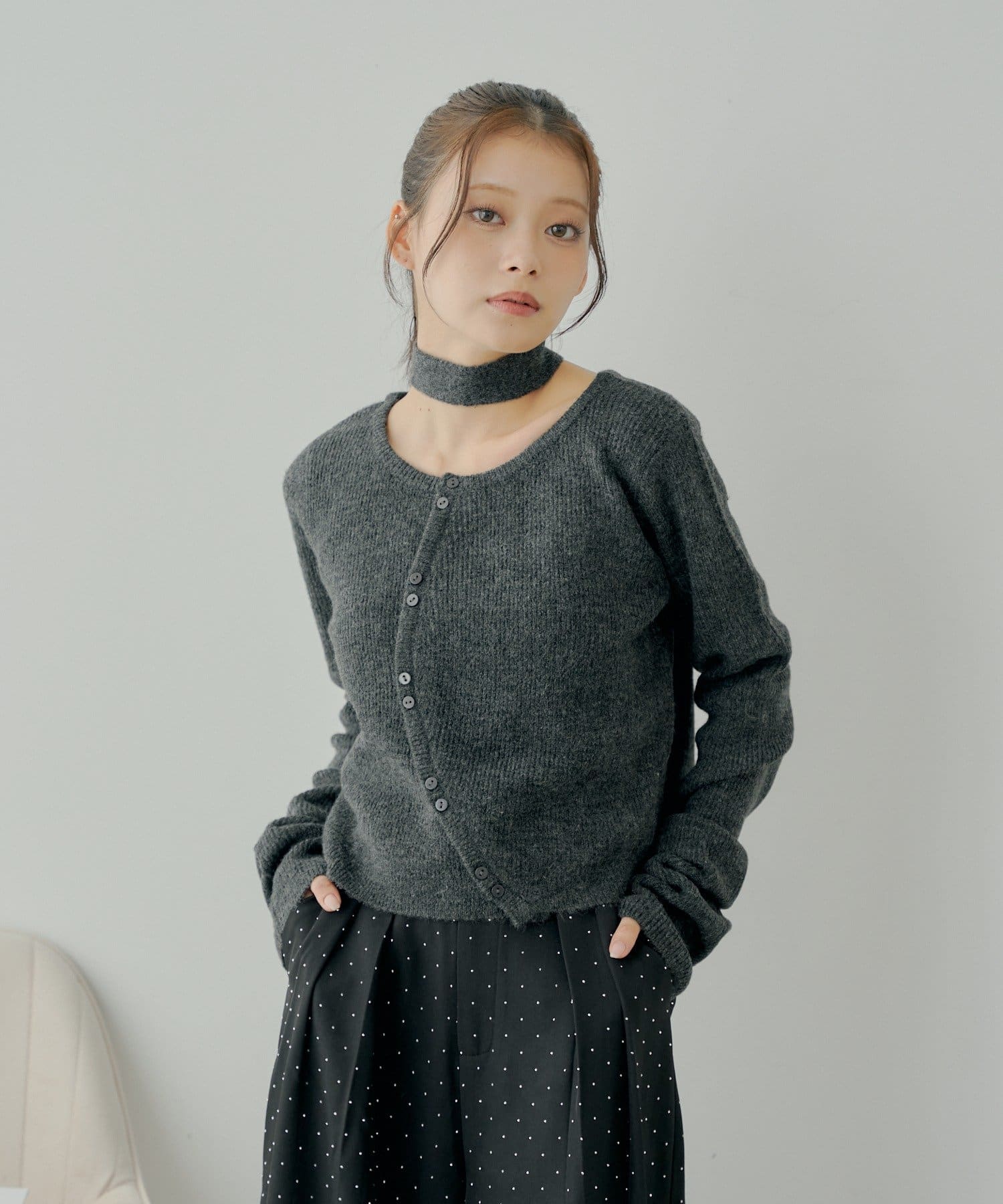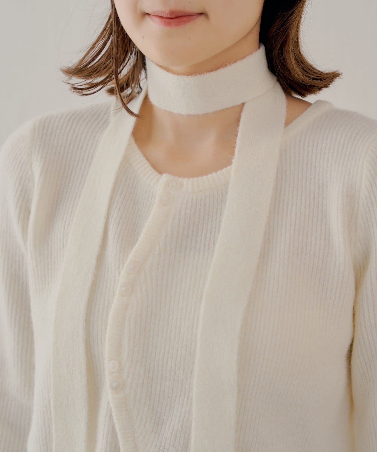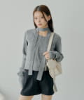 チョーカー付きラウンドボタンコンパクトカーディガン
