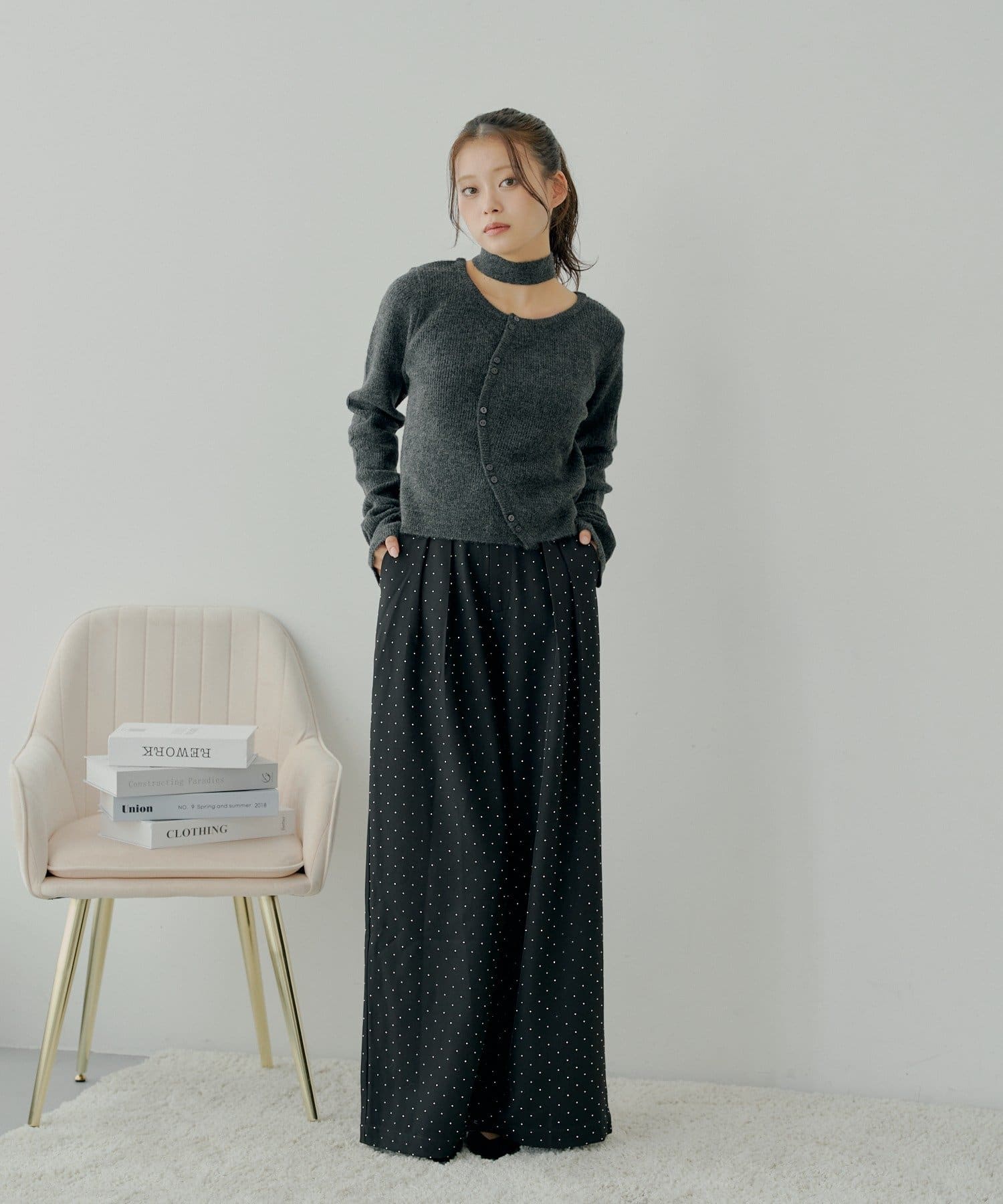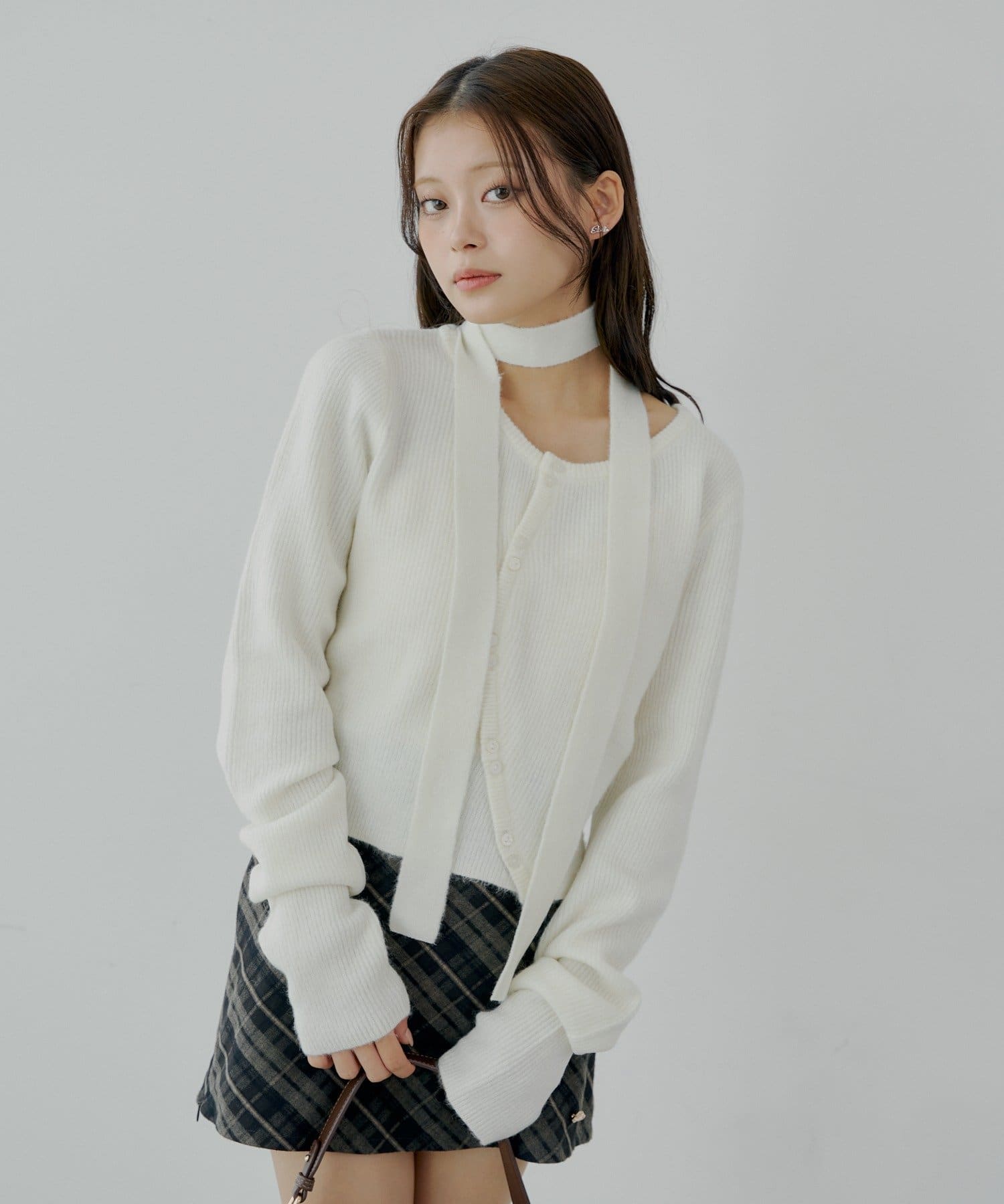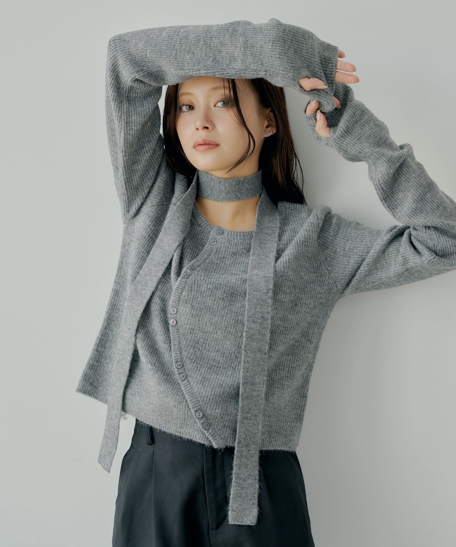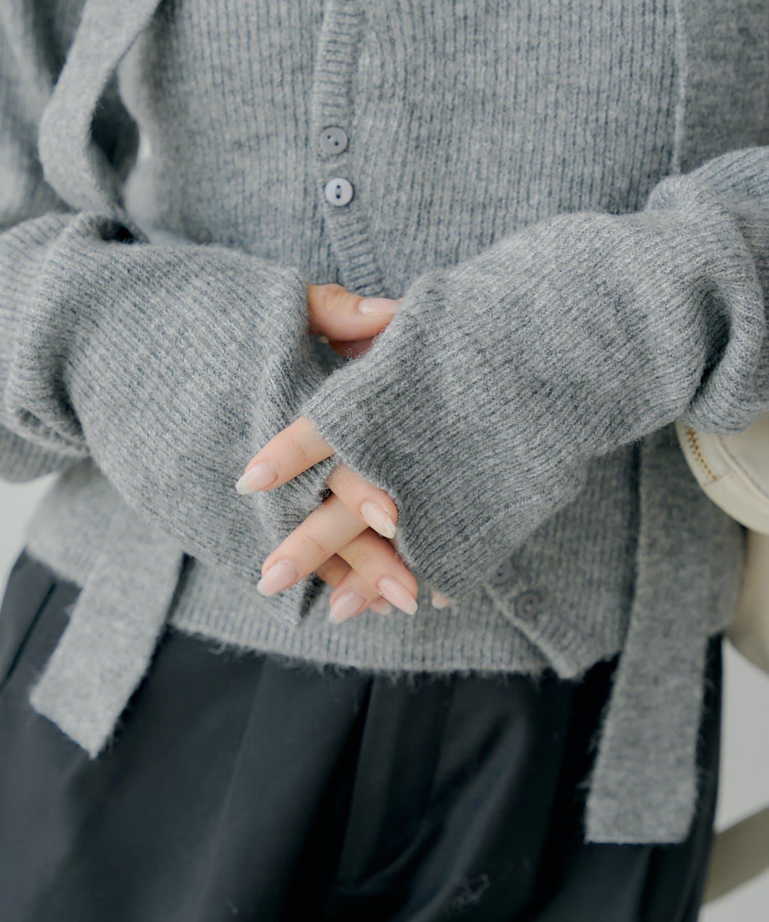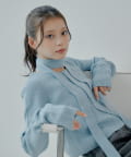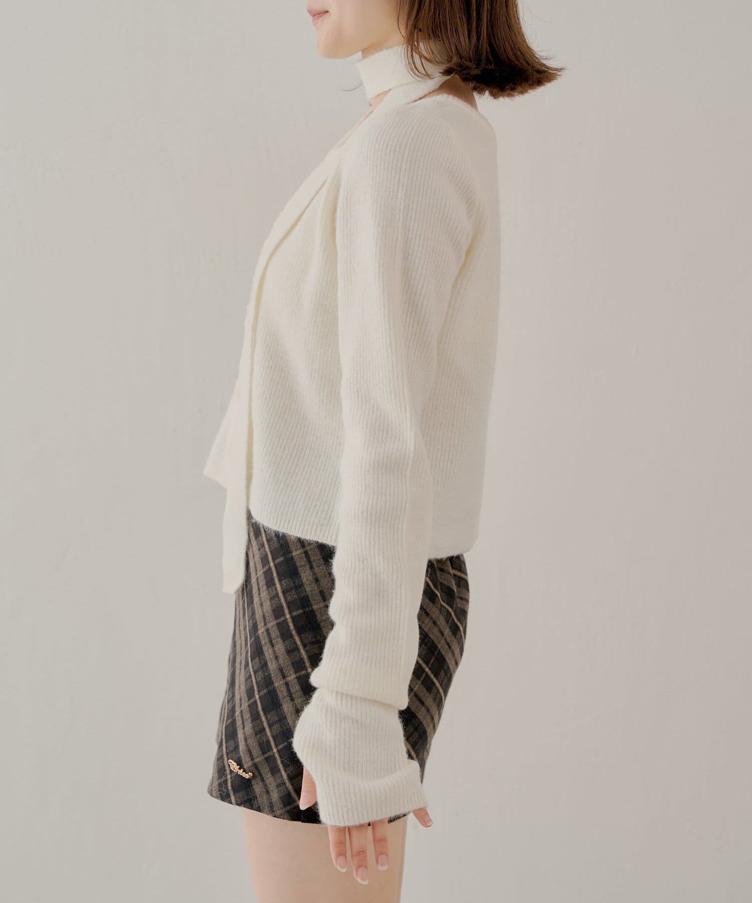 チョーカー付きラウンドボタンコンパクトカーディガン