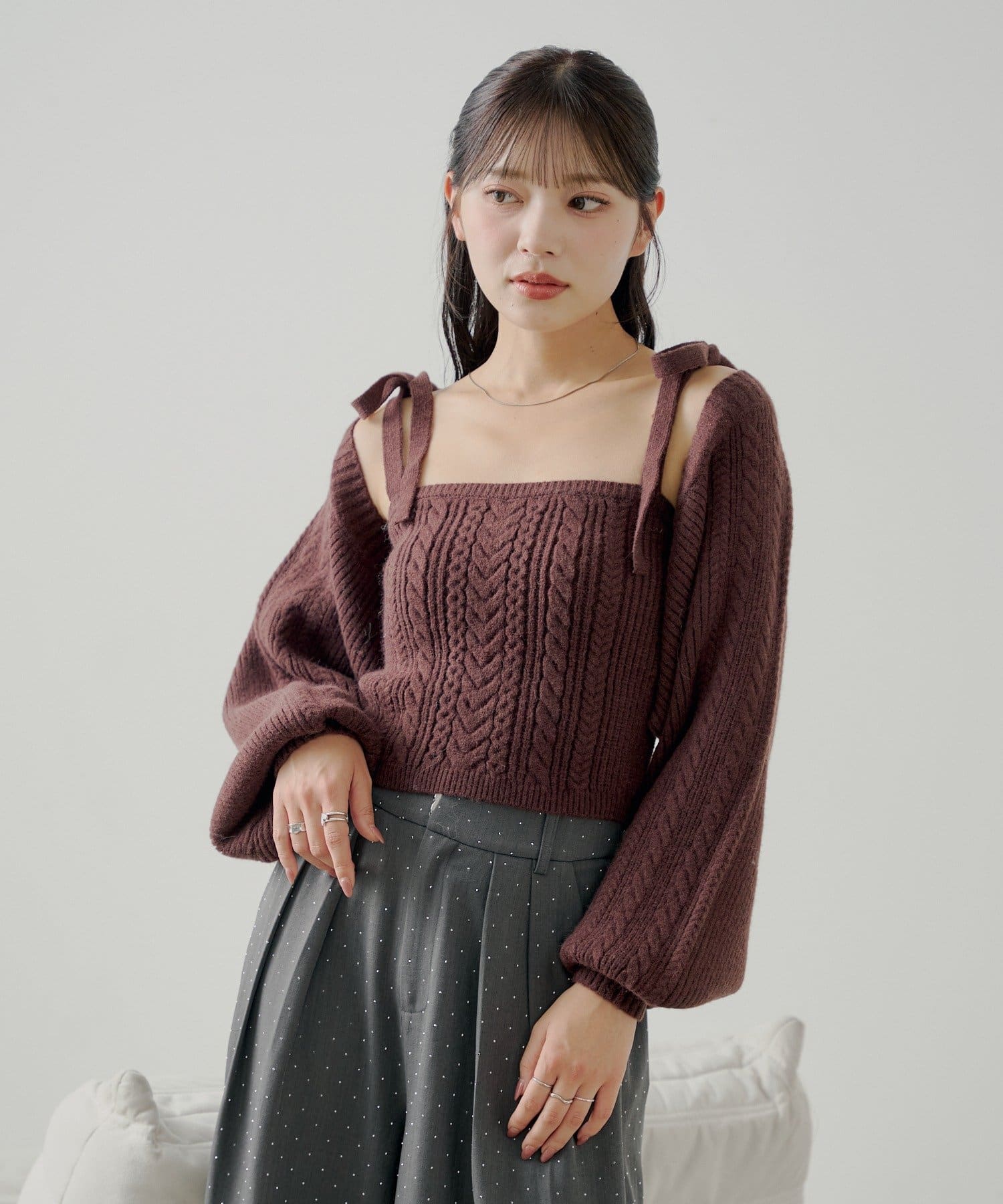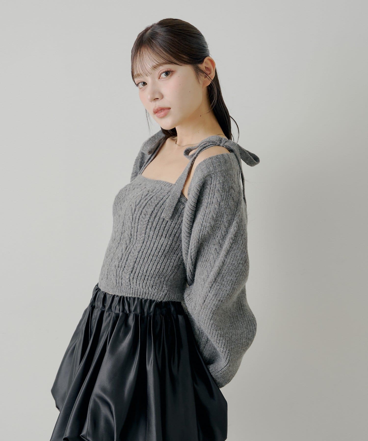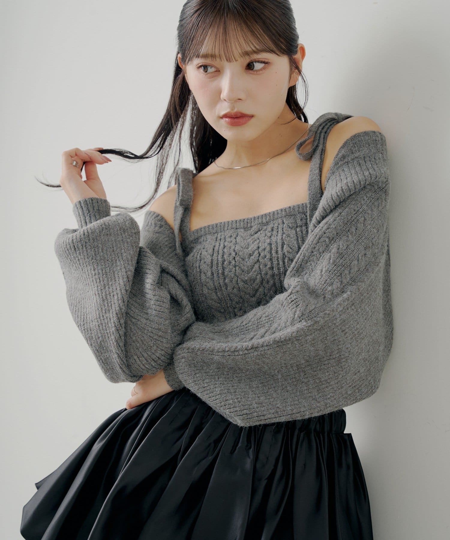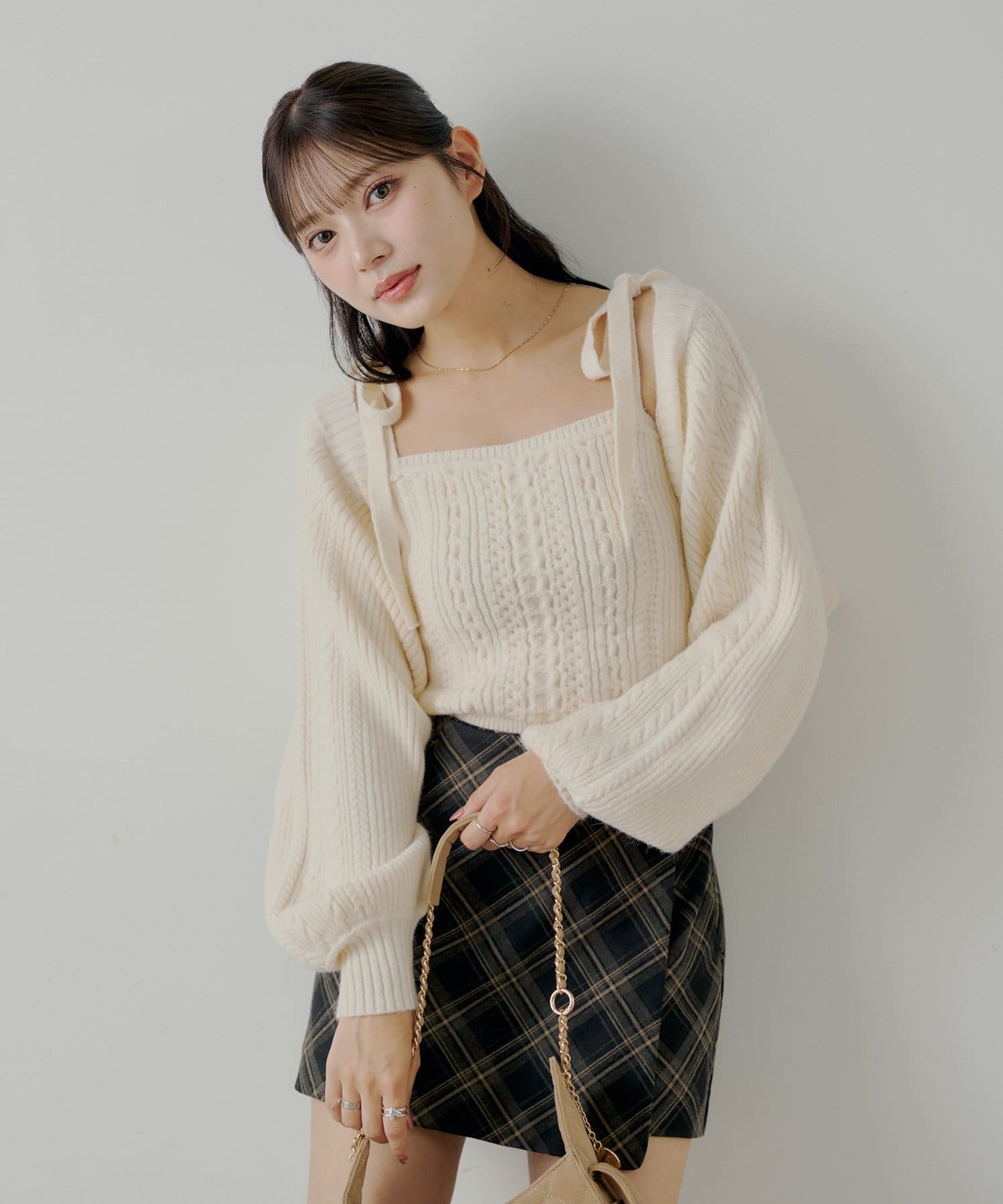 トレンド感たっぷりのケーブルリボンキャミとふんわりとしたボレロのセットアイテムが登場!