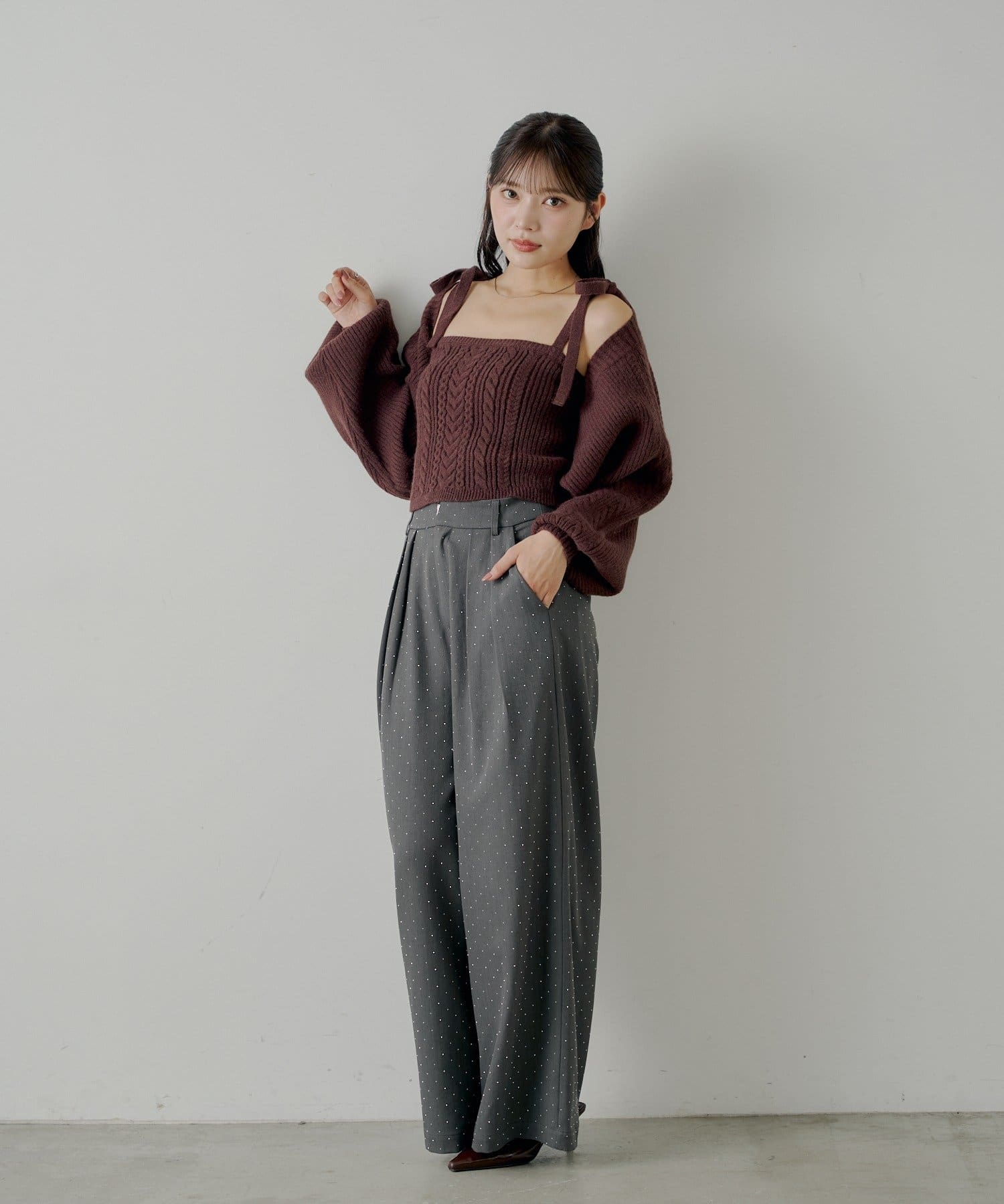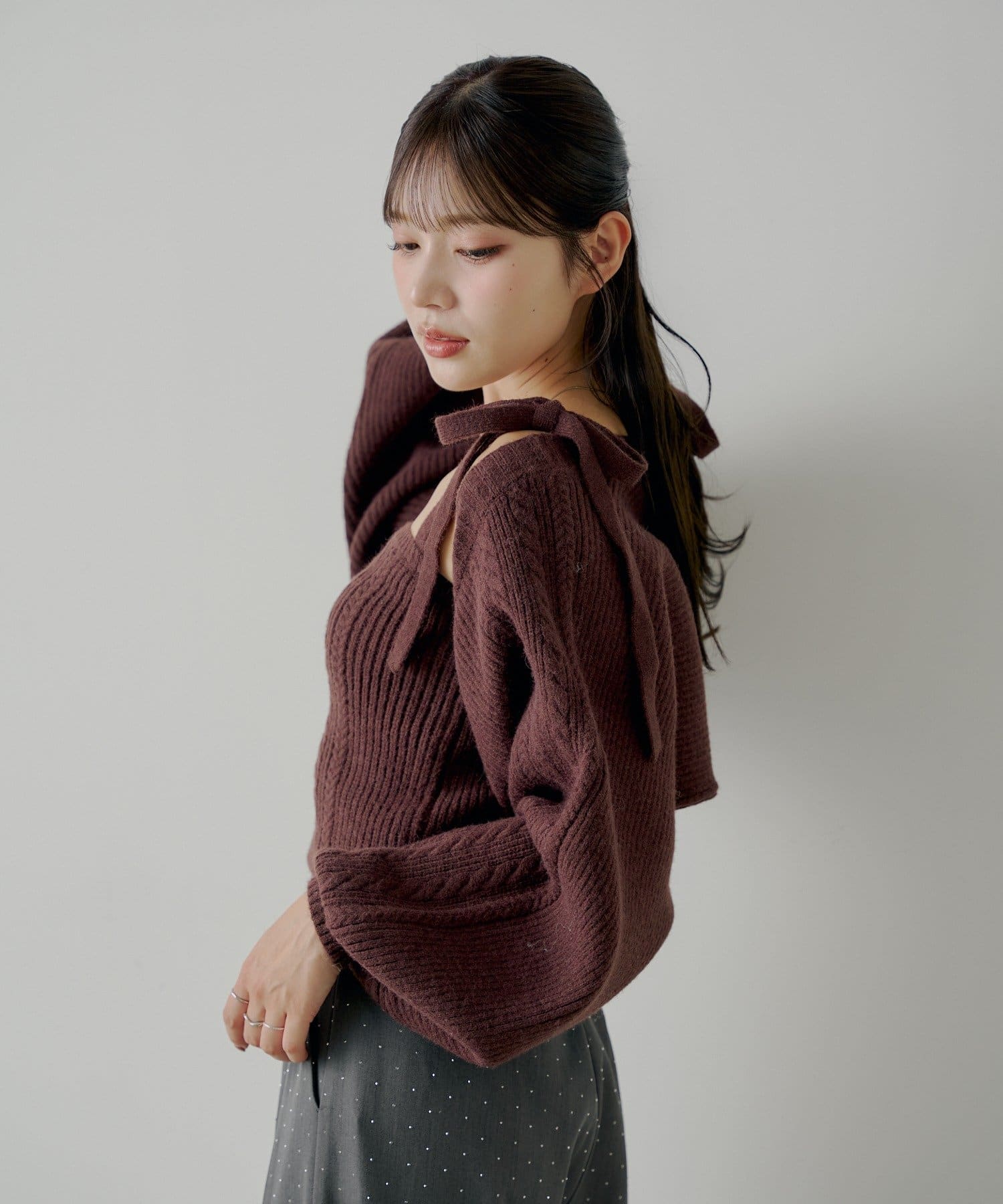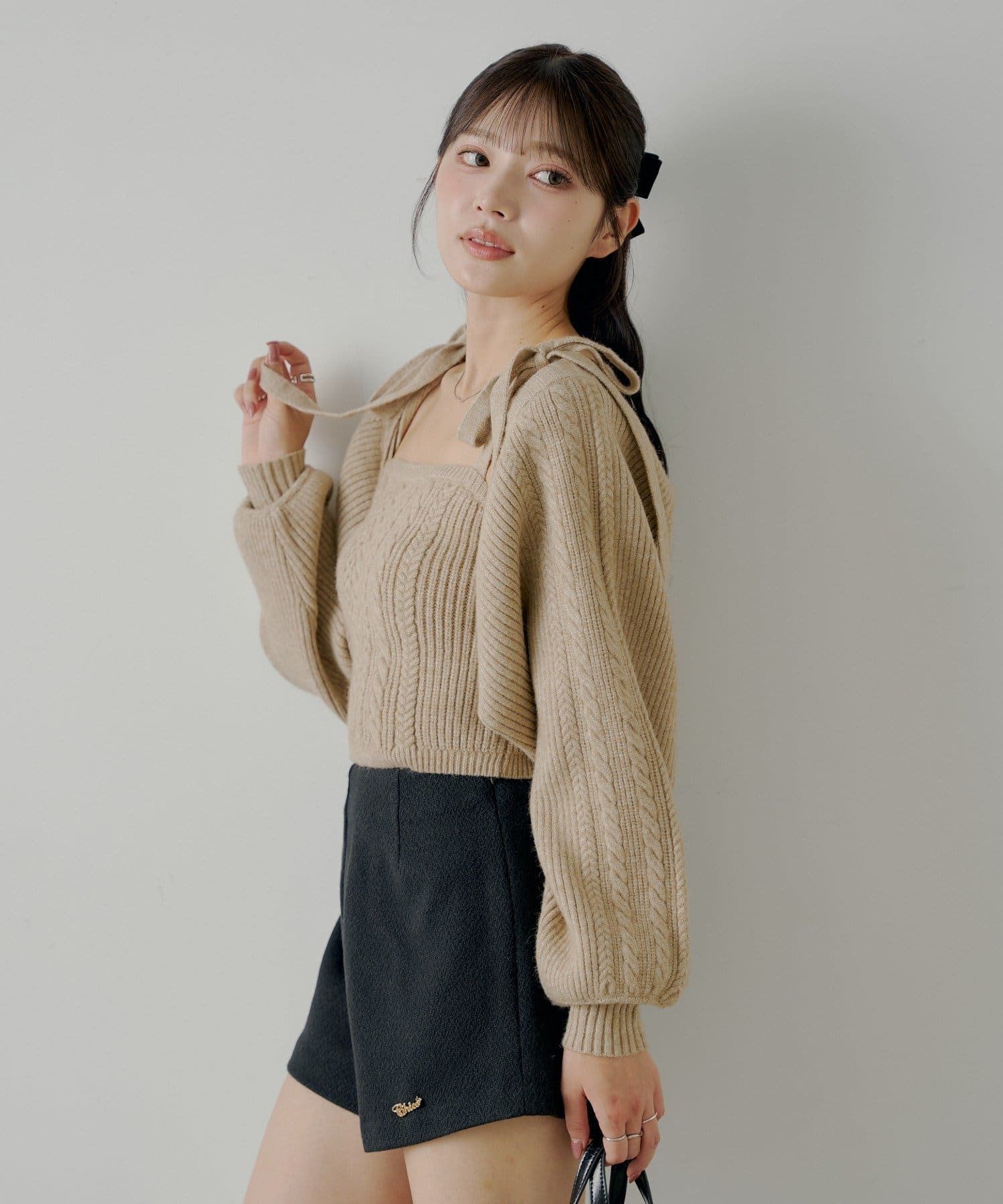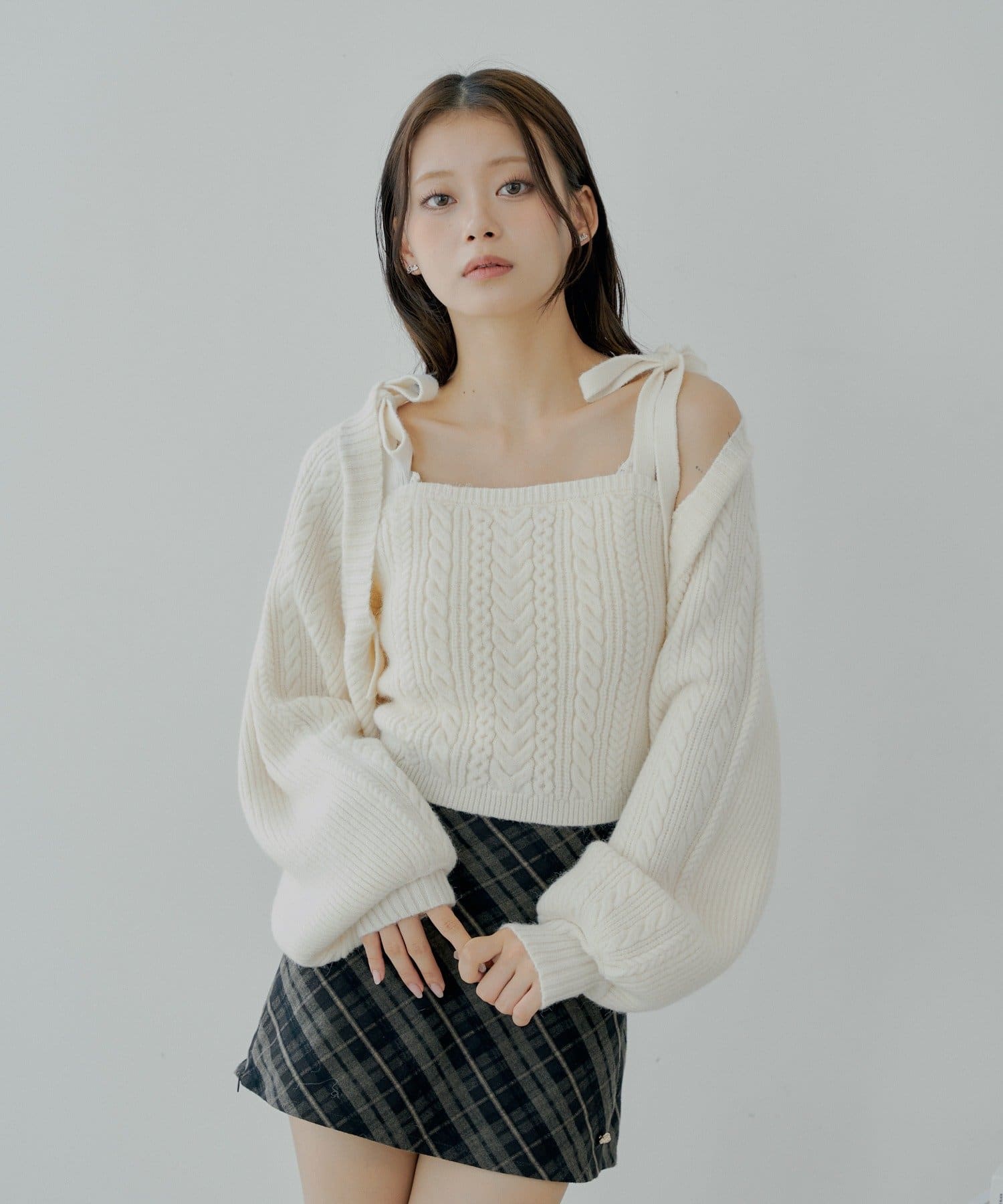 トレンド感たっぷりのケーブルリボンキャミとふんわりとしたボレロのセットアイテムが登場!