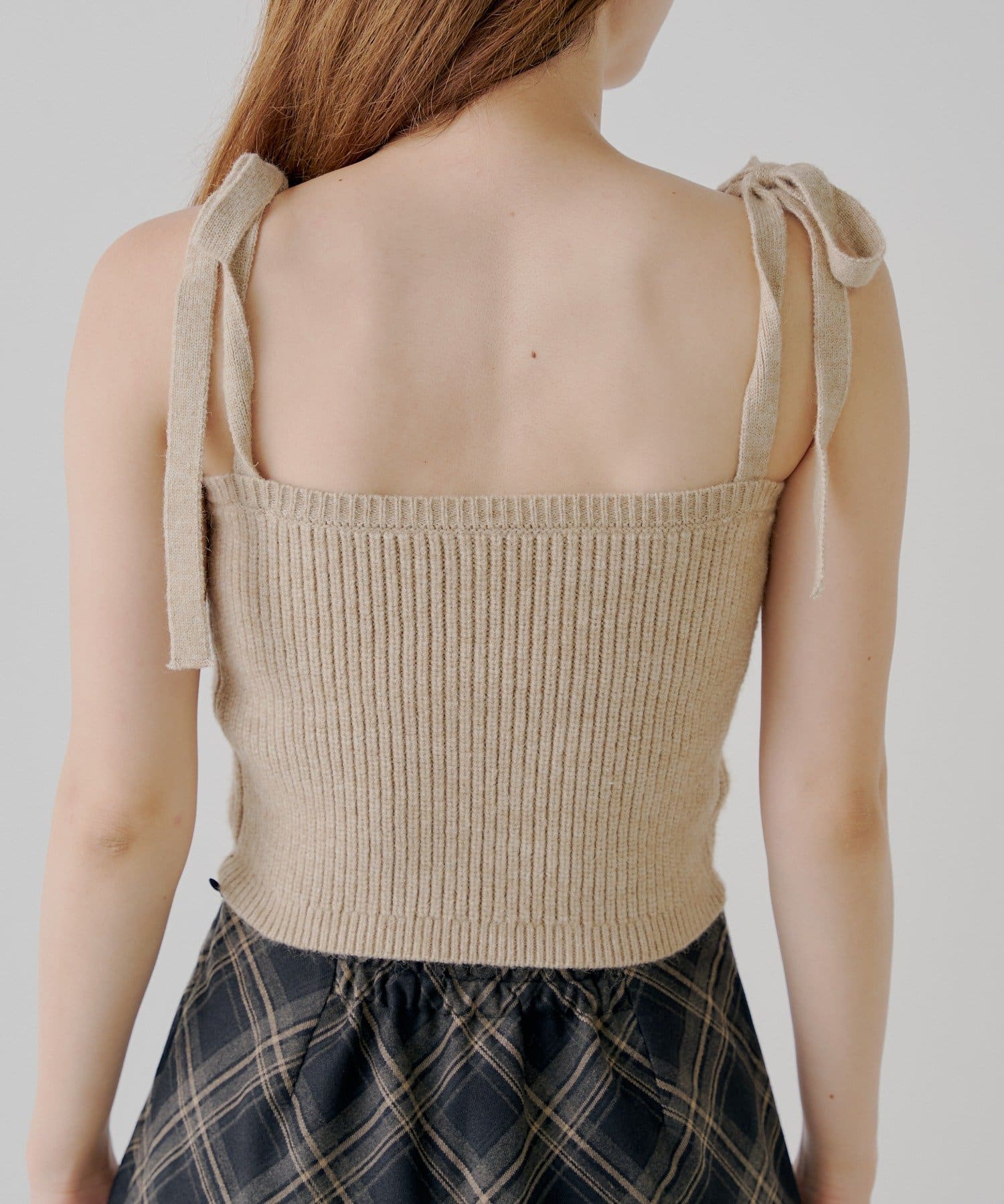 ・キャミソールの肩紐リボンがフェミニンなアクセントにも。