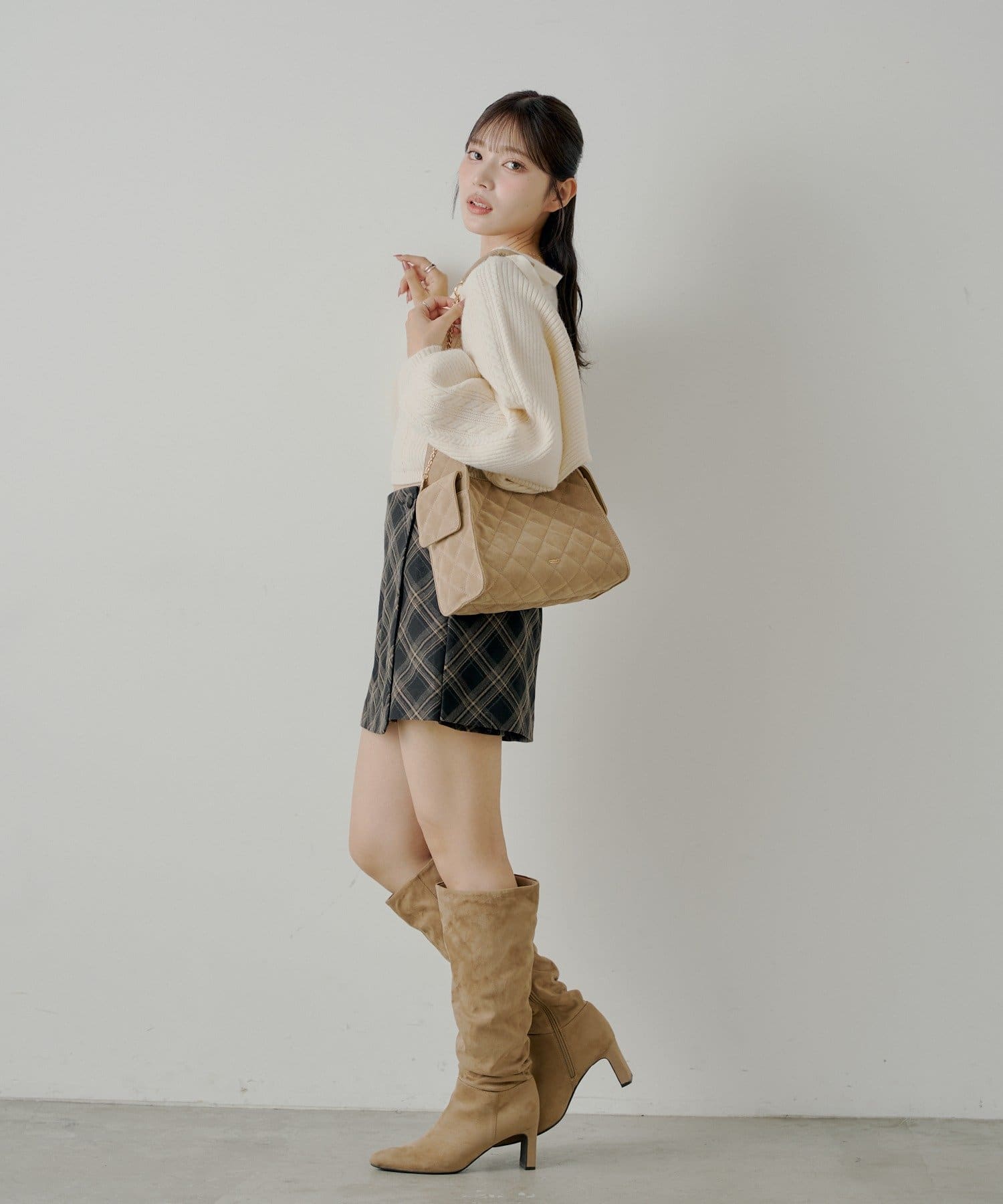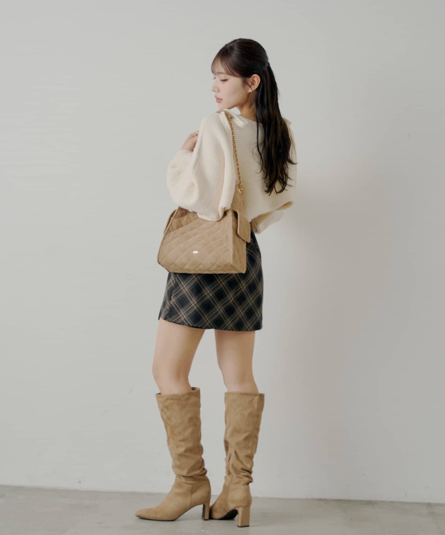 ・暖かみのあるケーブル編みが、コーディネートに奥行きをプラスしてくれます。