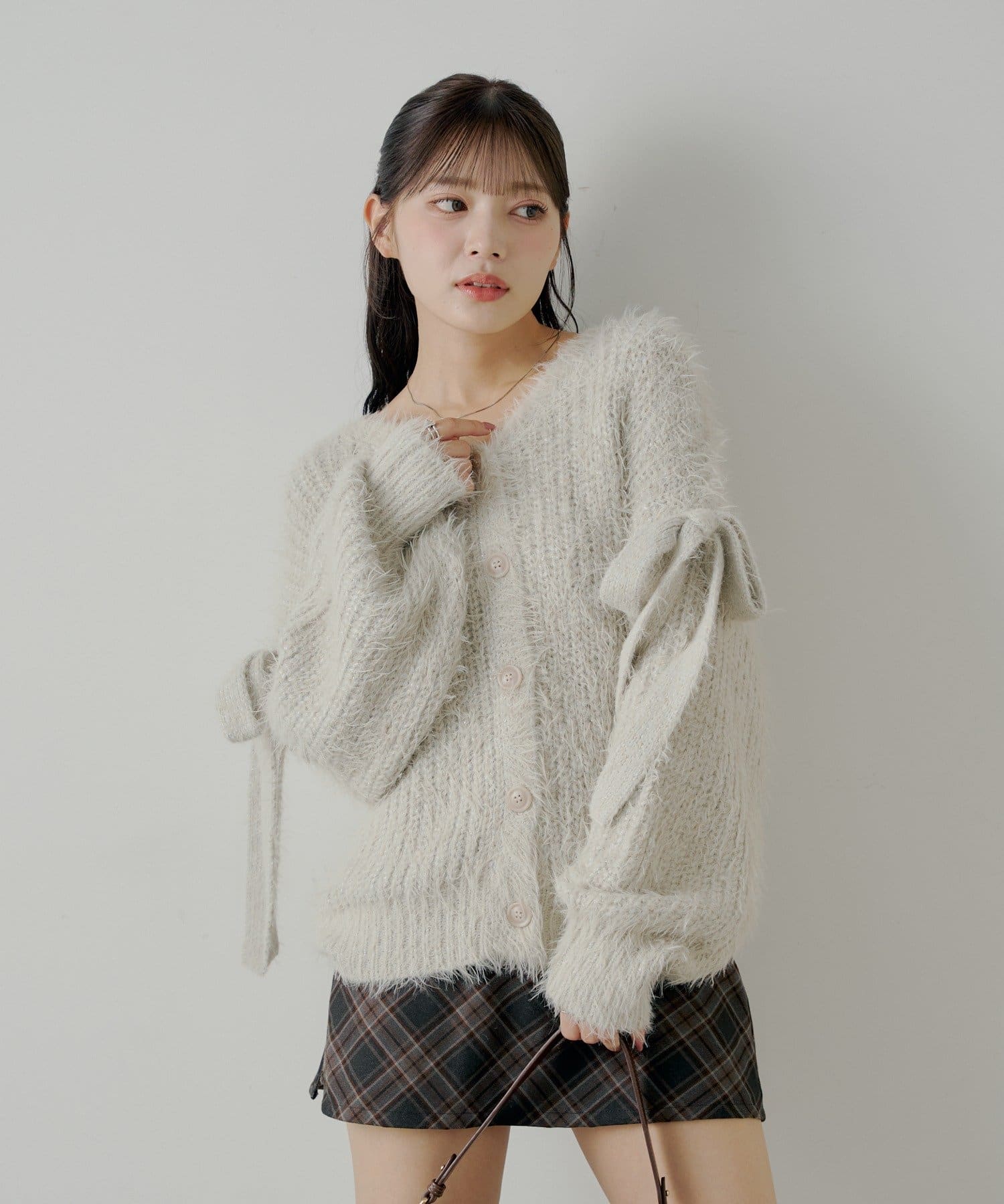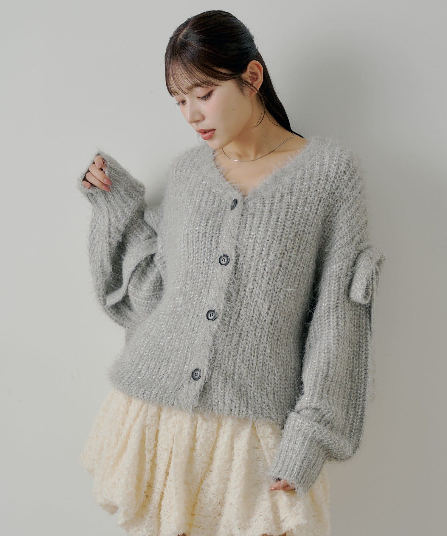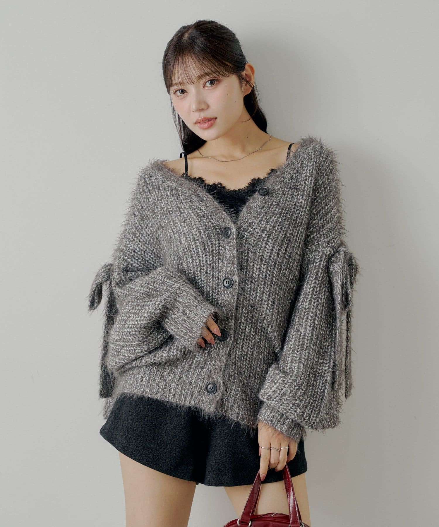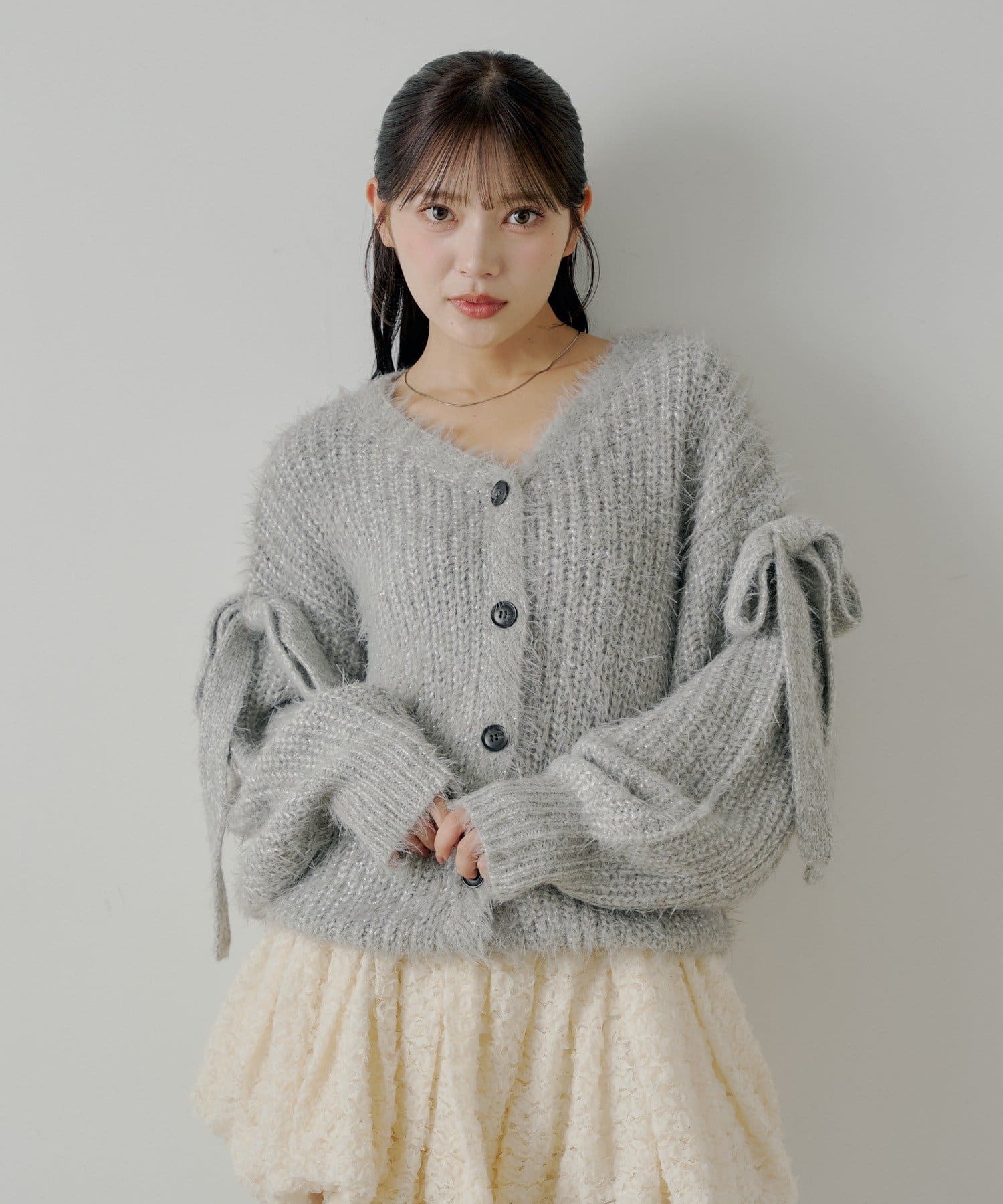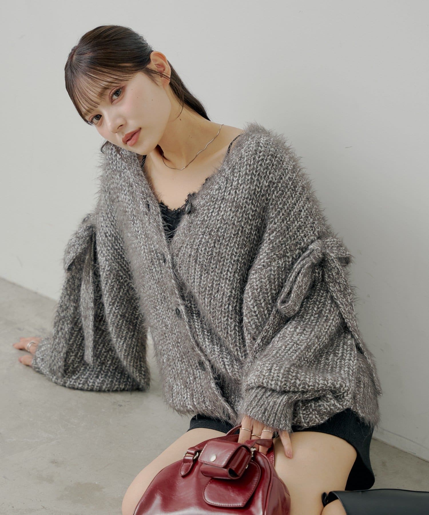 ふわふわとした質感が魅力的な袖リボンルーズリブカーディガン登場!