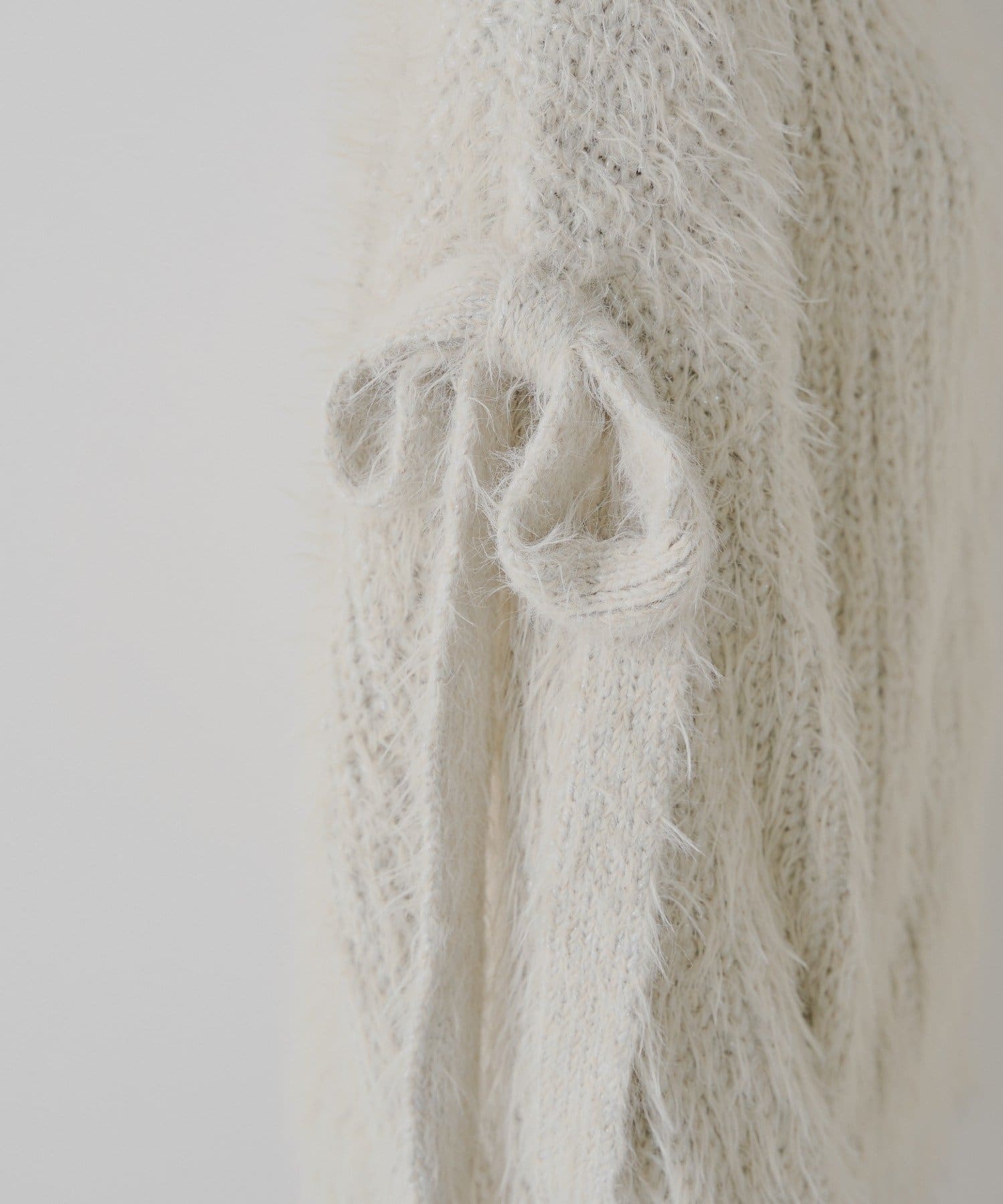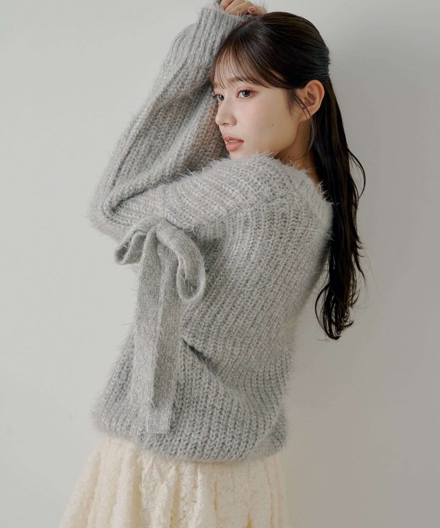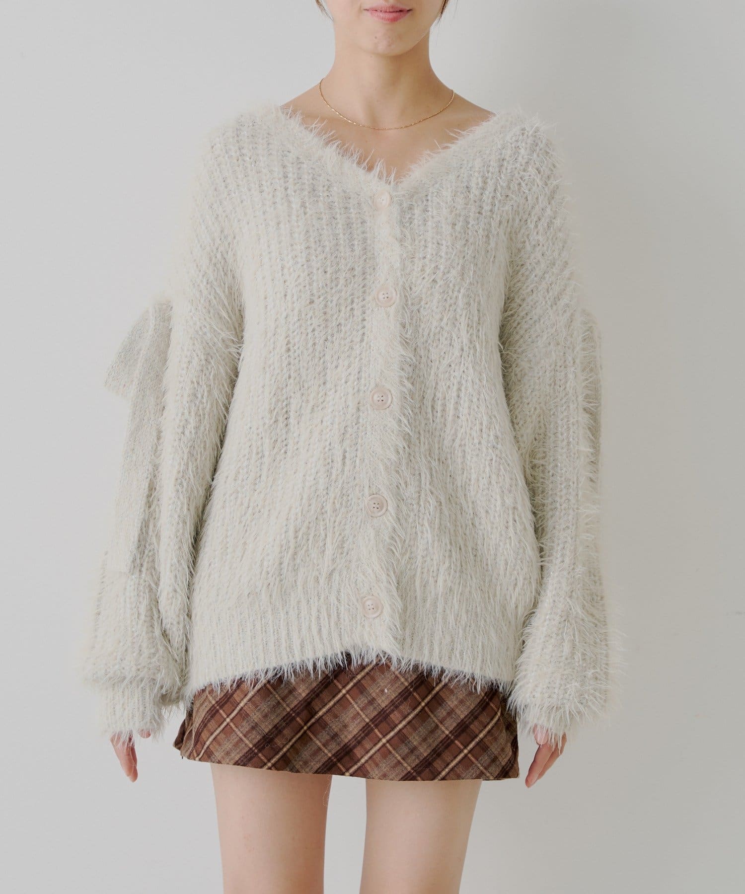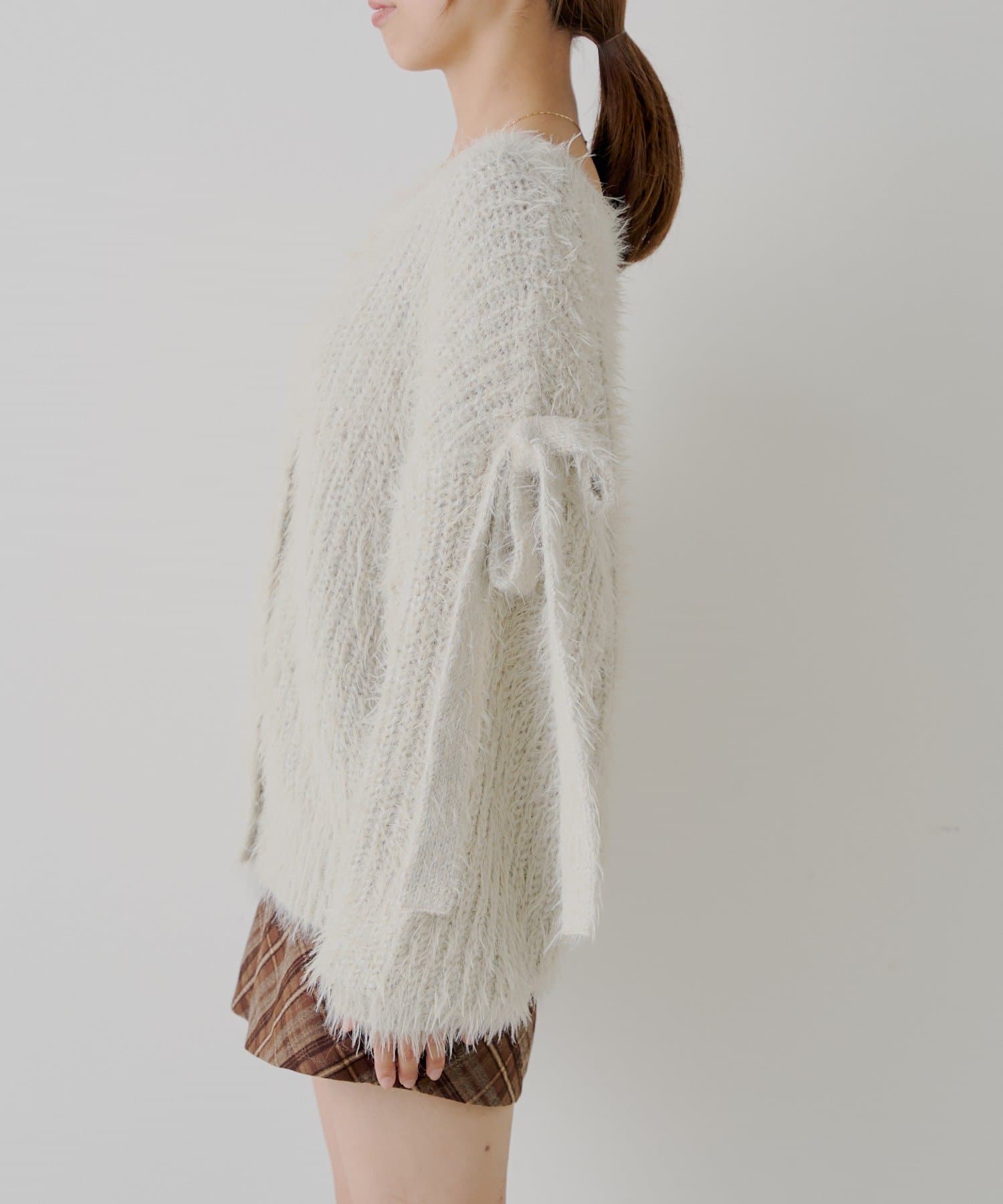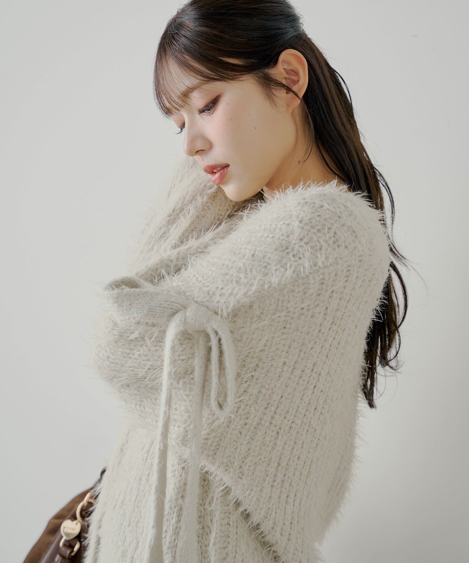 ふわふわとした質感が魅力的な袖リボンルーズリブカーディガン登場!