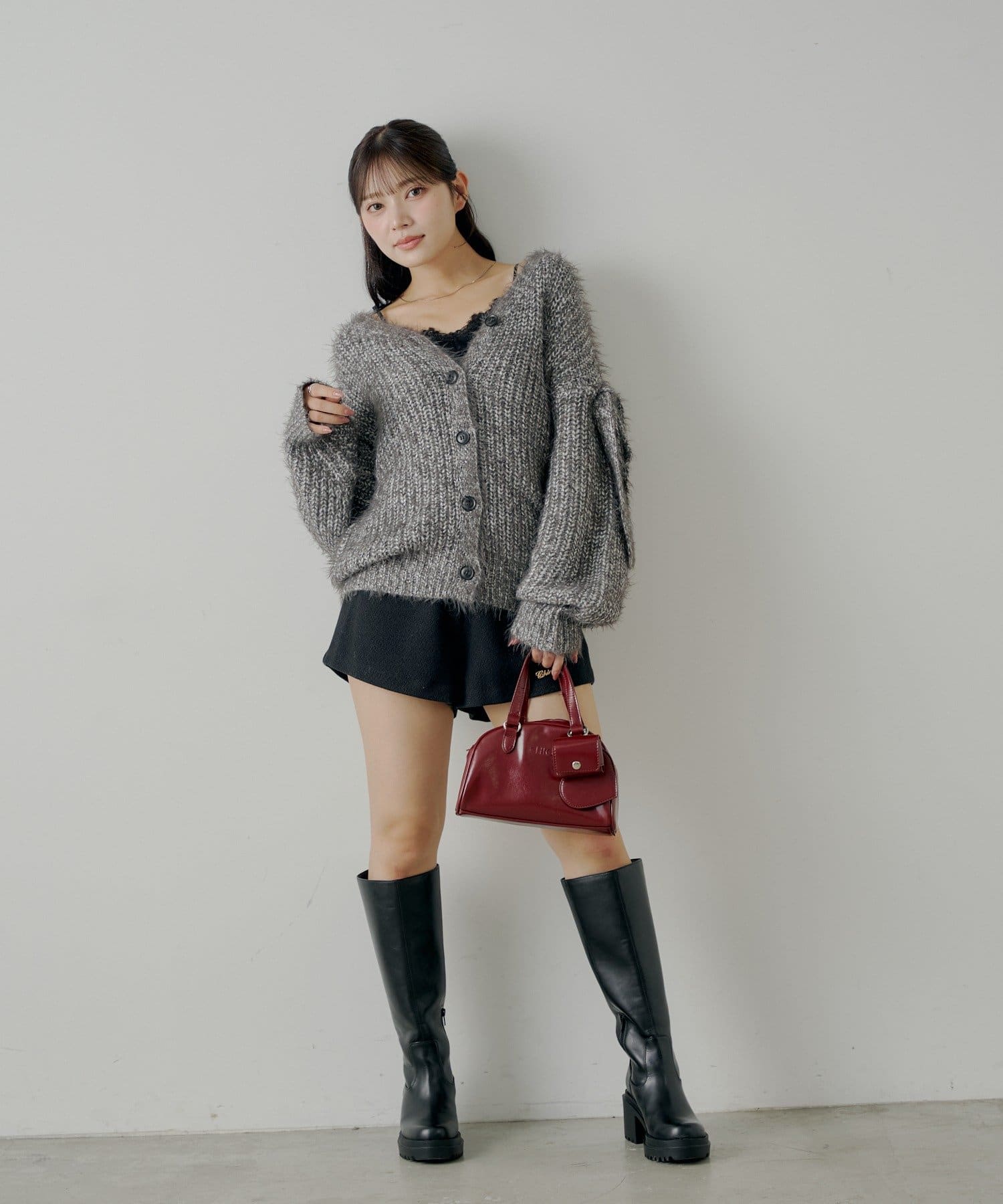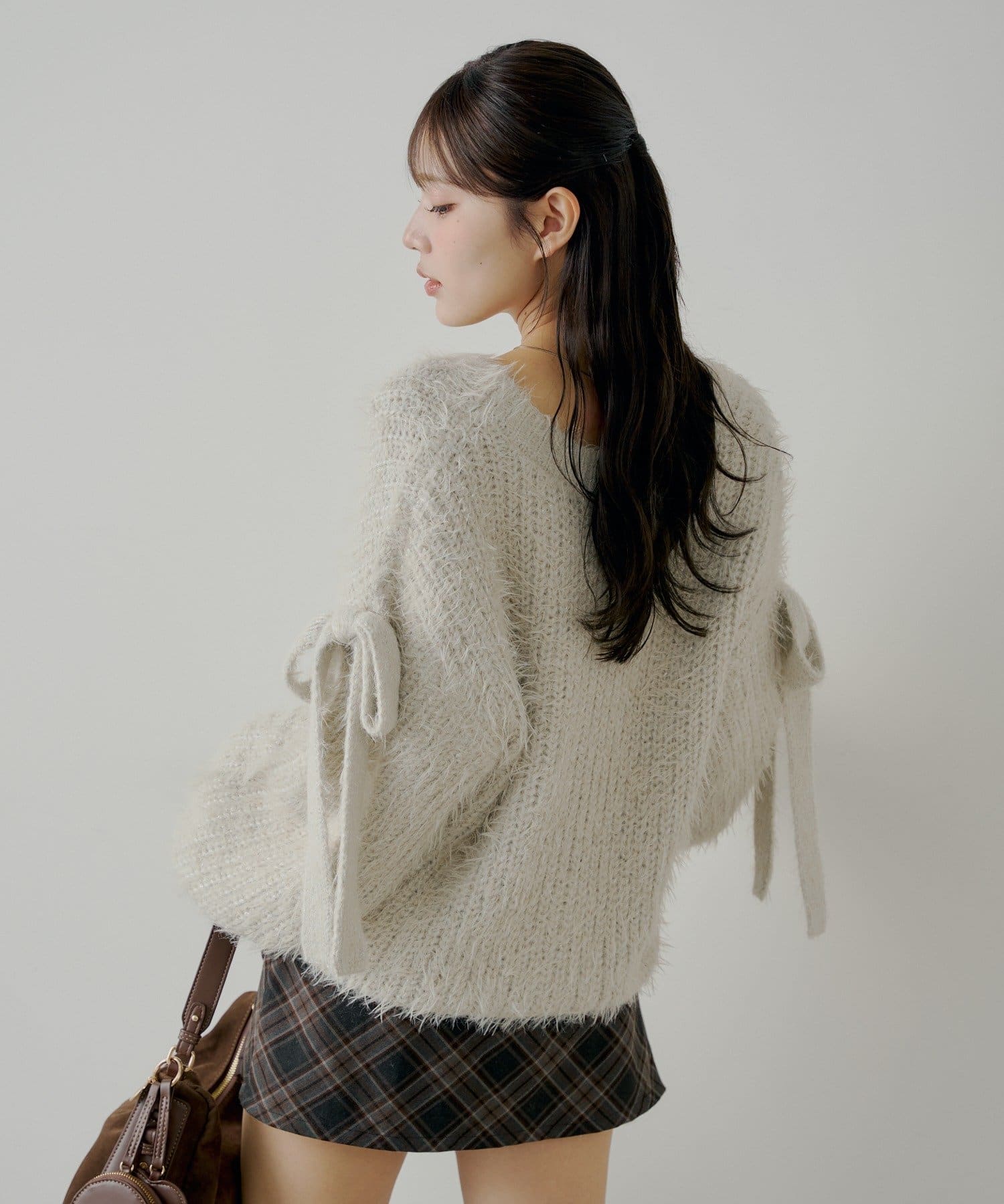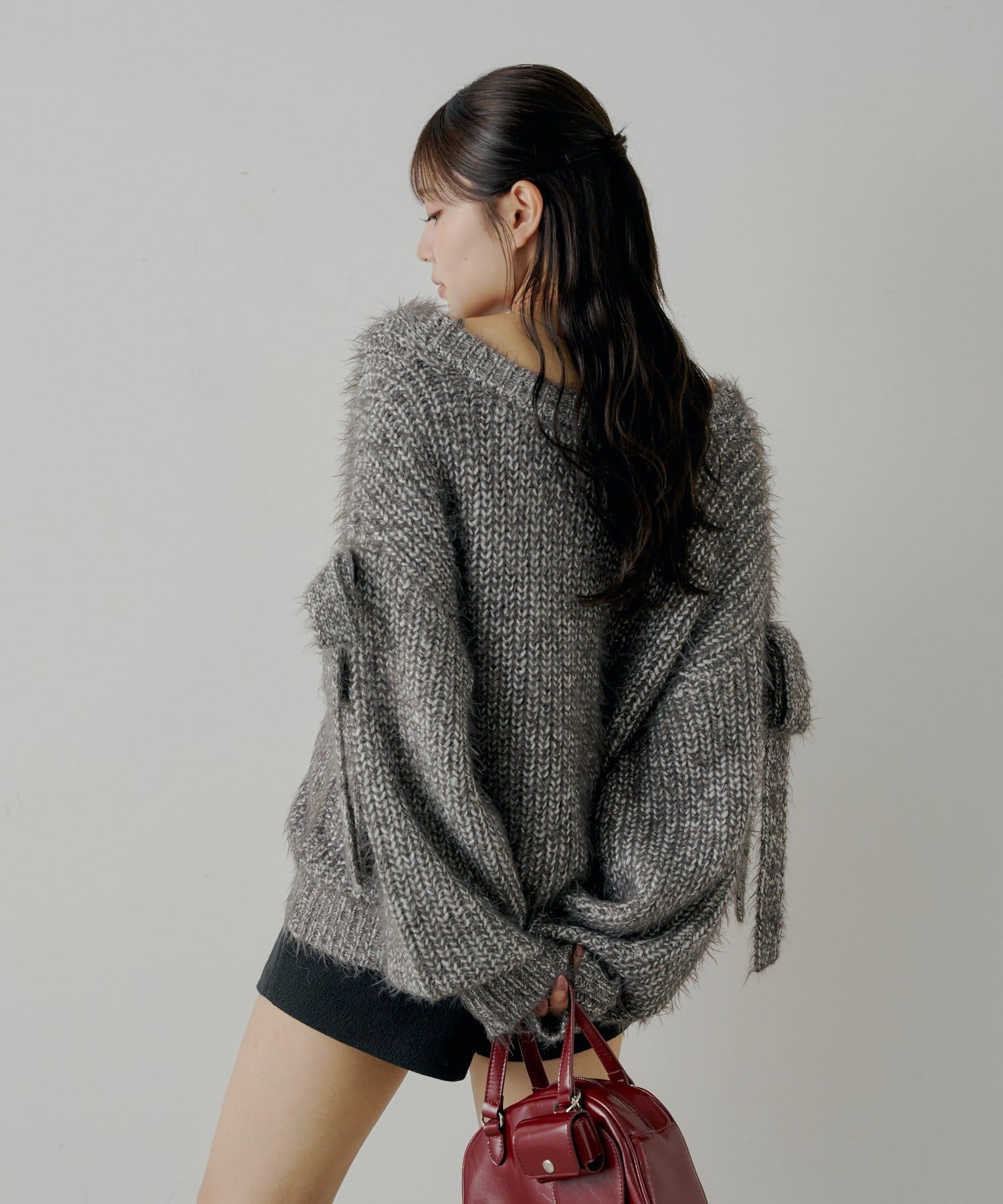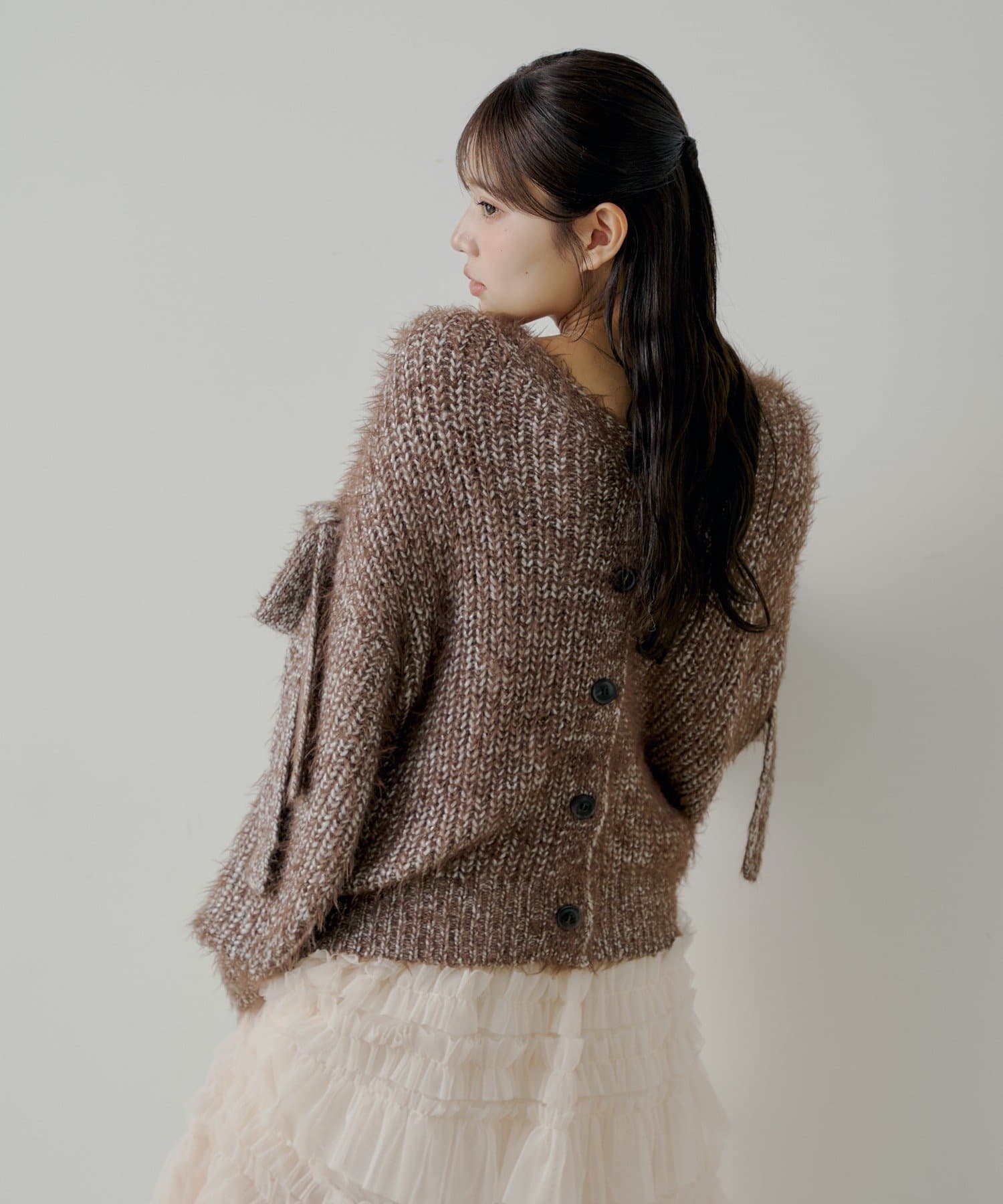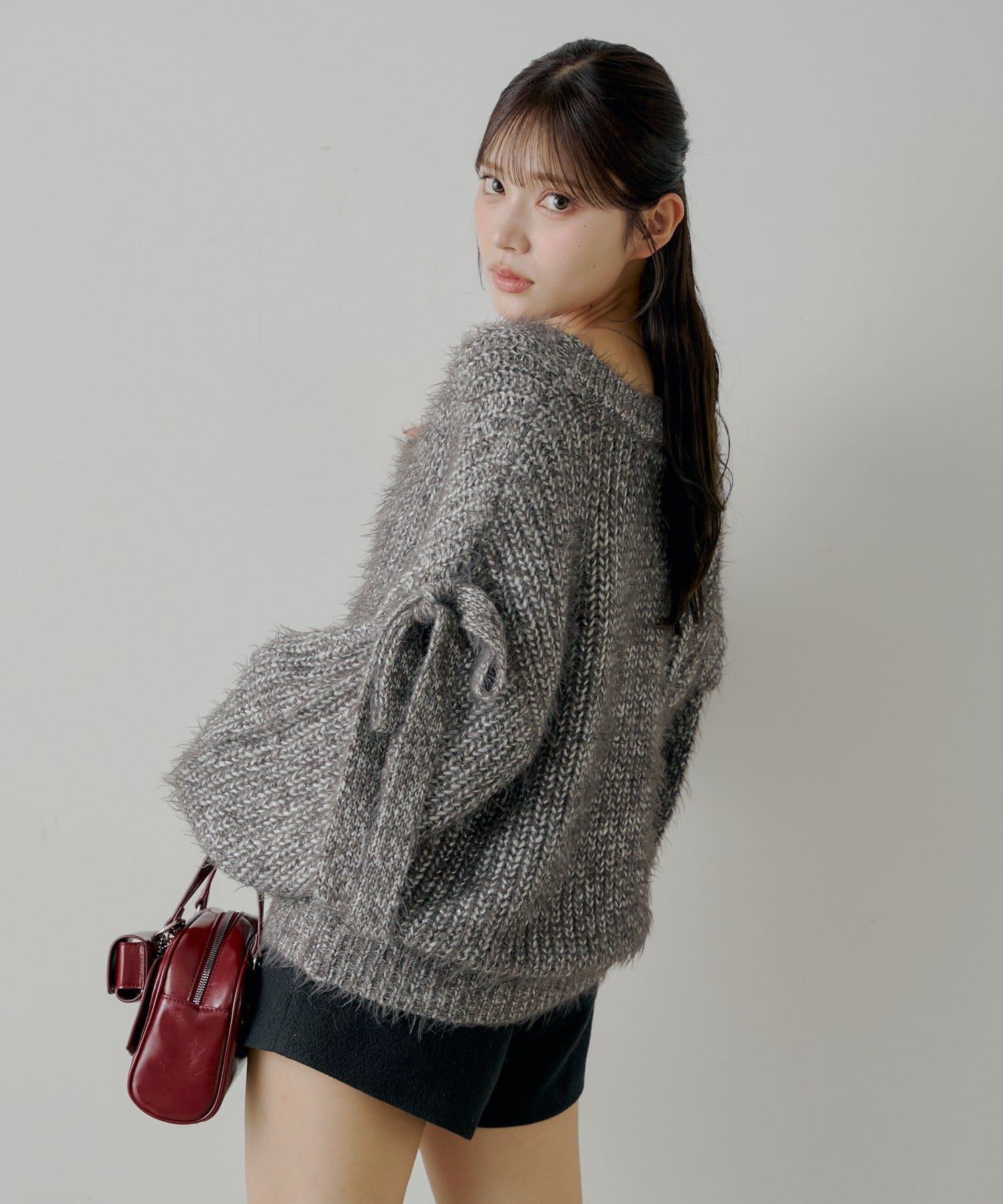 ふわふわとした質感が魅力的な袖リボンルーズリブカーディガン登場!