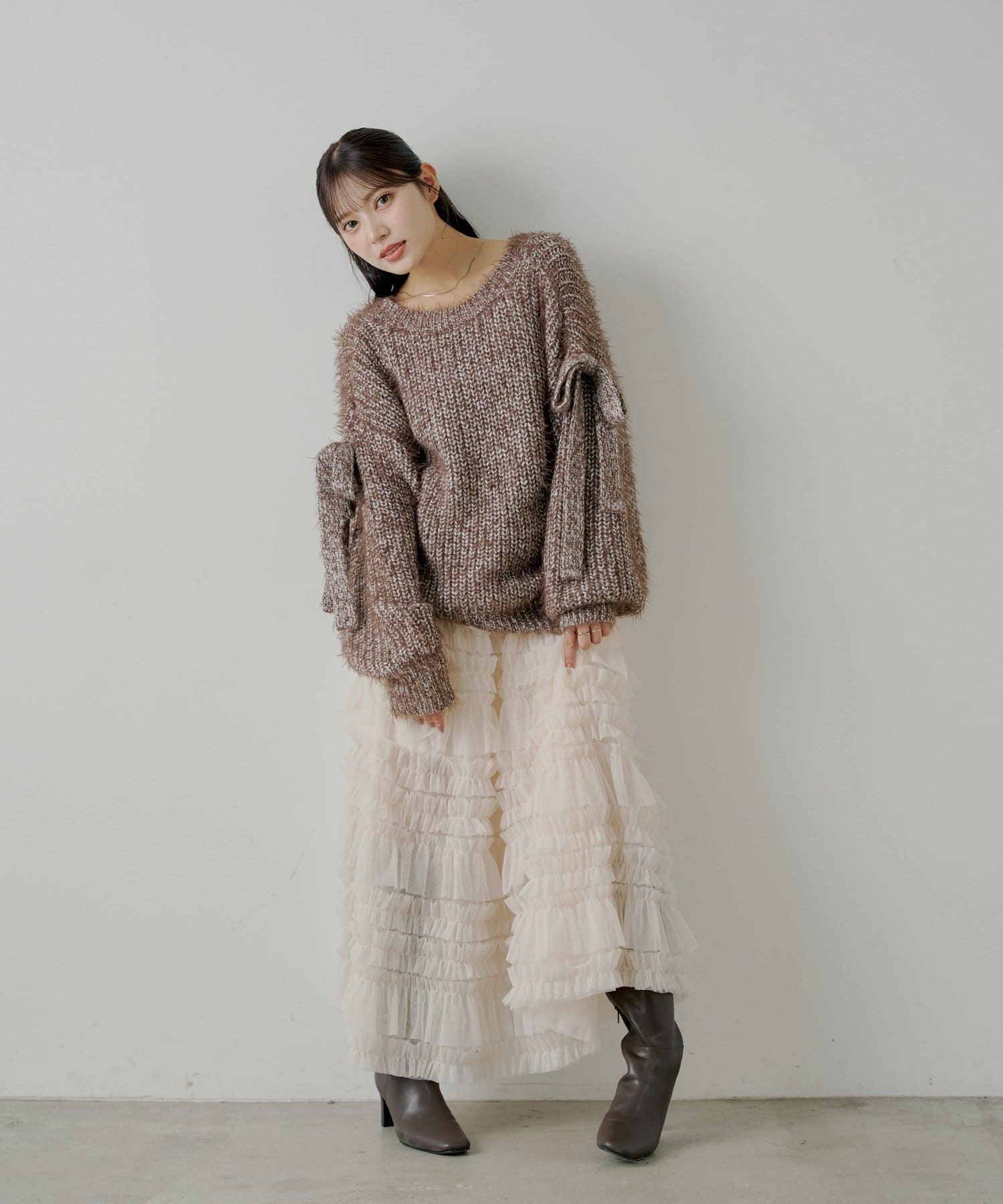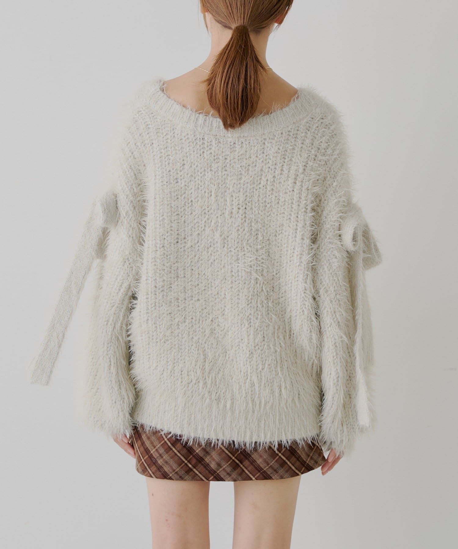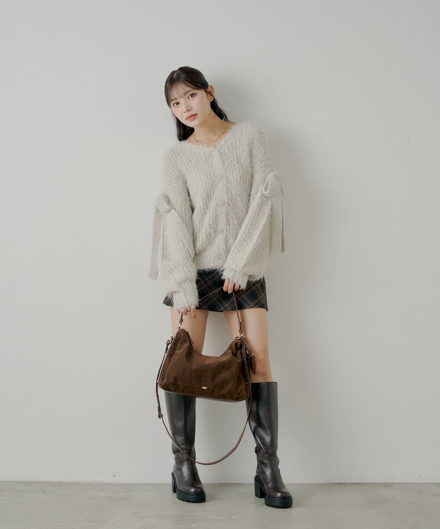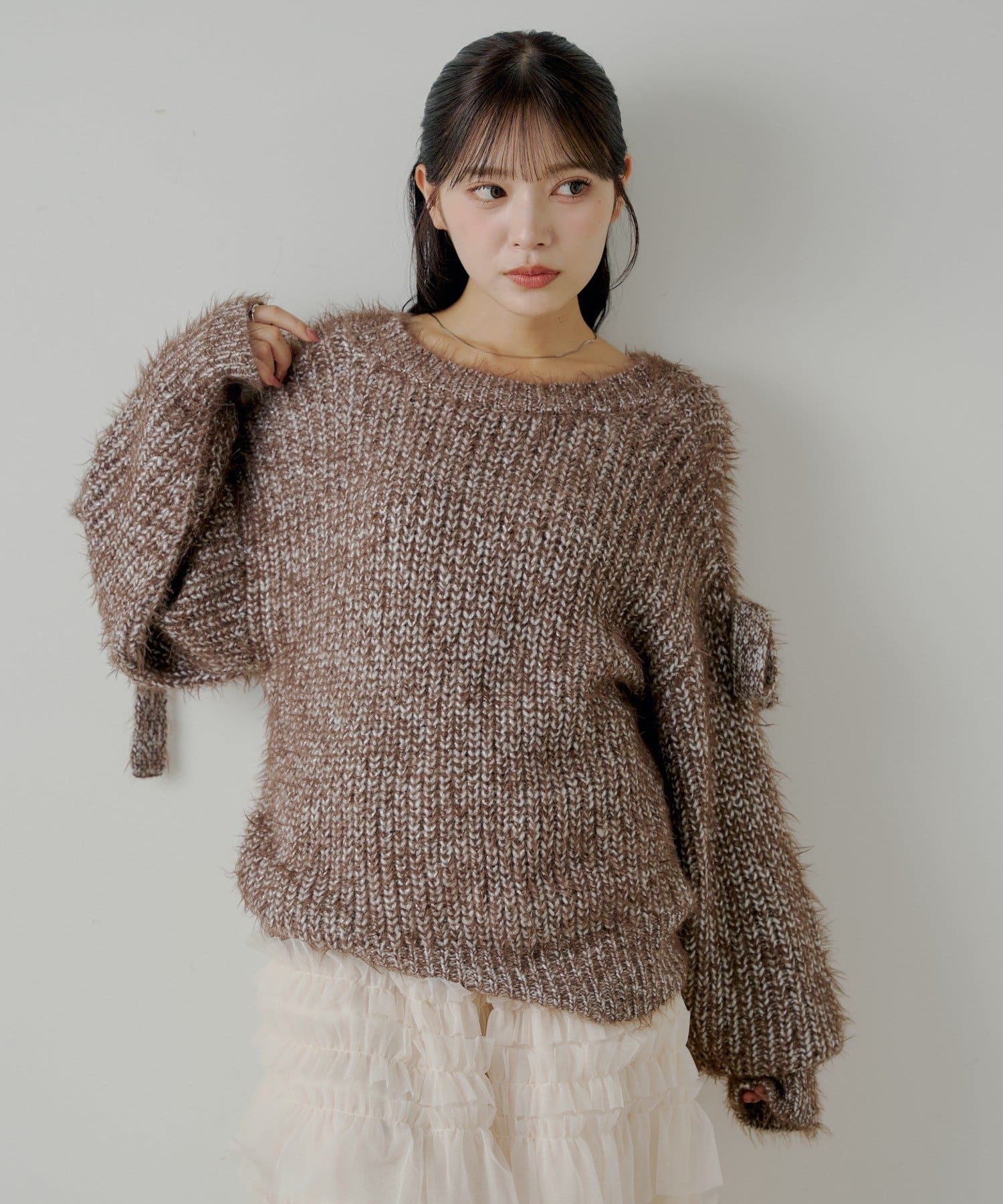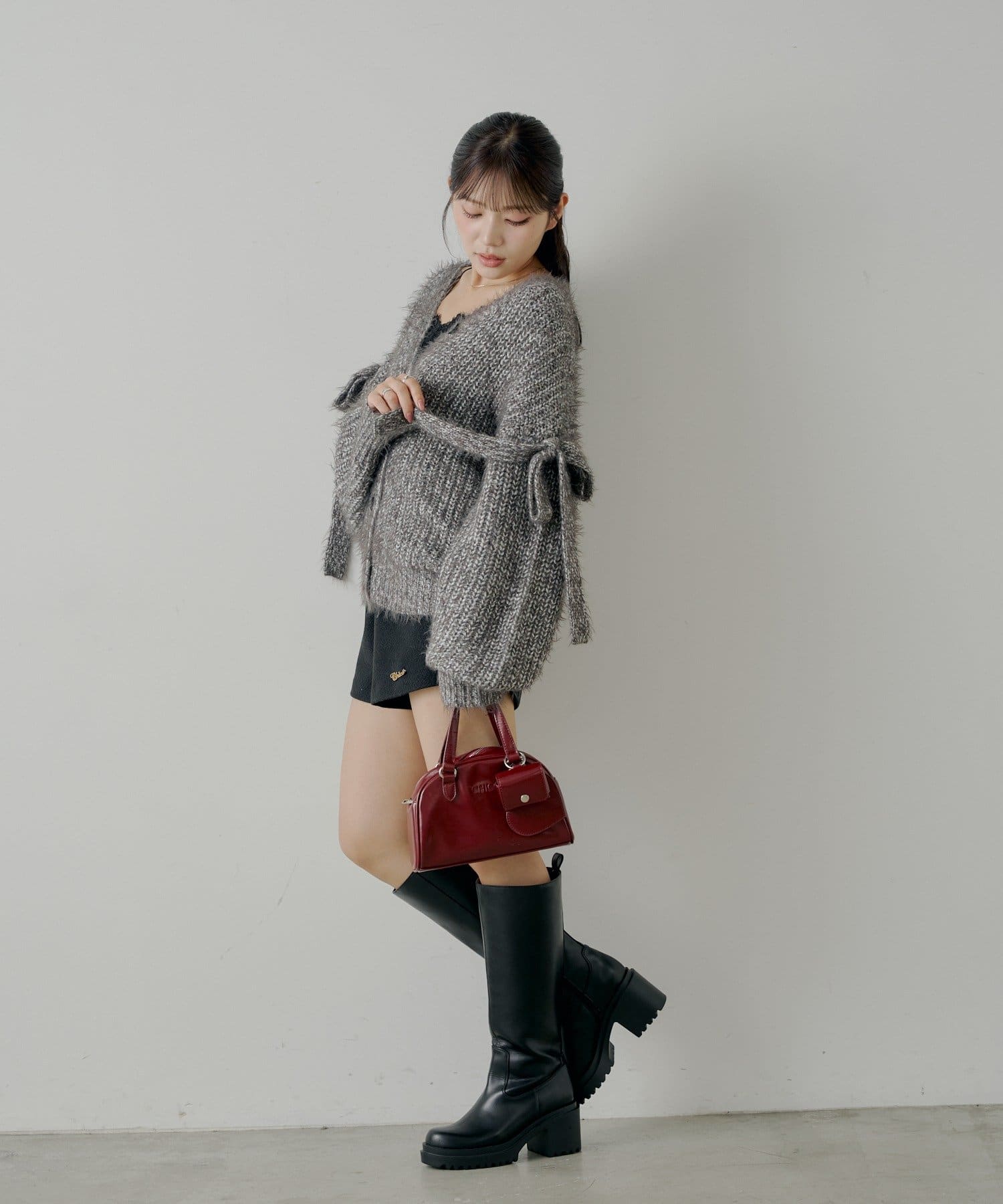 ふわふわとした質感が魅力的な袖リボンルーズリブカーディガン登場!