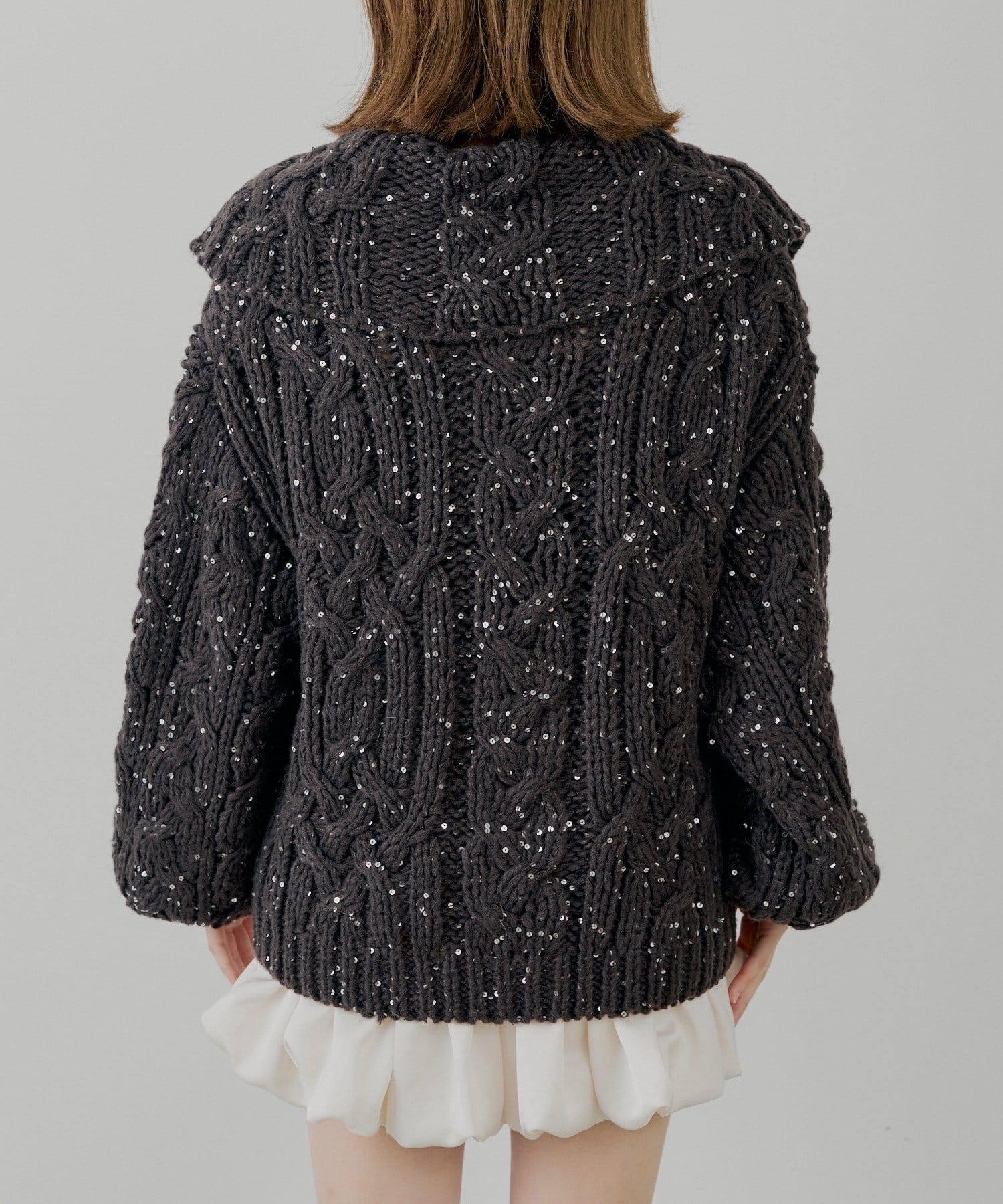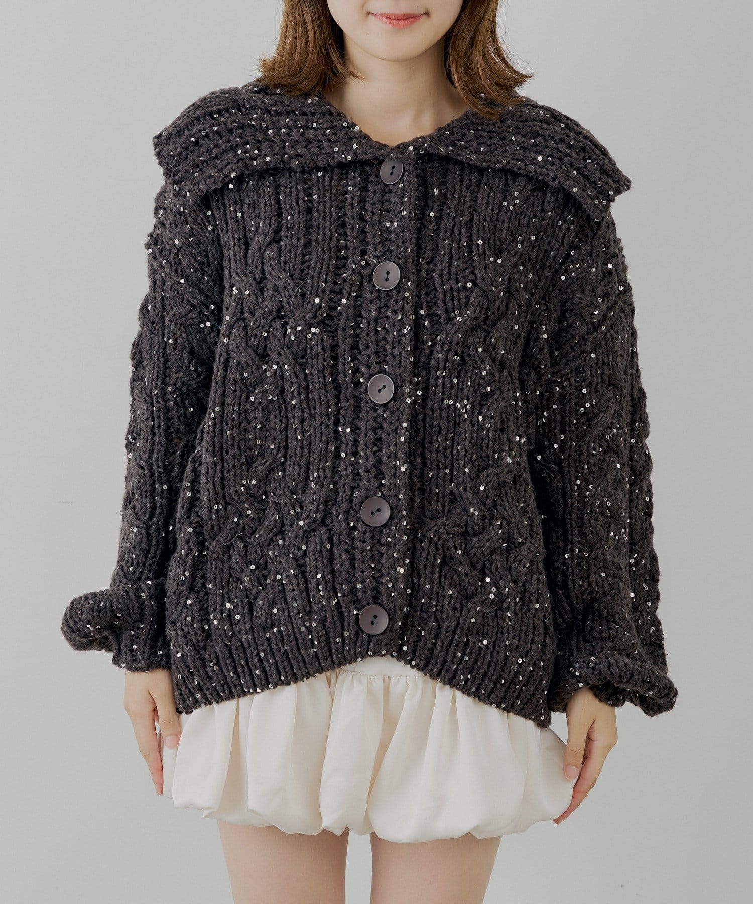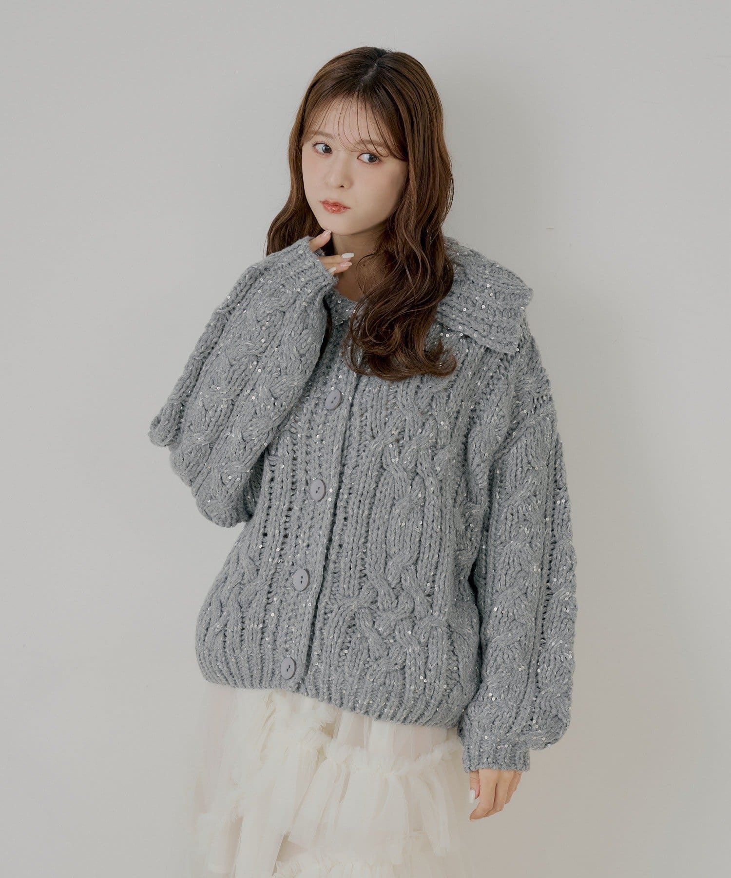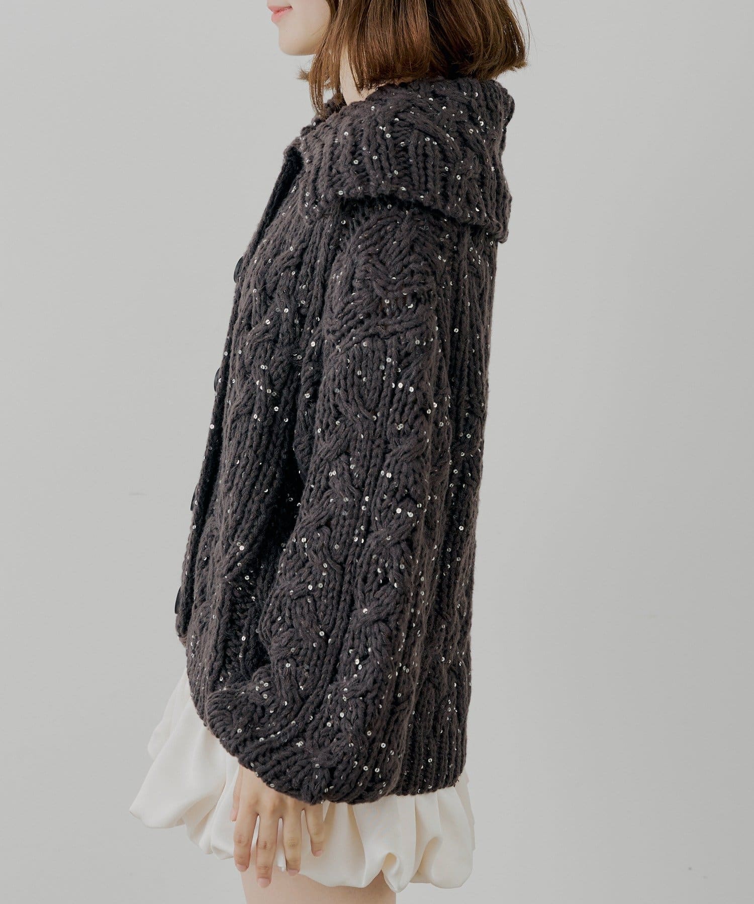 ・ざっくりとしたケーブル編みに、繊細なスパンコールを散りばめたルーズカーディガン。