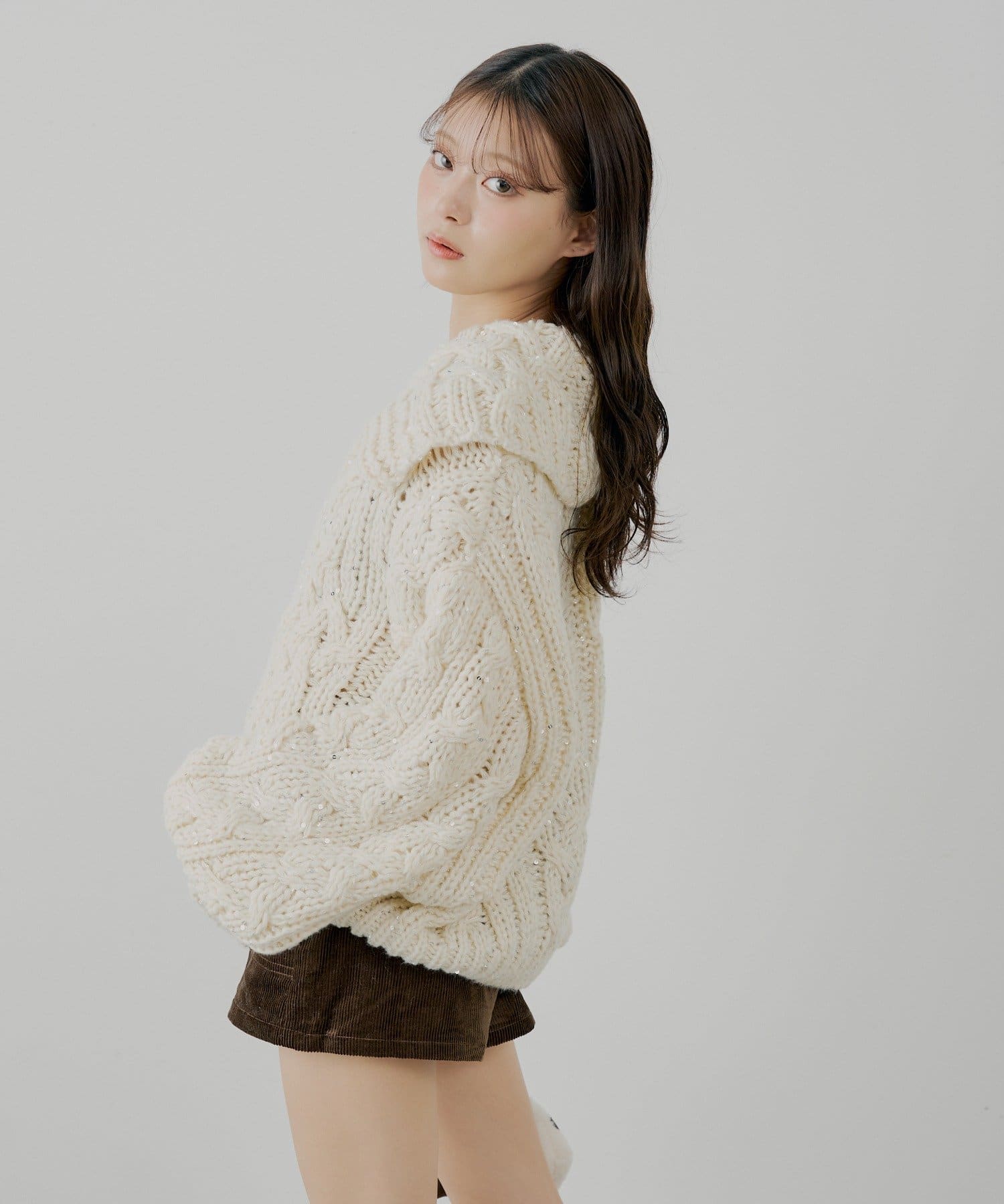 ざっくりとしたケーブル編みがこなれ感を演出するスパンコールケーブルルーズカーディガン