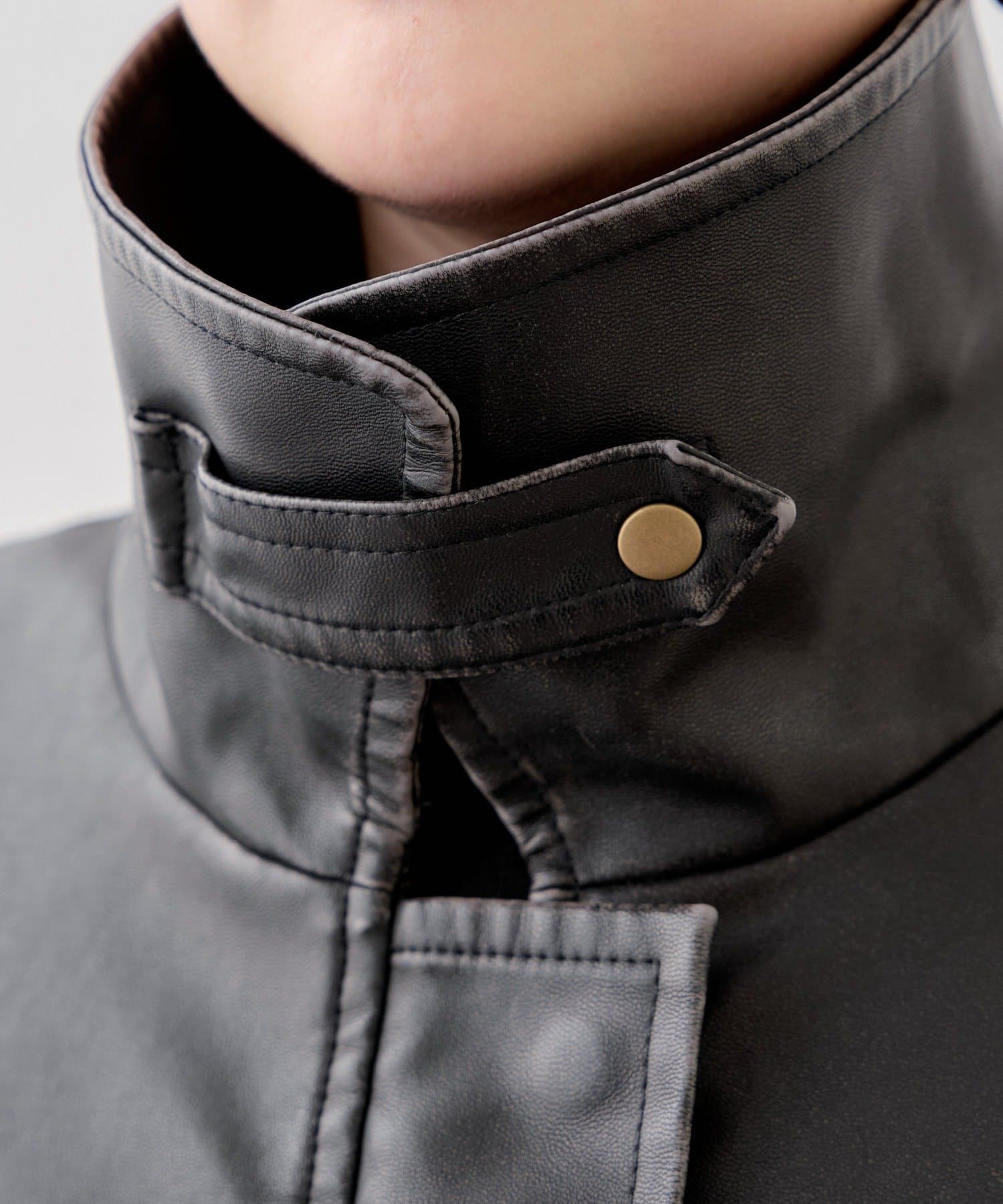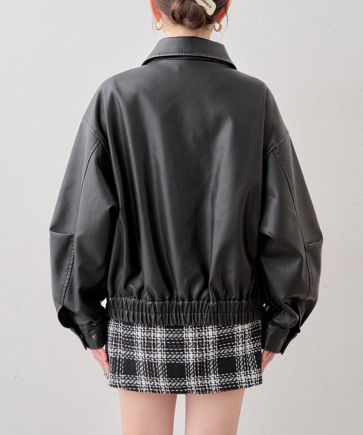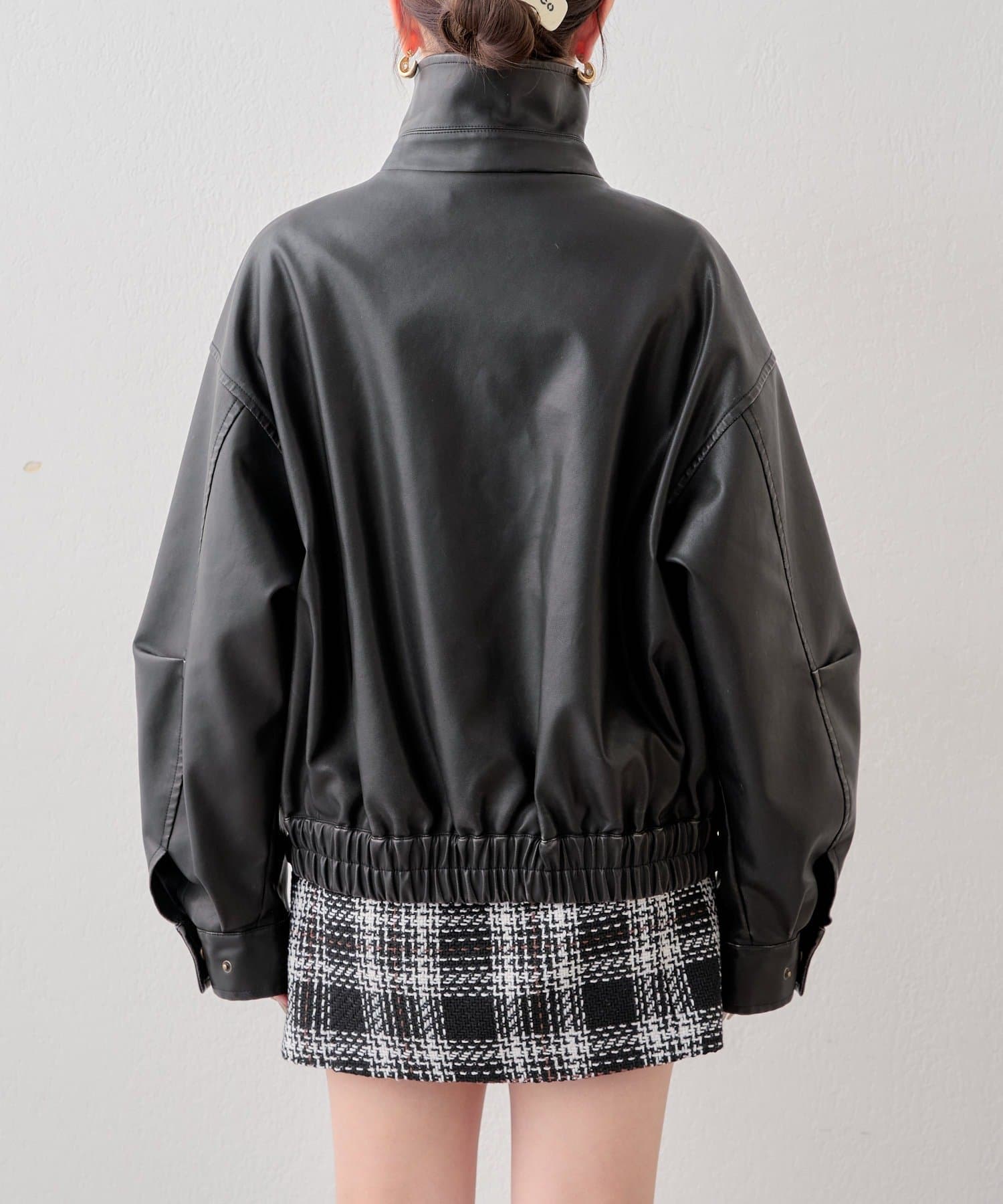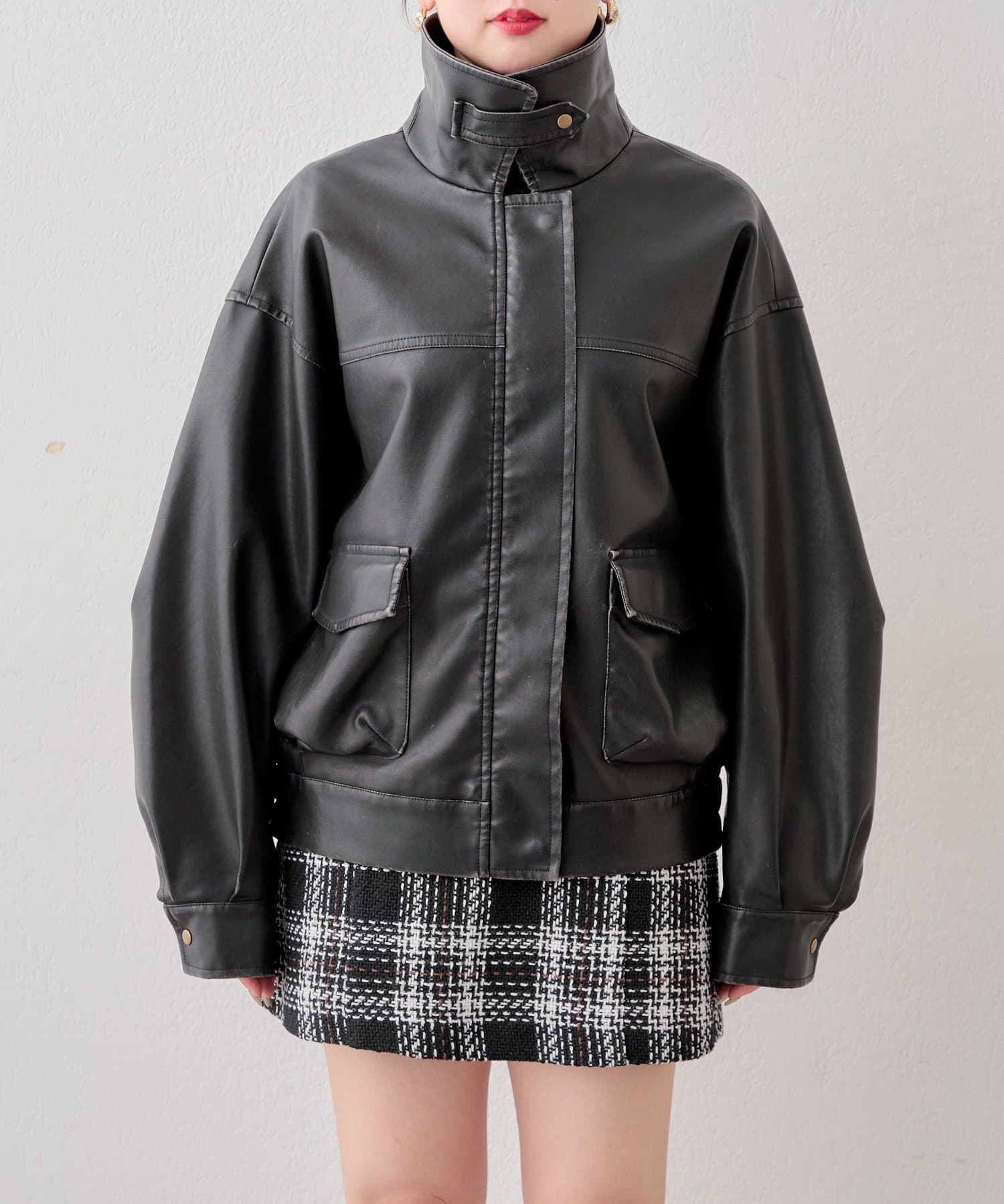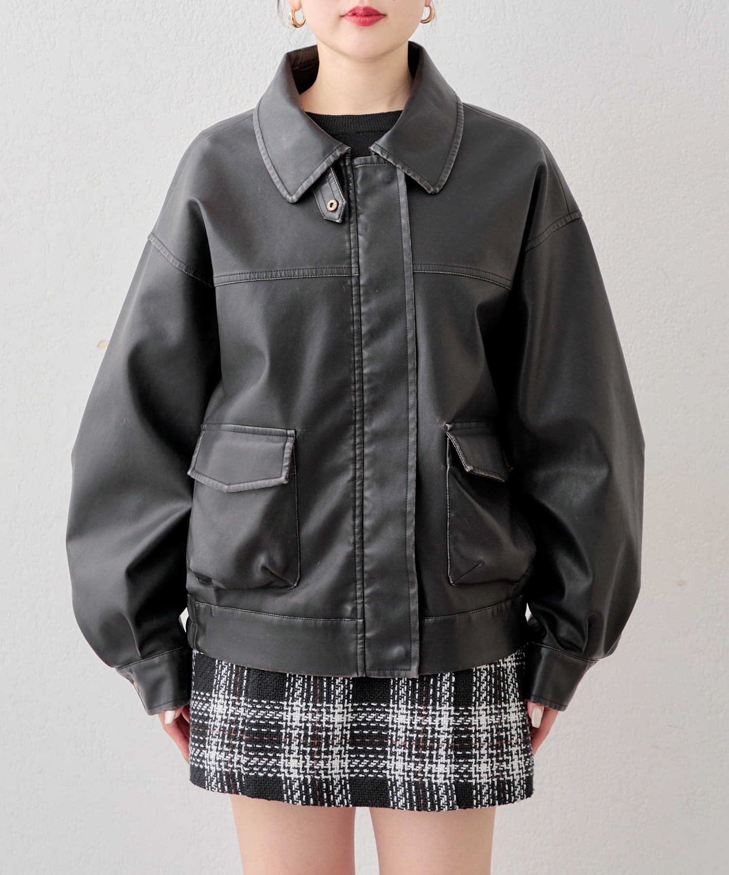 ・オーバーなサイズ感がトレンディライクなフェイクレザーミドルルーズジャケット。