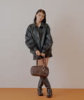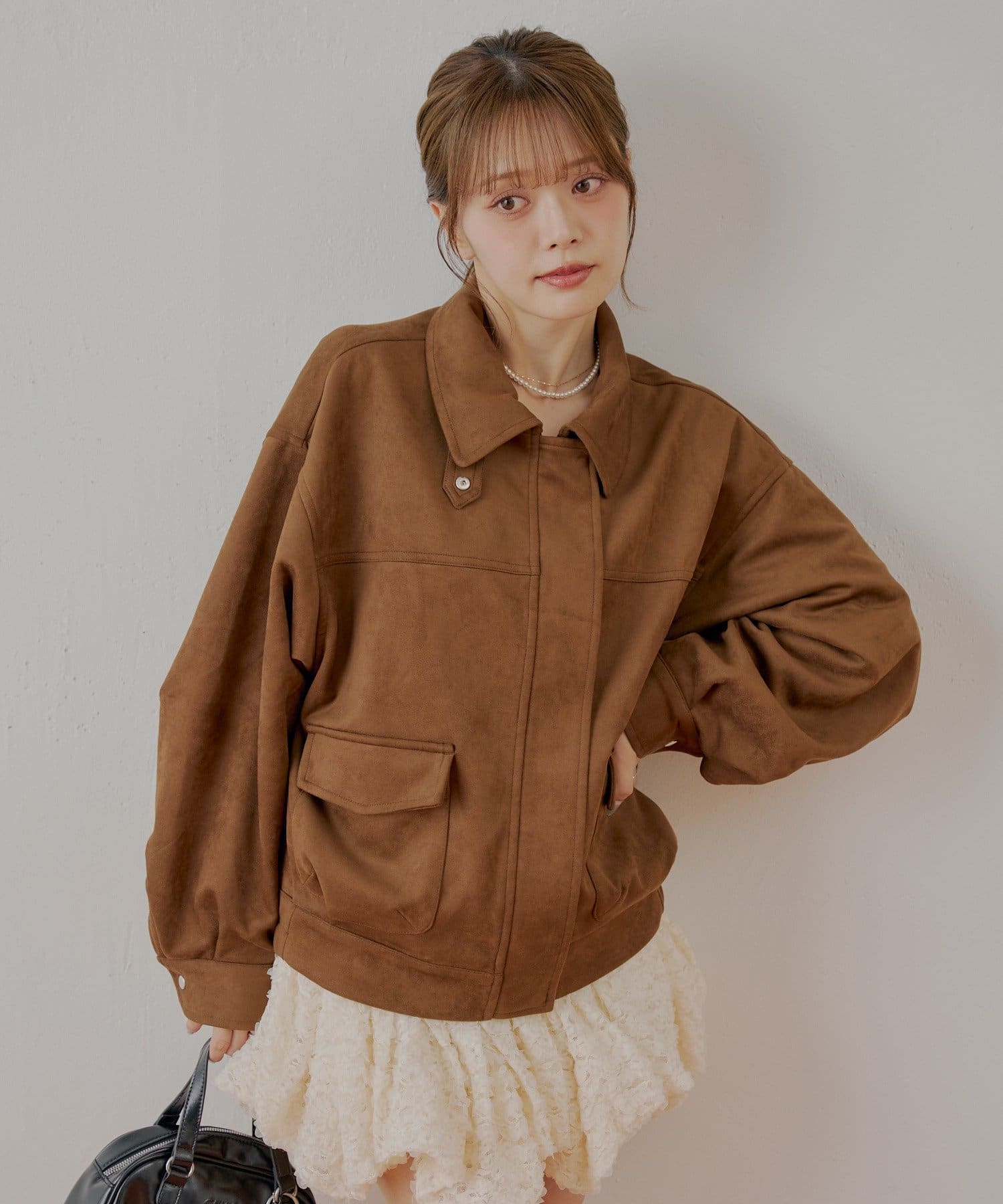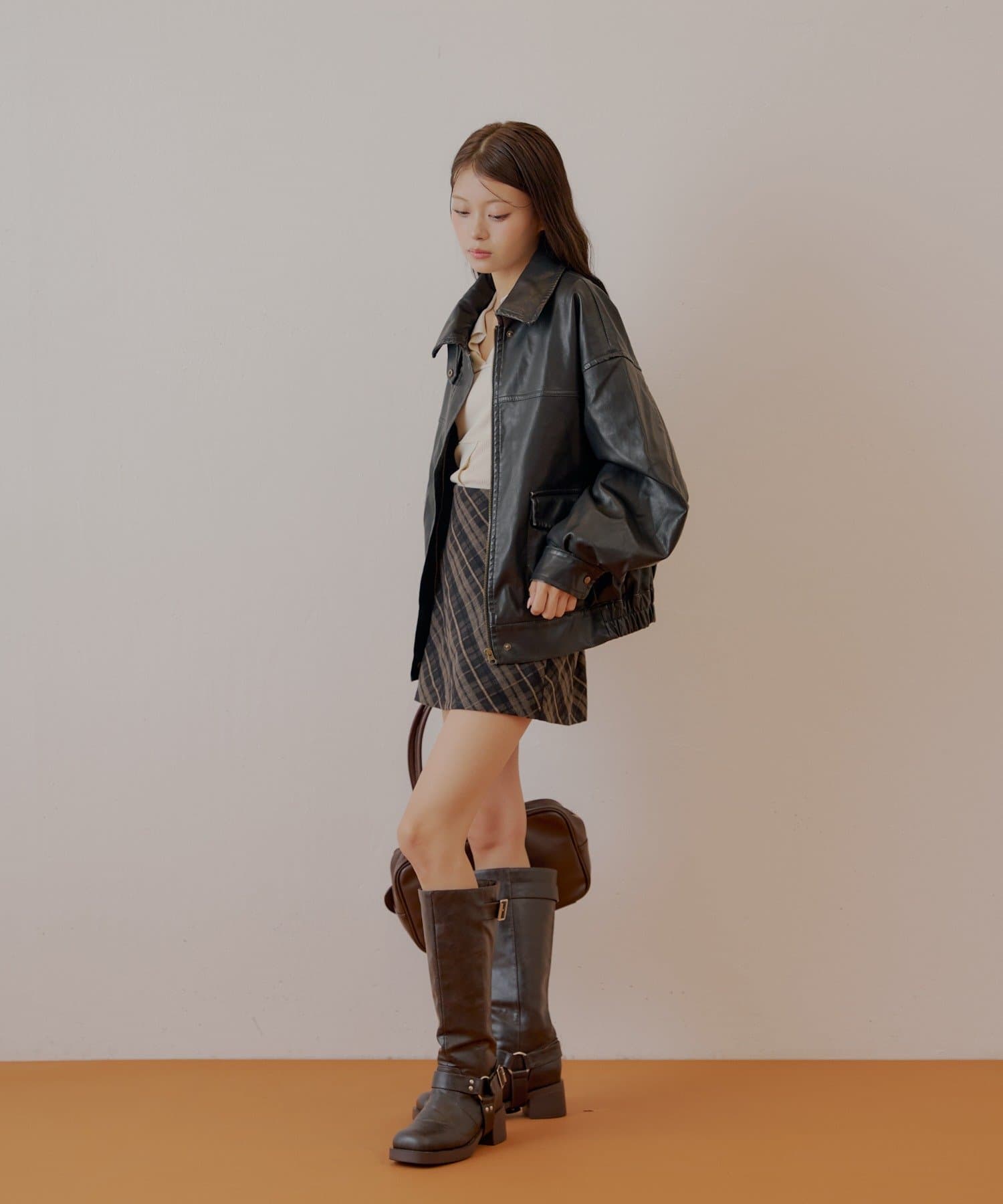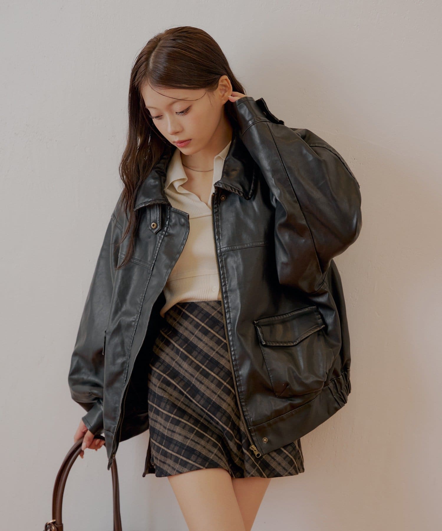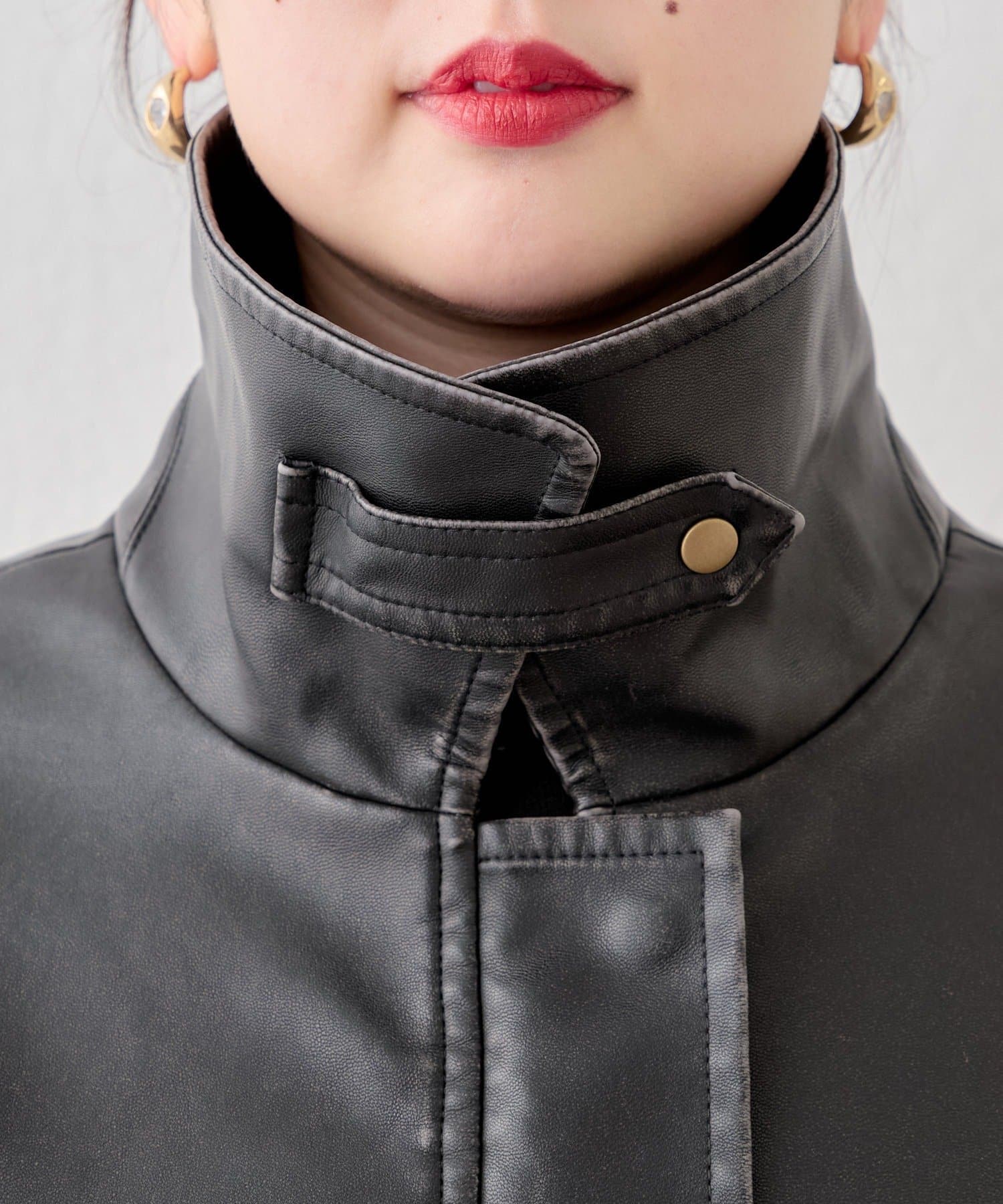 ・オーバーなサイズ感がトレンディライクなフェイクレザーミドルルーズジャケット。