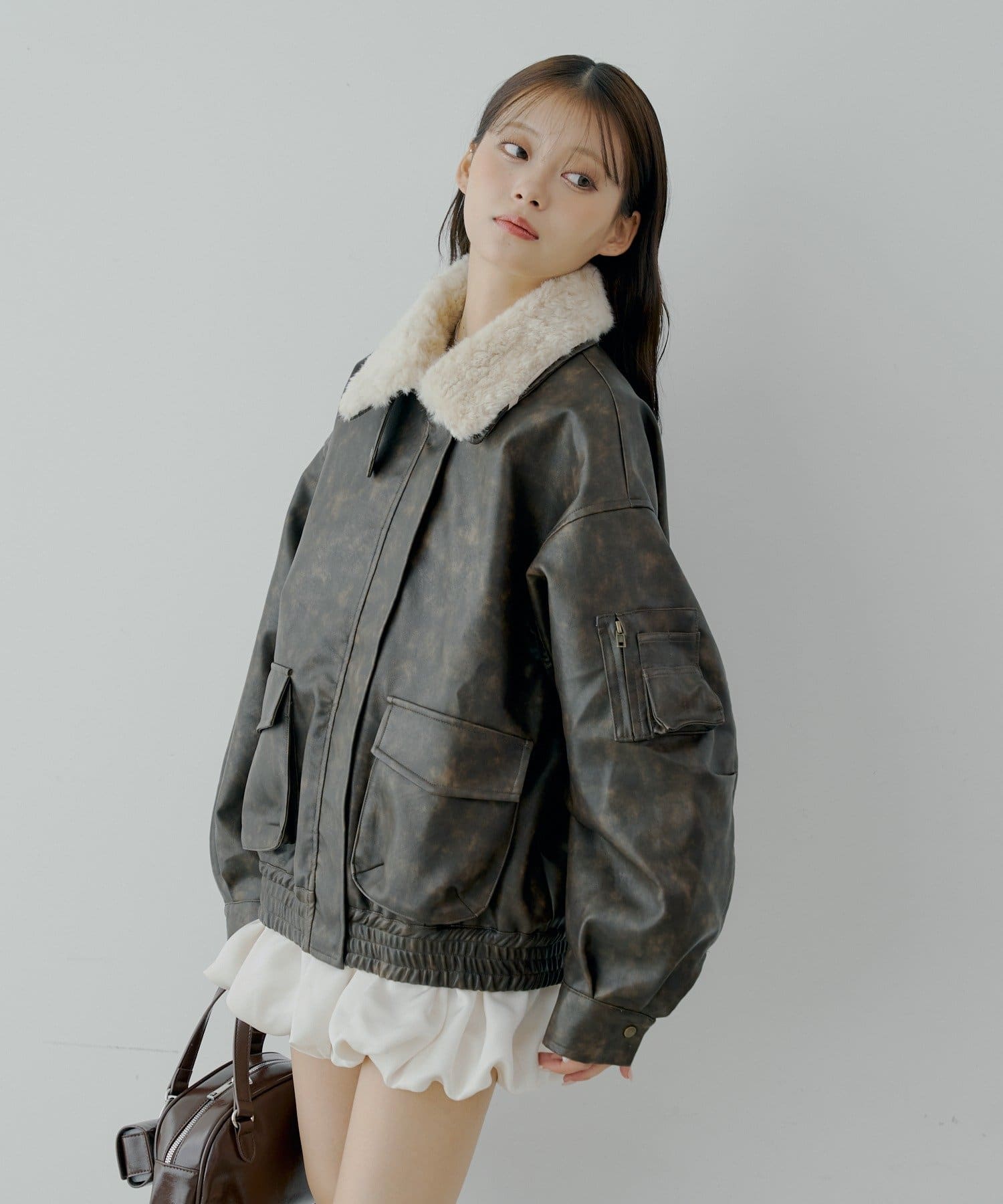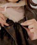 ・襟元のふわふわとしたファーは取り外し可能なため、その日の気分やシーンに合わせて、ノーカラーレザージャケットとしても着用いただけます。