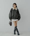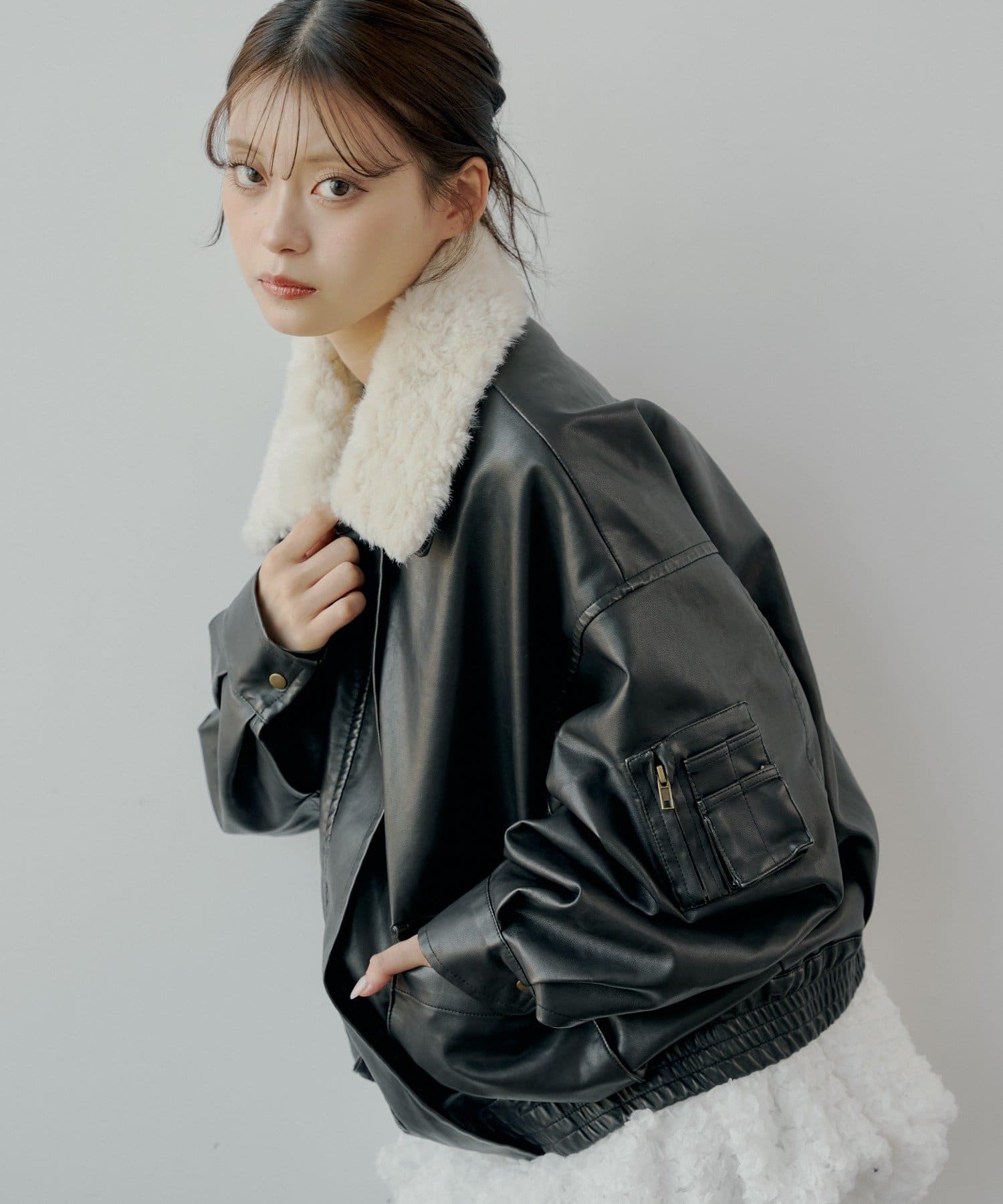 ・首元のふわふわファーがハードな印象のレザージャケットに、フェミニンなアクセントプラスしてくれます。