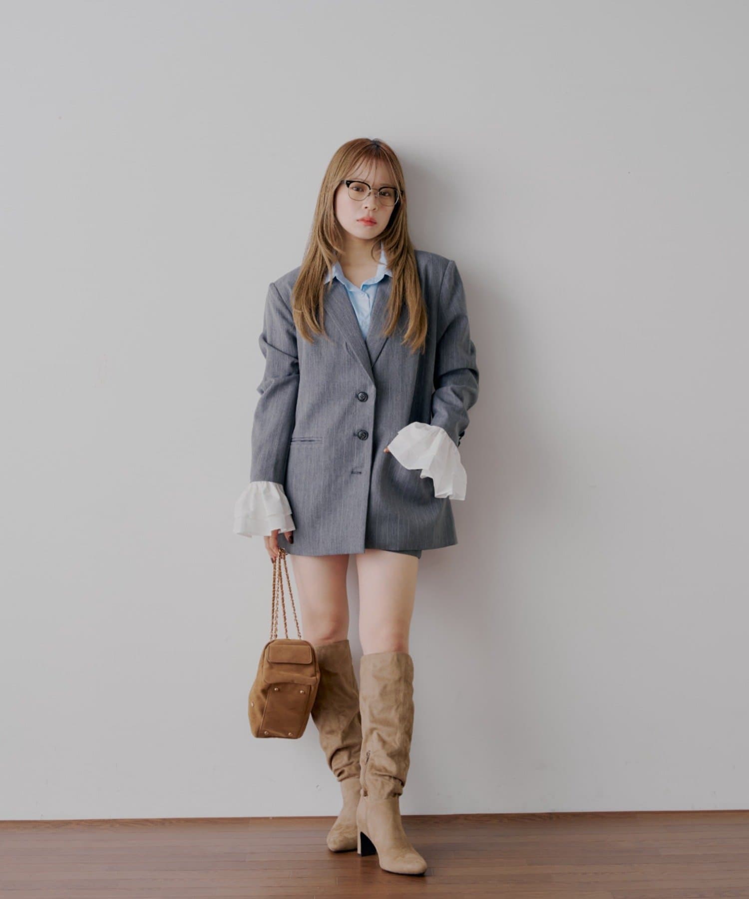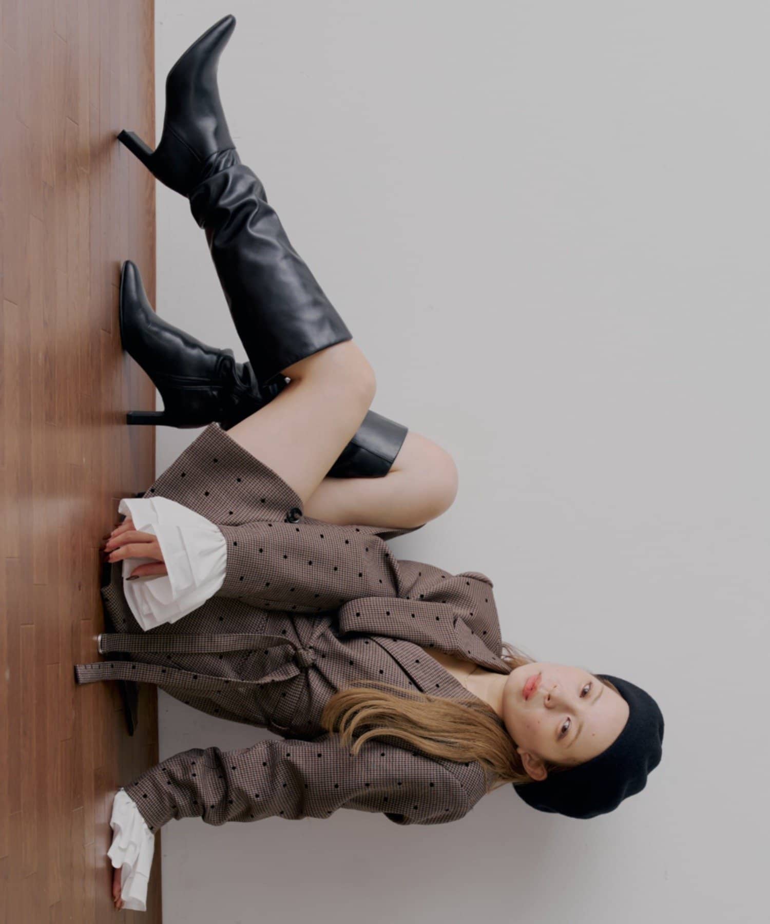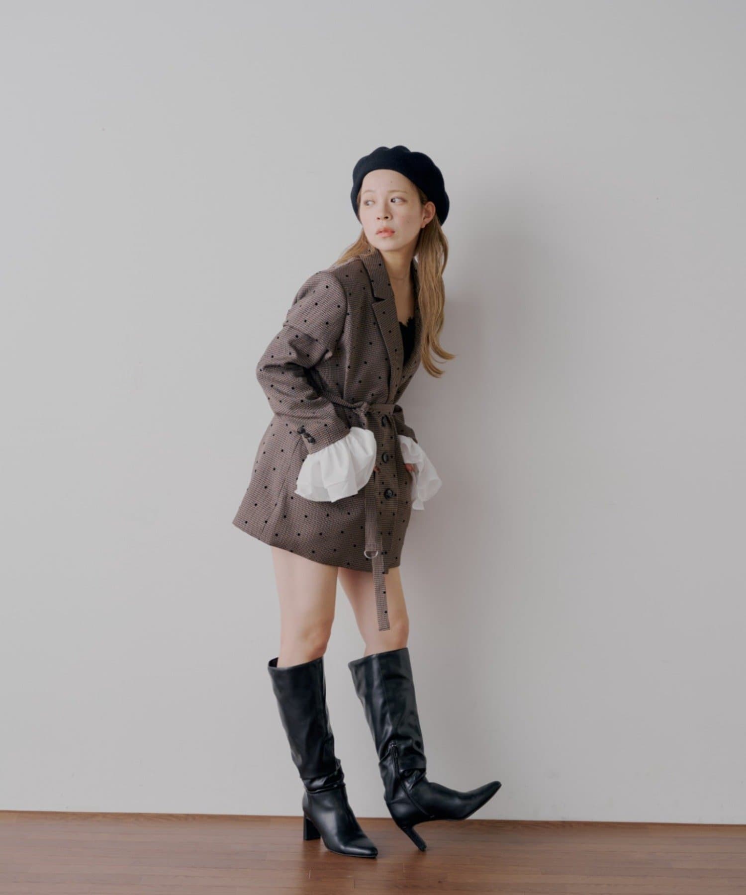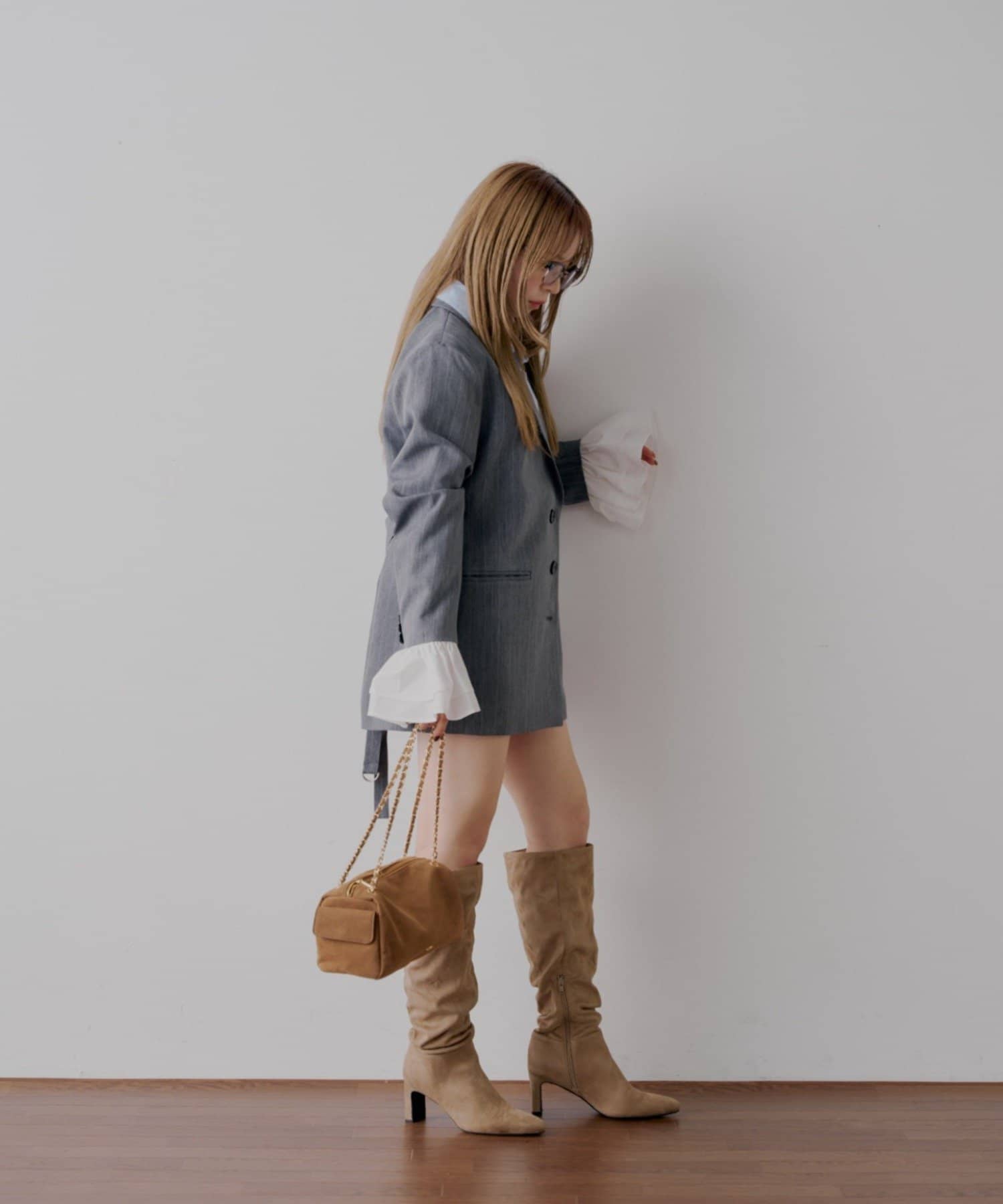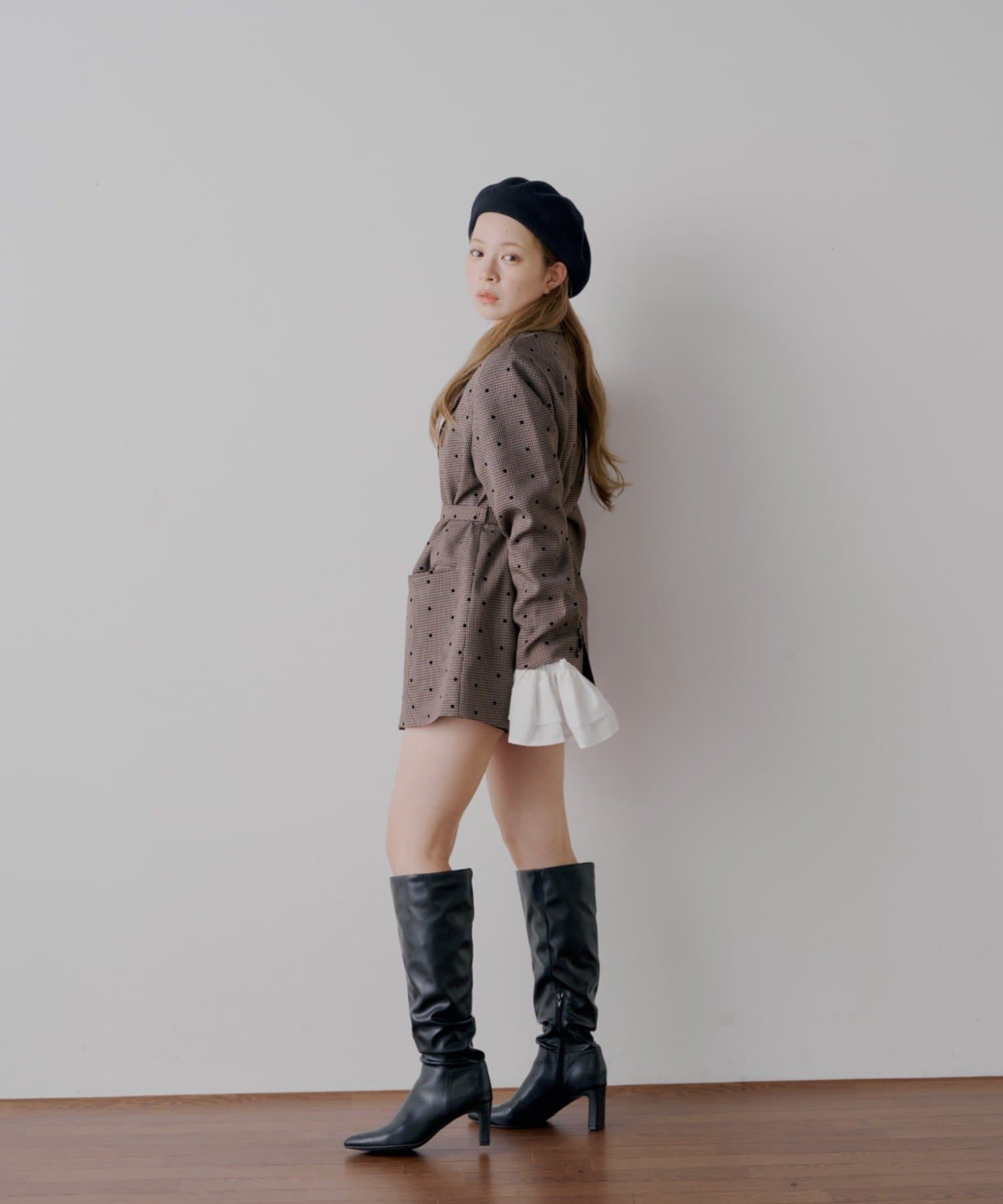 ・ワンピース風に着るのが可愛くておすすめです。ロングブーツを合わせるとさらに◎
