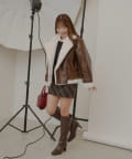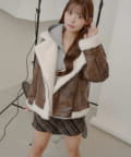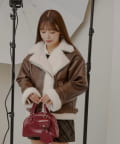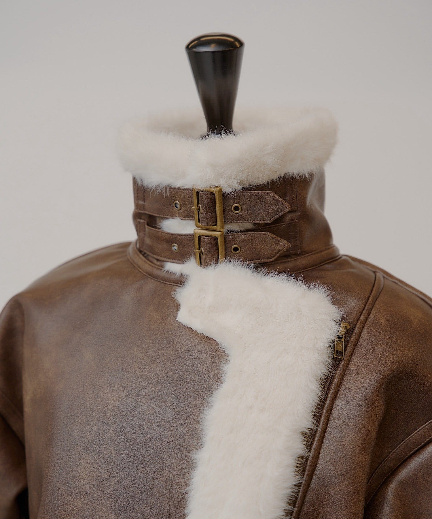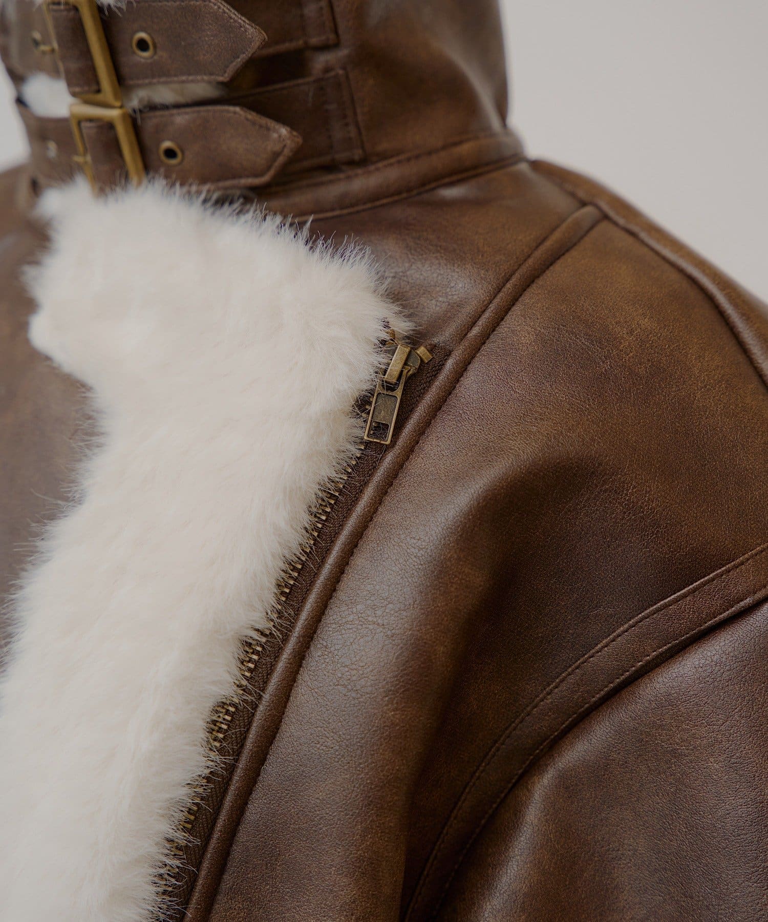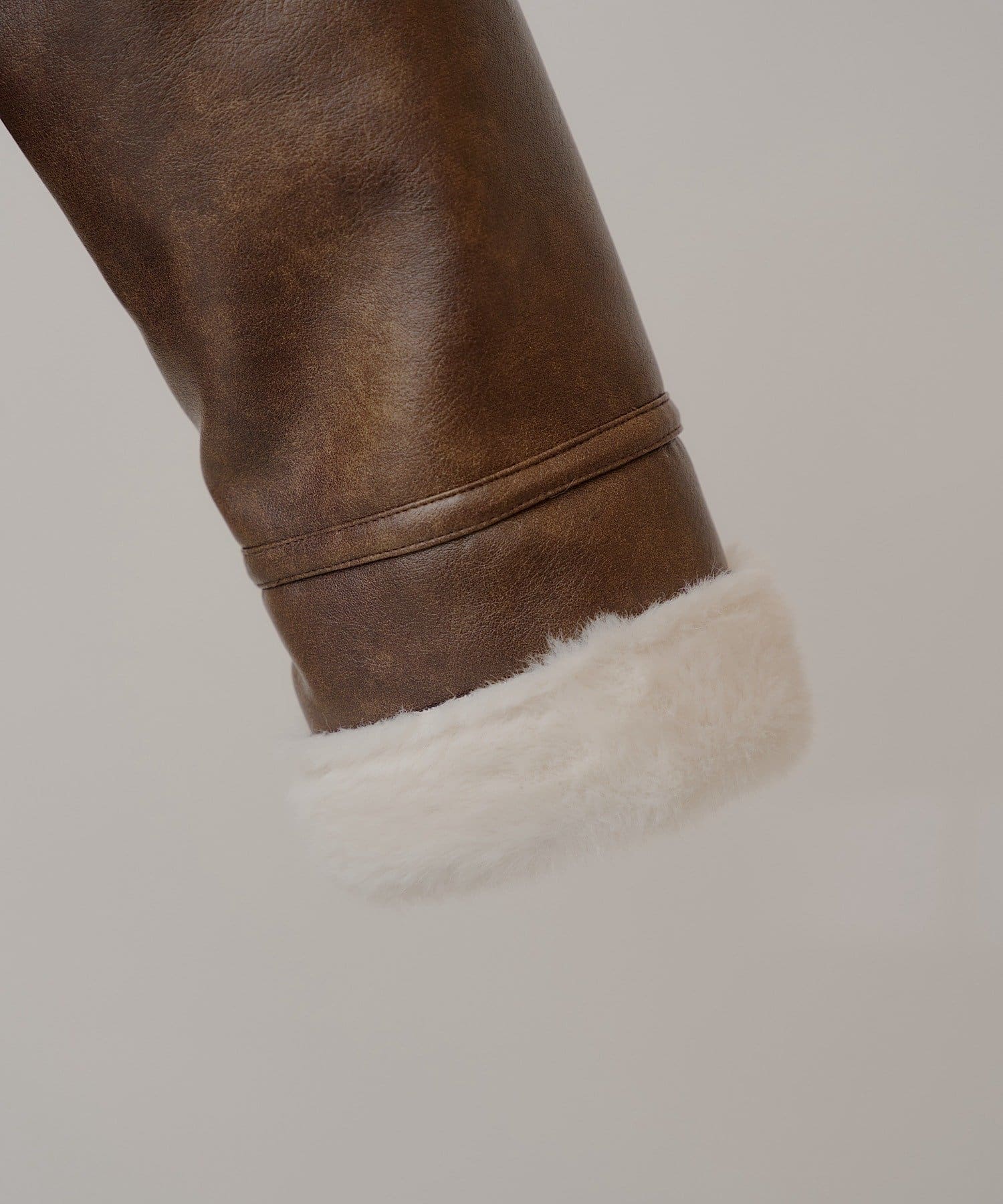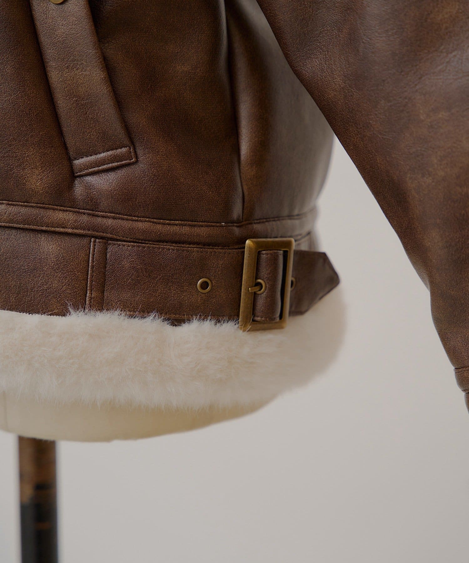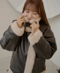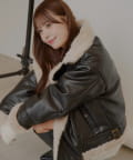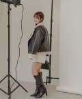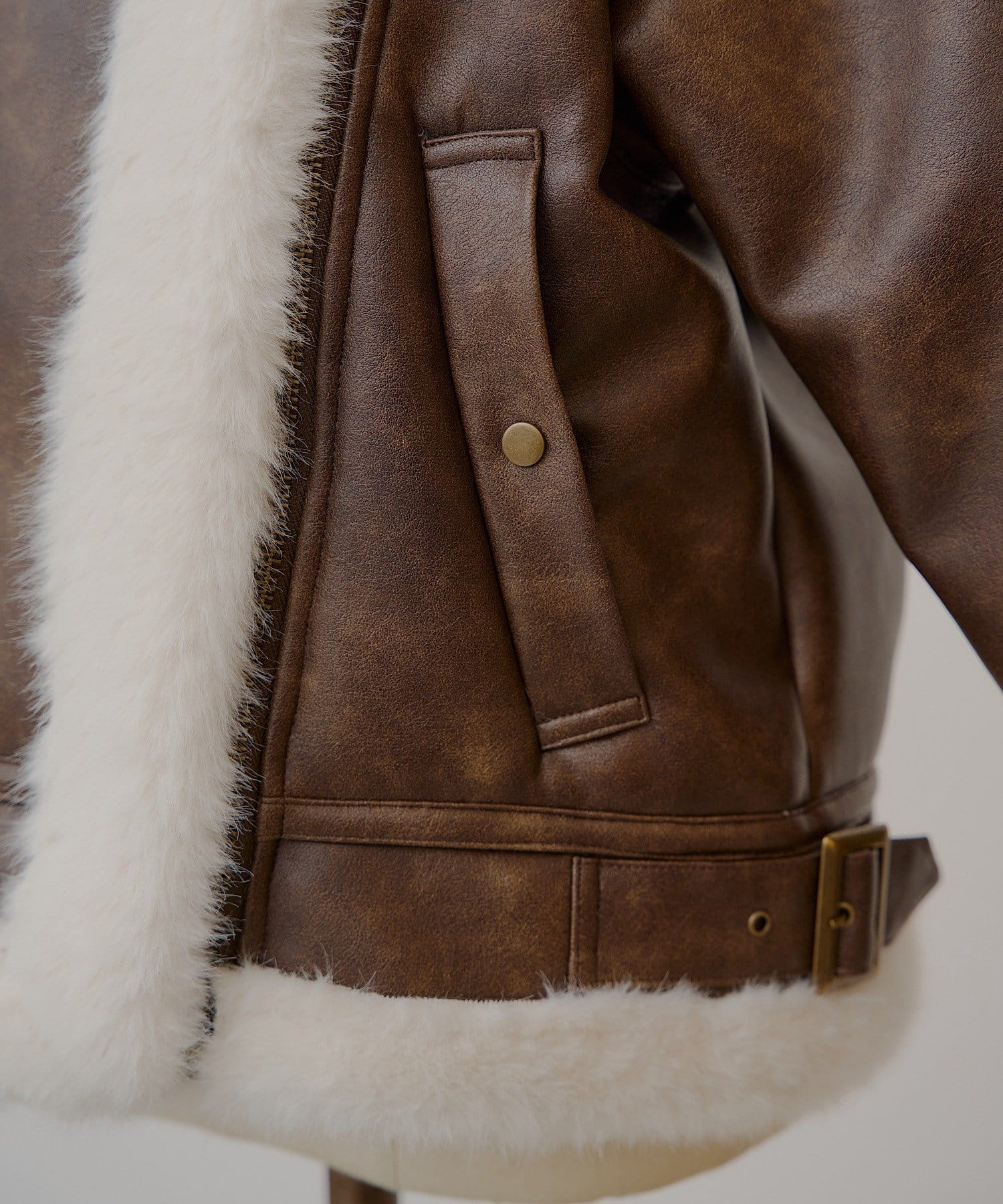 ・首元、袖口、裾にあしらわれたふわふわのファーが魅力のライダースショートジャケット。
