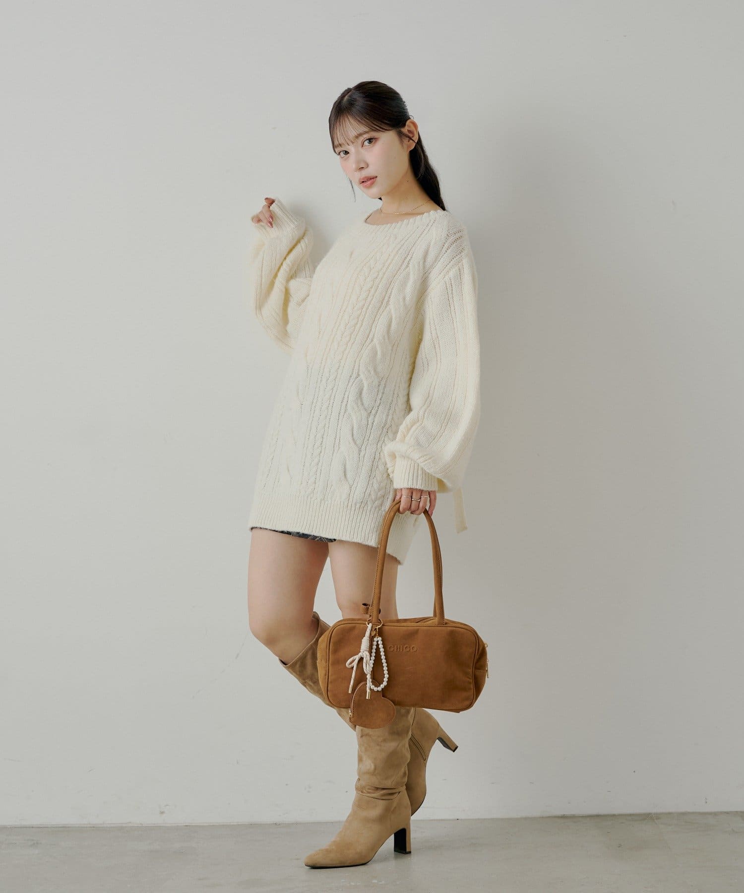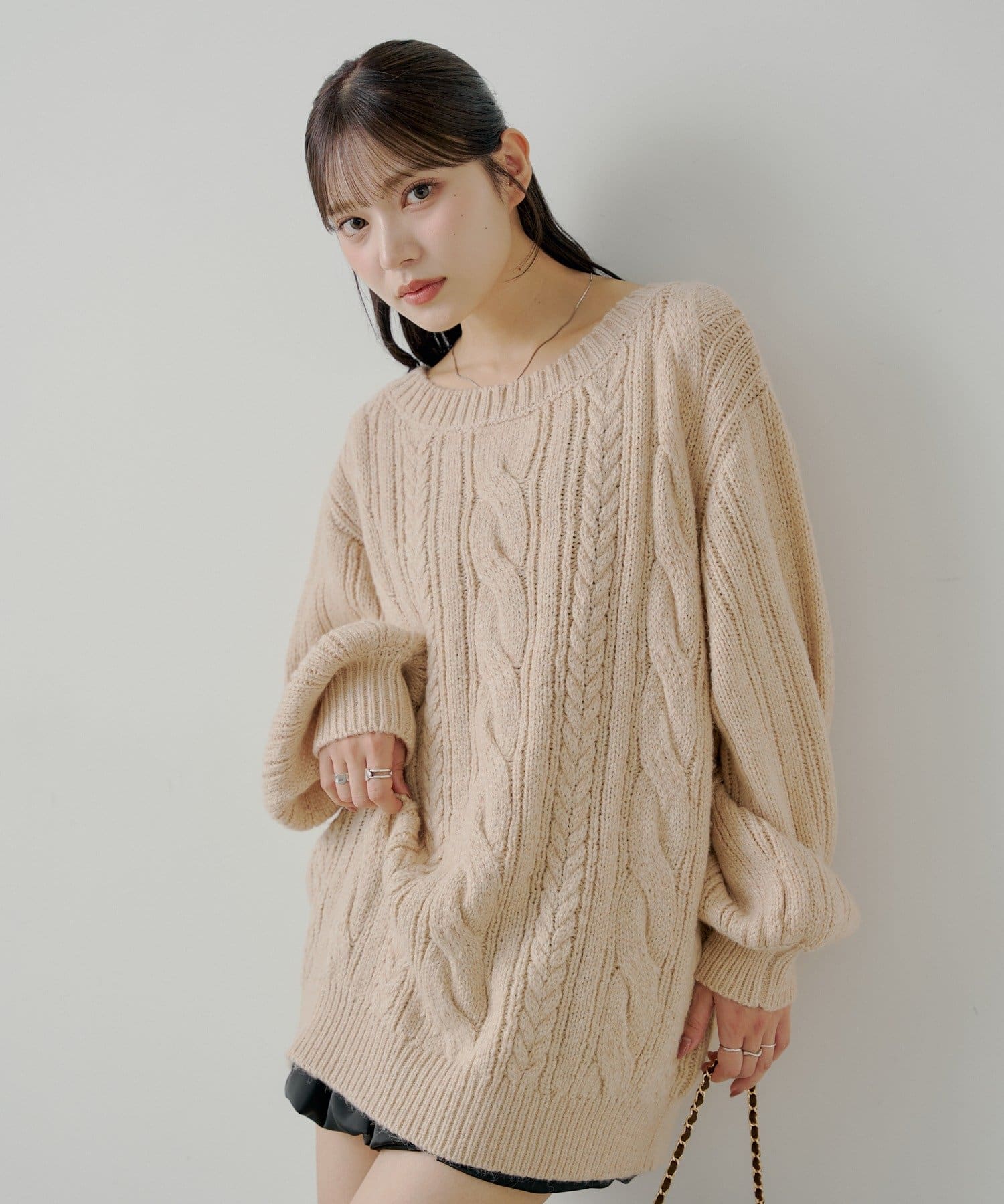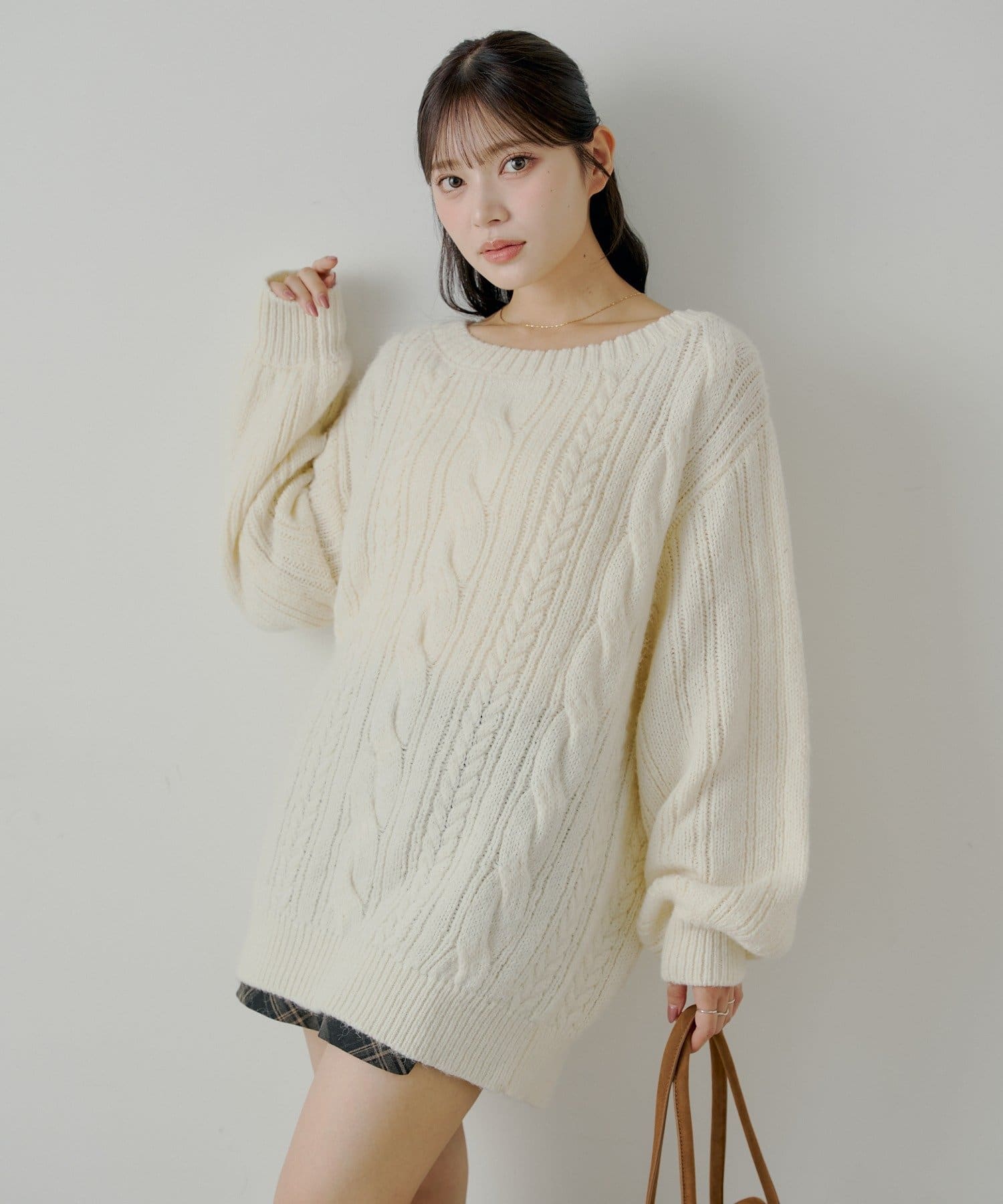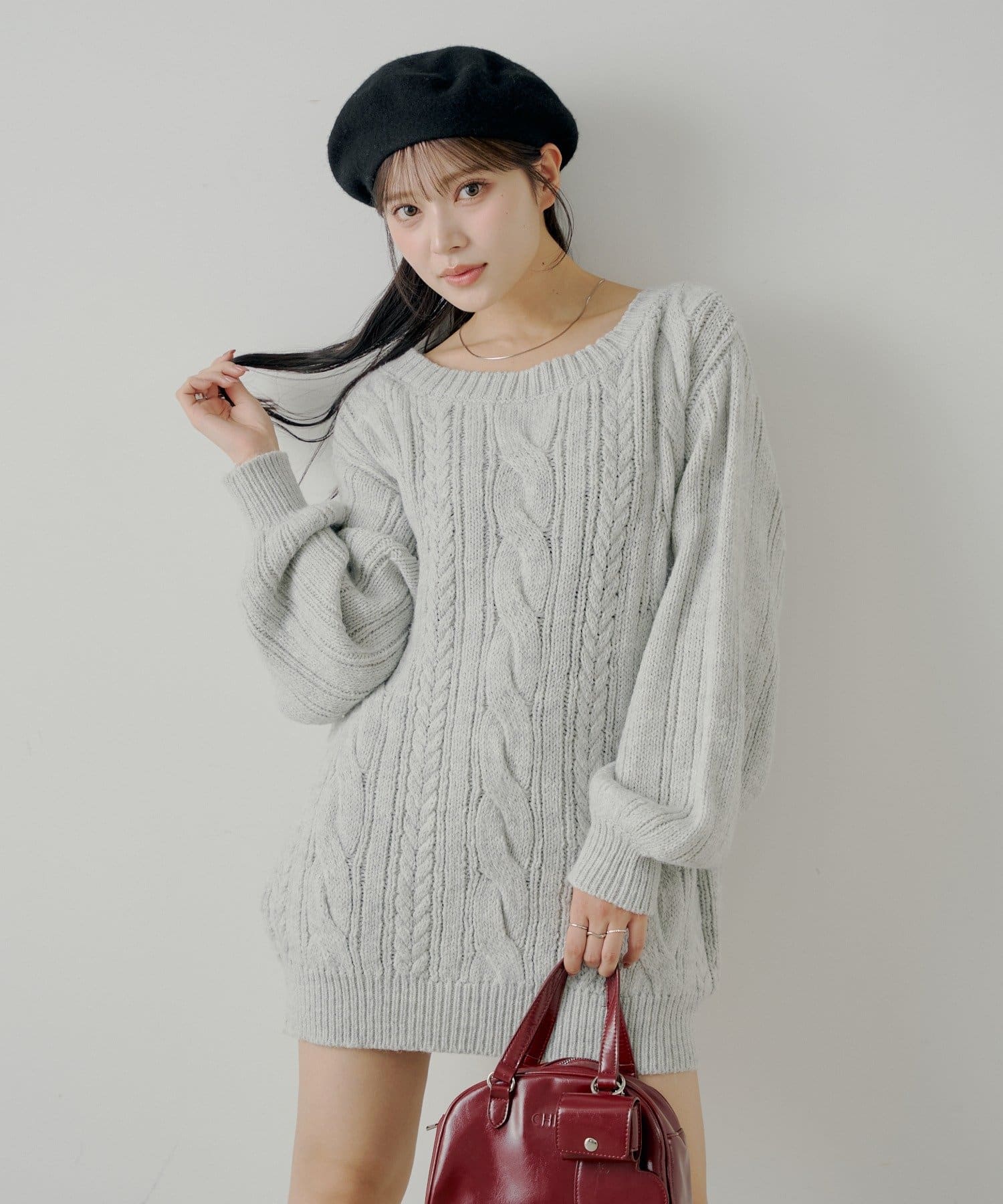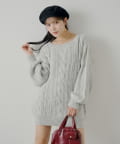 ・ふんわりとしたルーズなシルエットが、女性らしさを引き立てるケーブルニットワンピース。