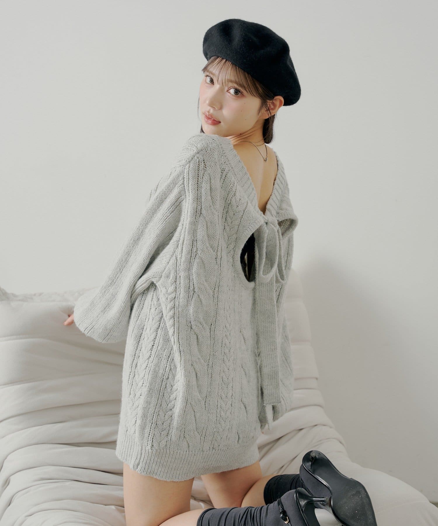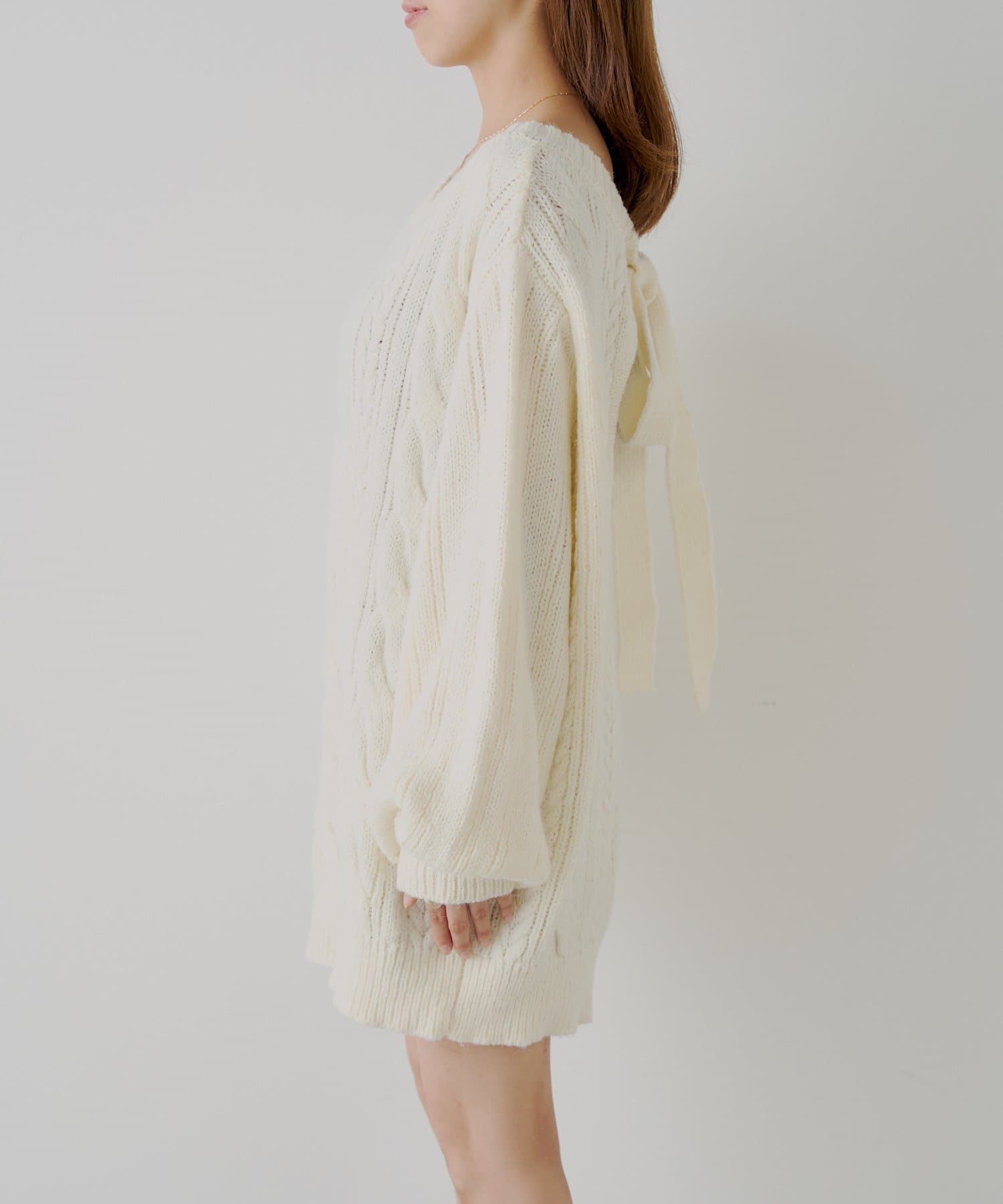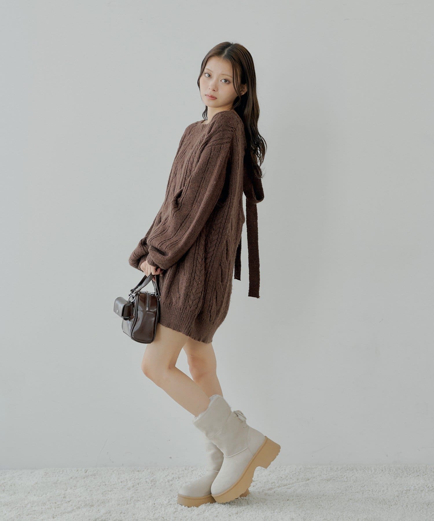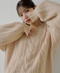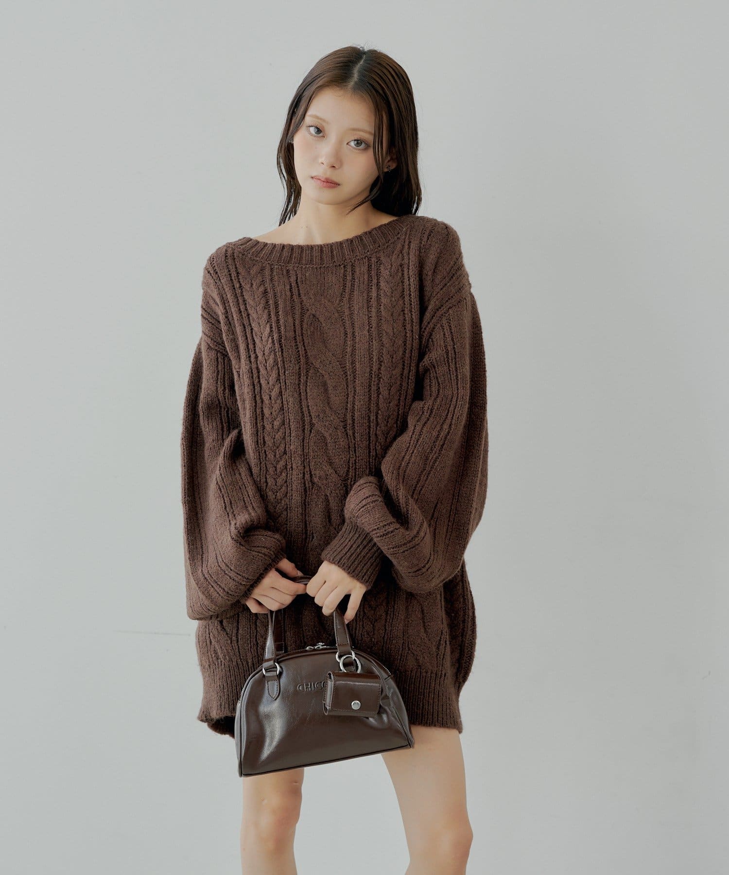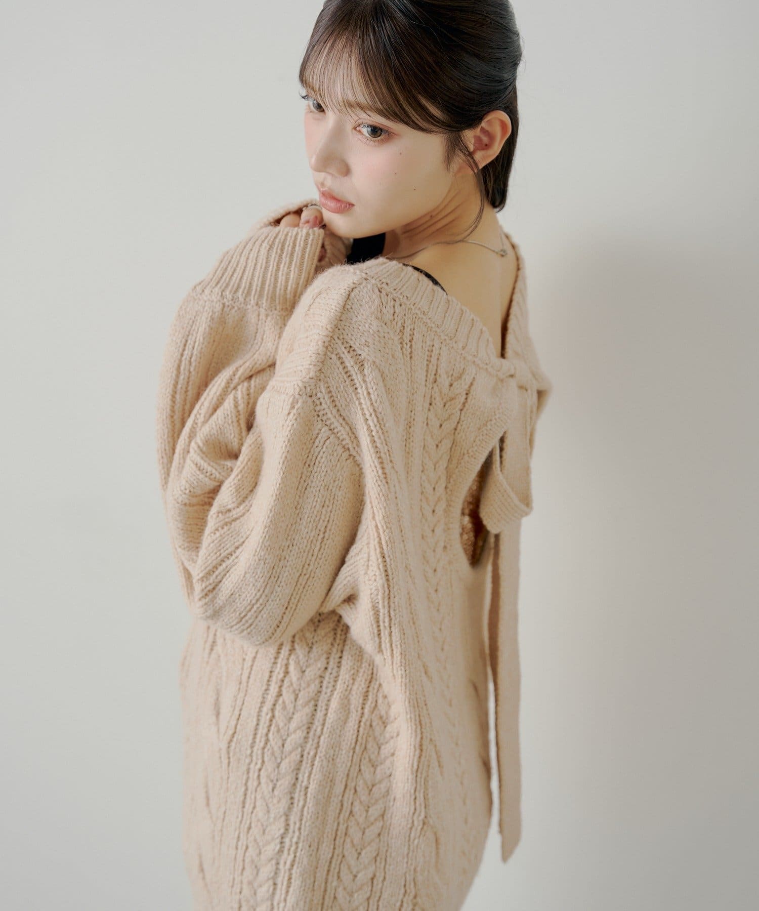 ・ふんわりとしたルーズなシルエットが、女性らしさを引き立てるケーブルニットワンピース。