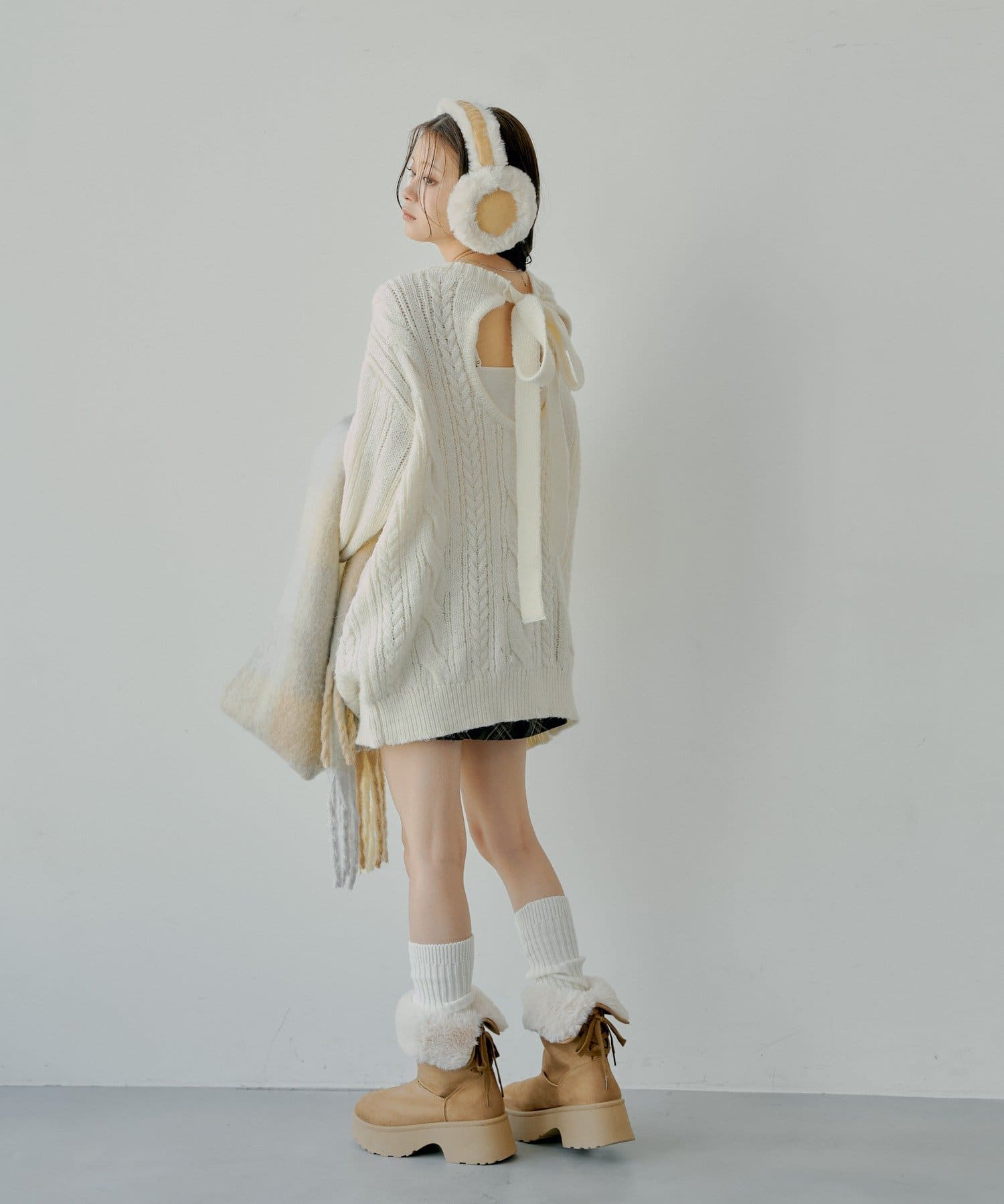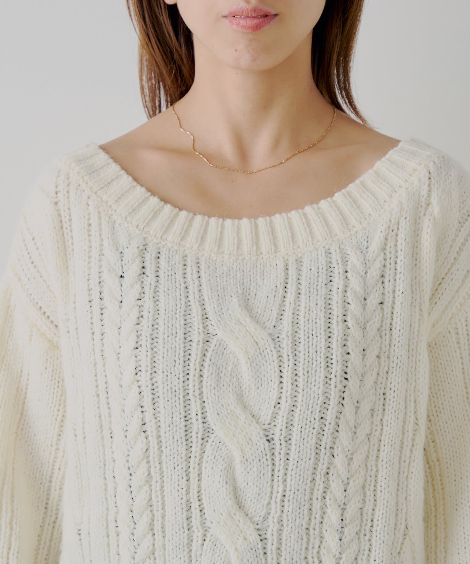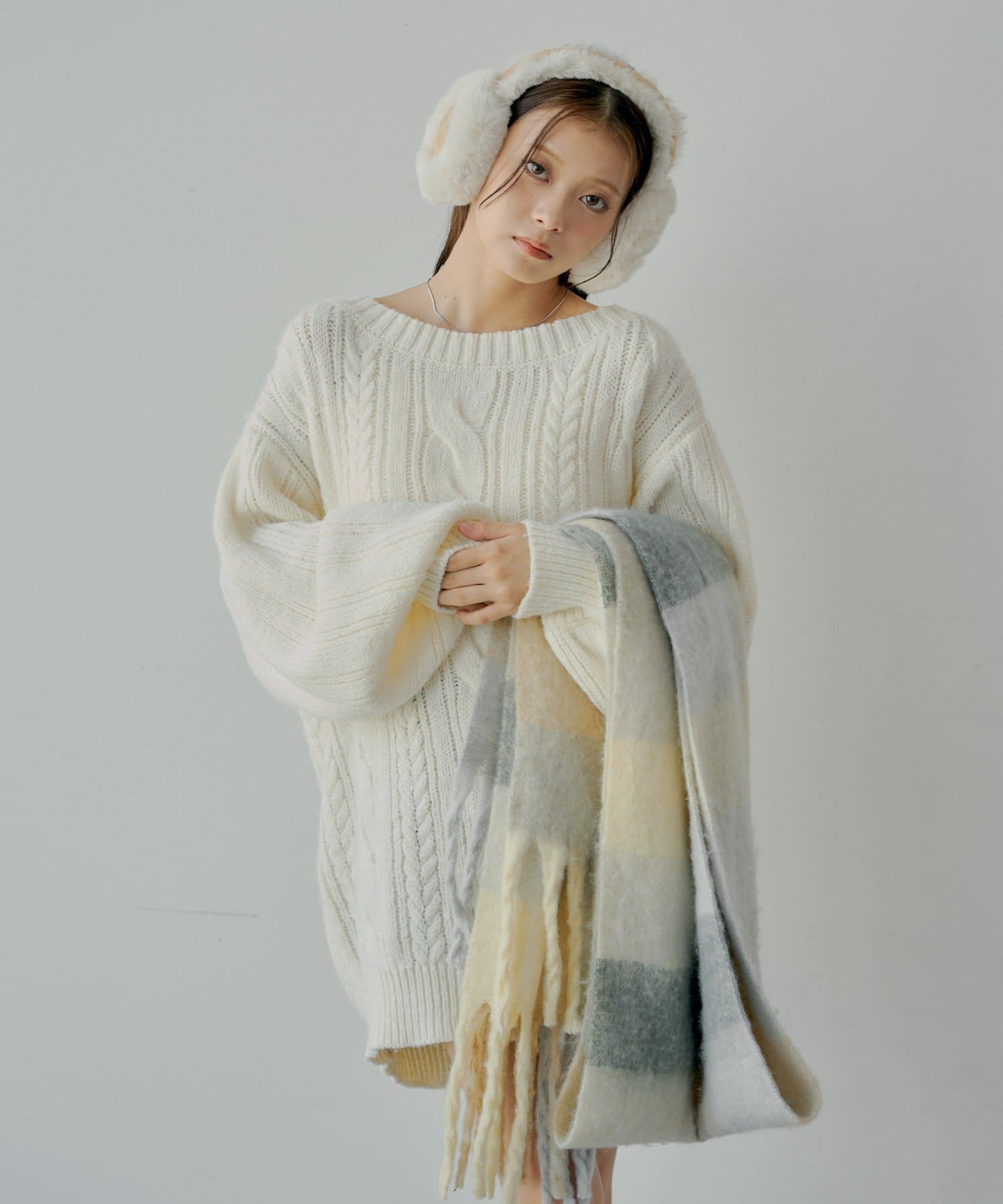 ・ 暖かみのあるケーブル編みが、秋冬の装いにぴったりのアイテムです。