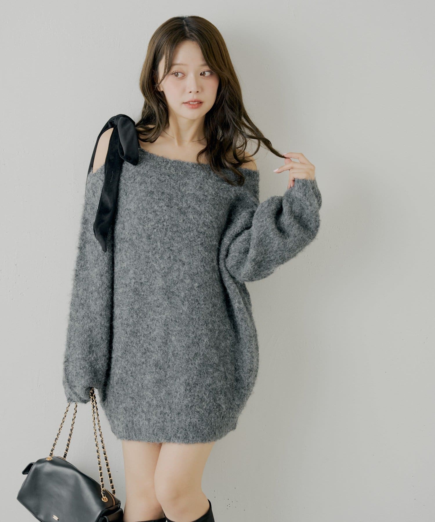 【REVIVAL/WEB限定】ベロアリボンシャギーワンピース