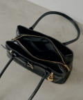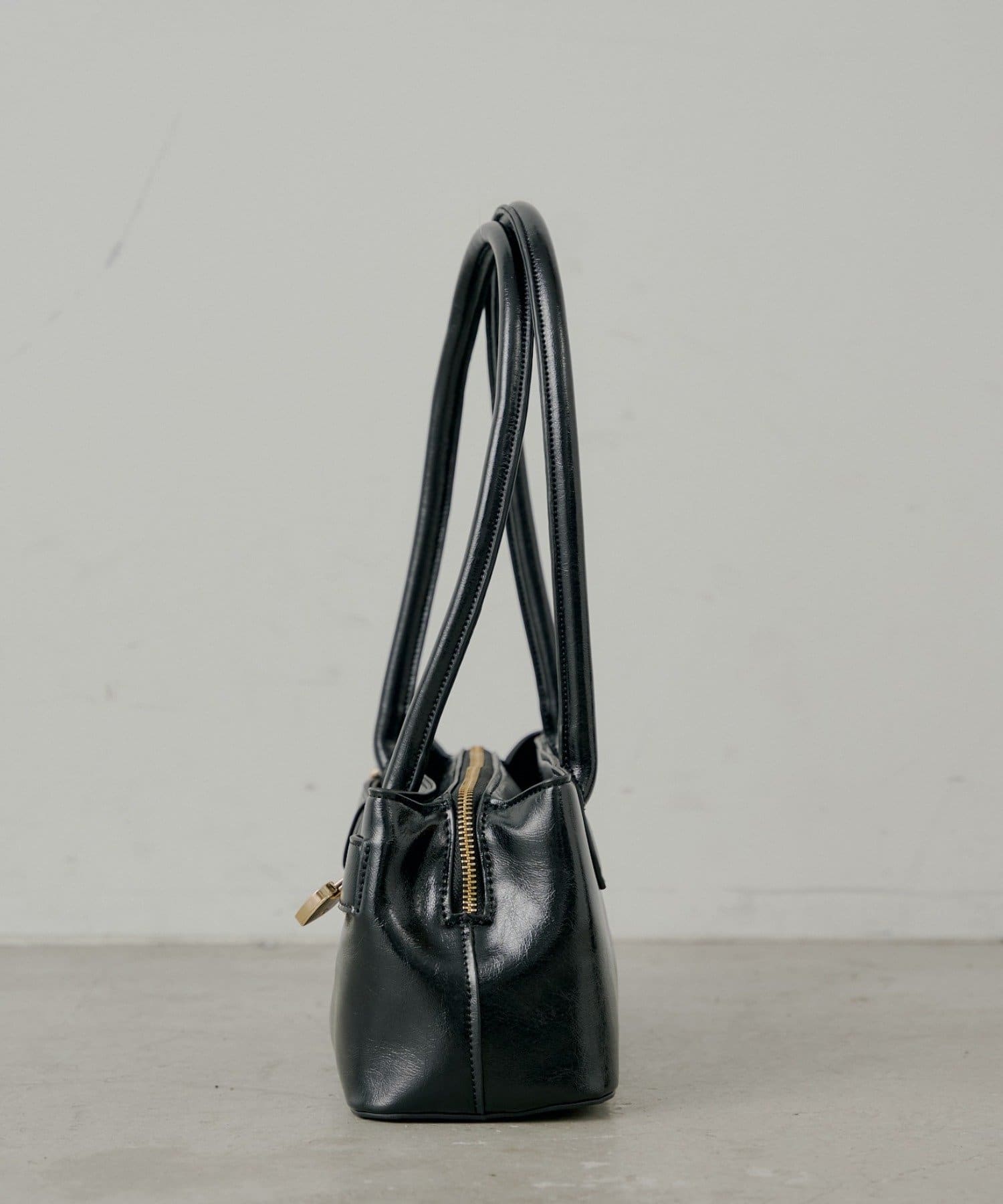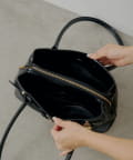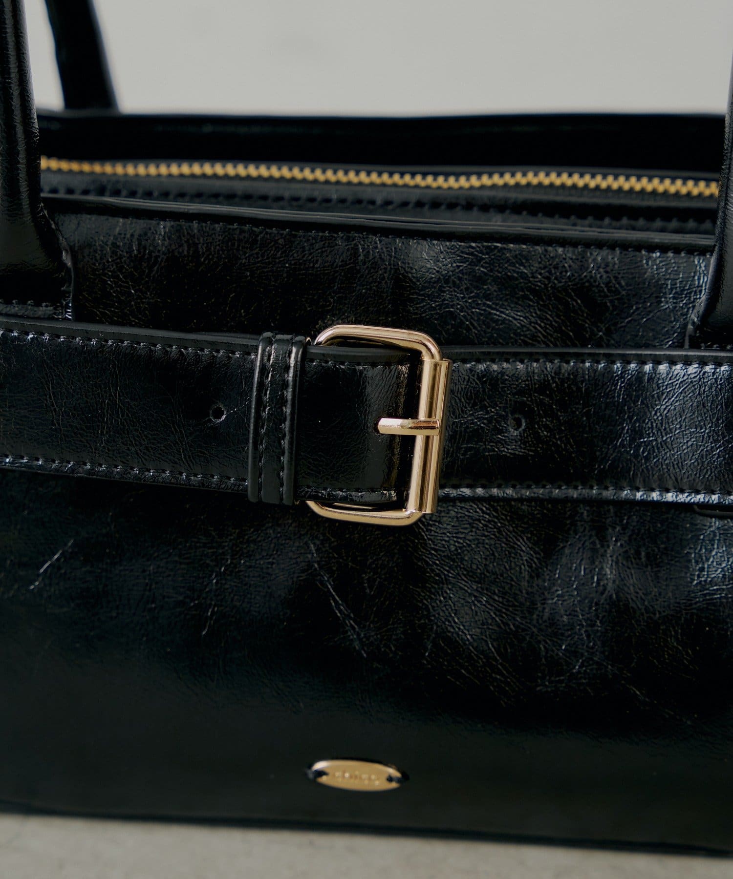・ころんとしたフォルムとフロントのベルトデザインが魅力のボストンバッグ。