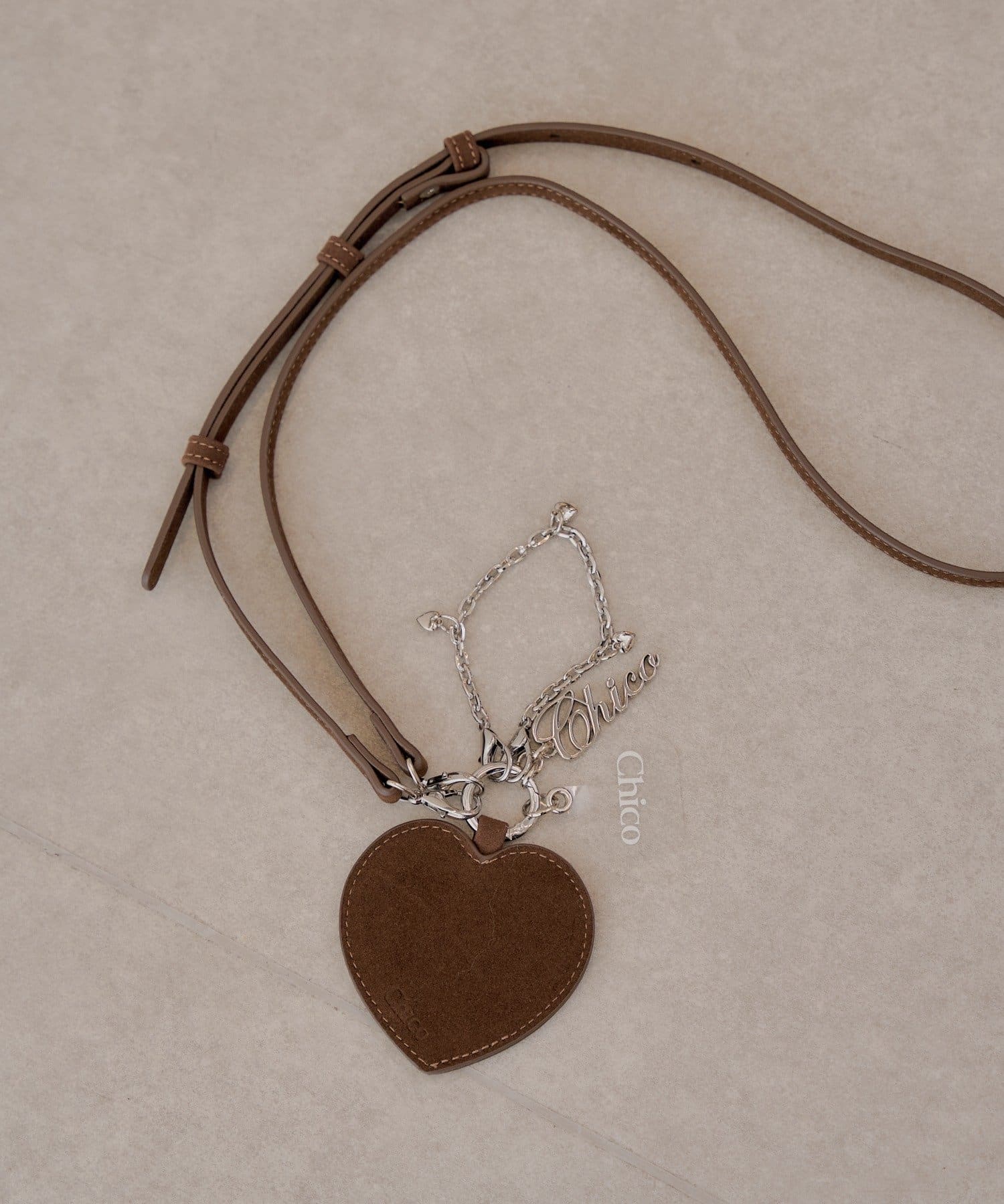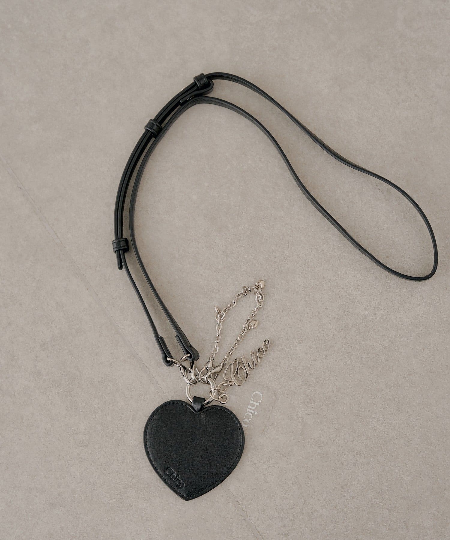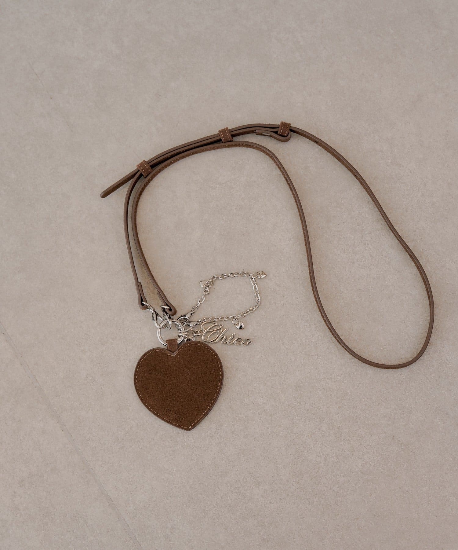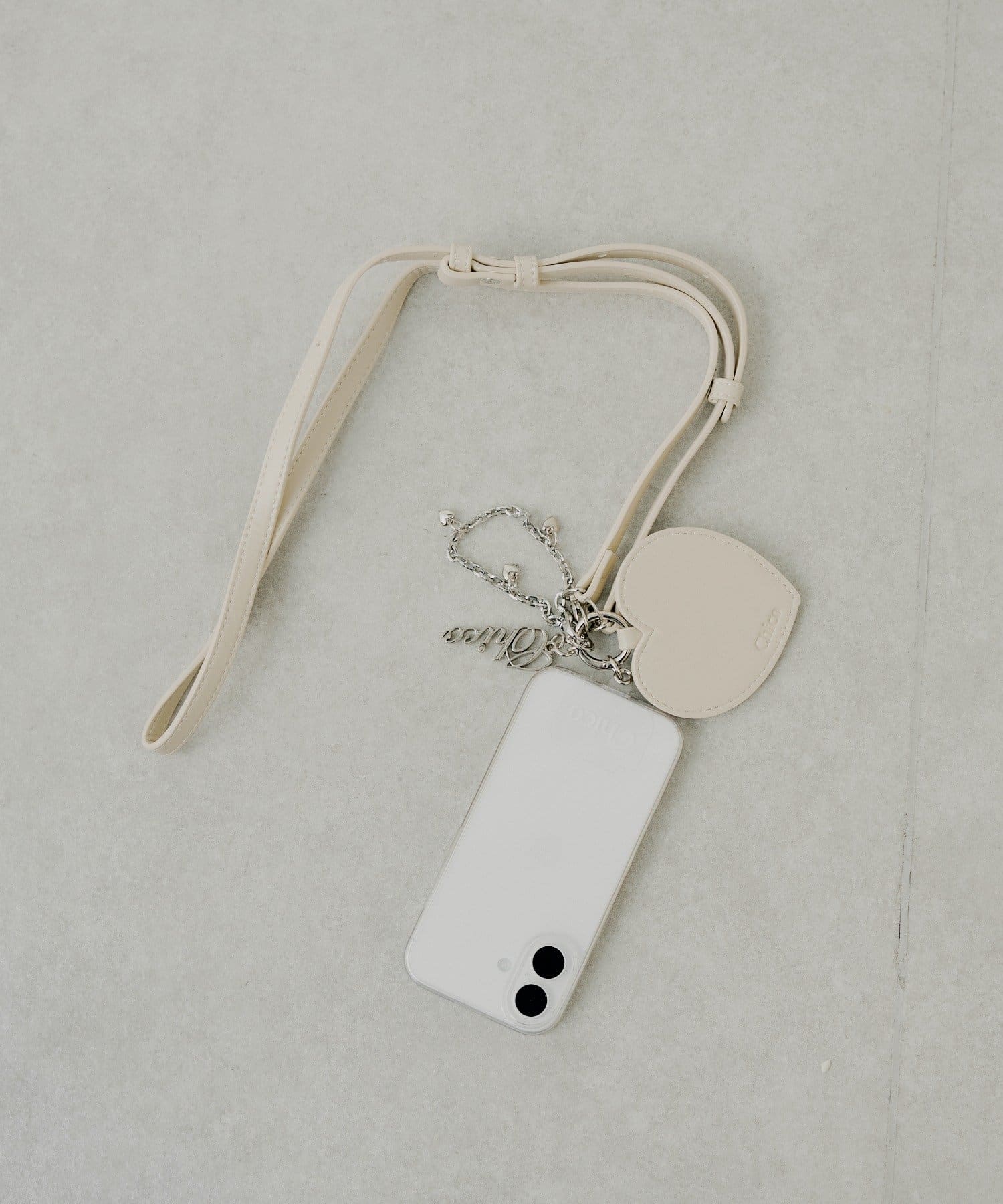 アクセサリー感覚で持ち歩ける、大人可愛いハートチャーム付きスマホショルダー
