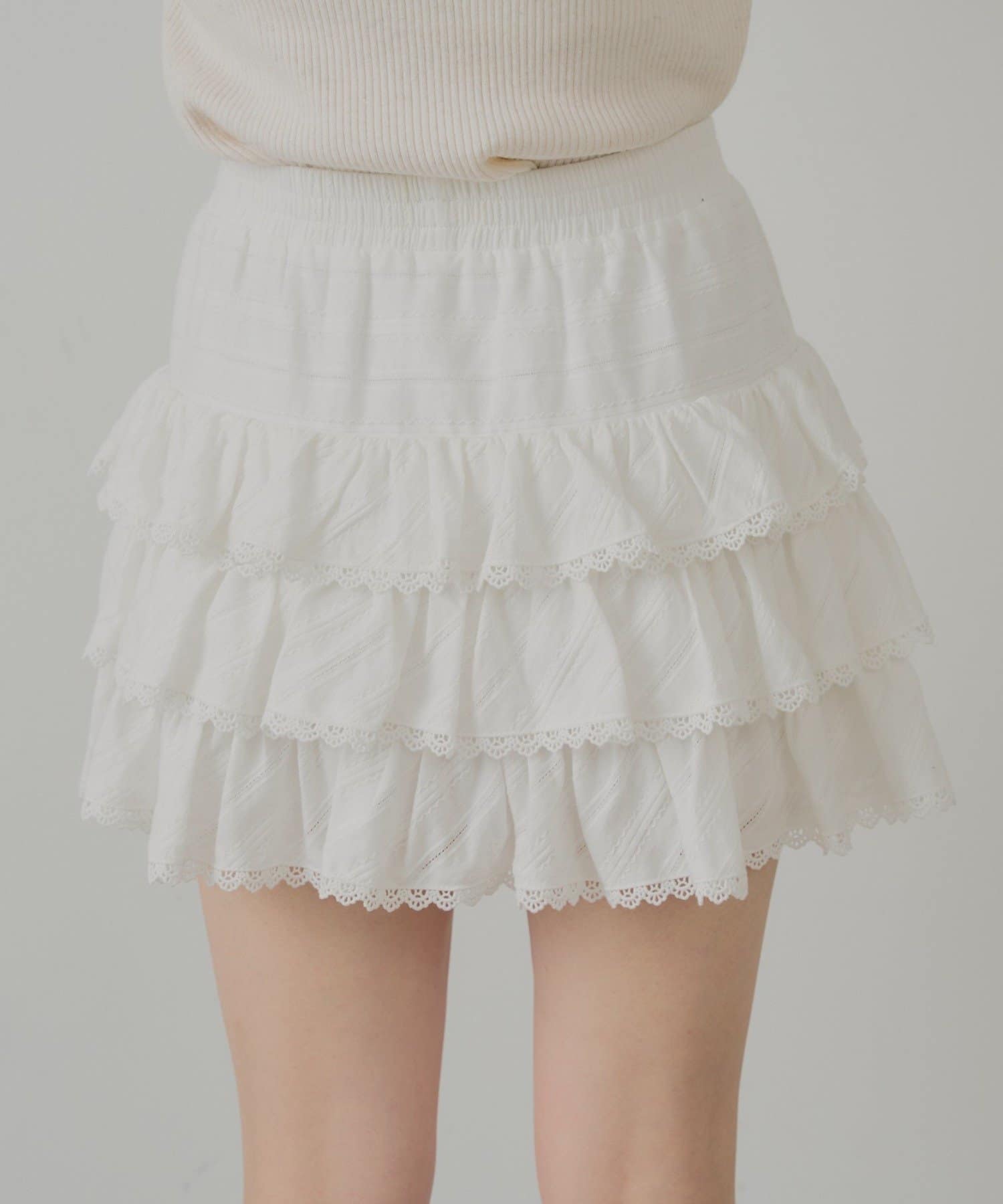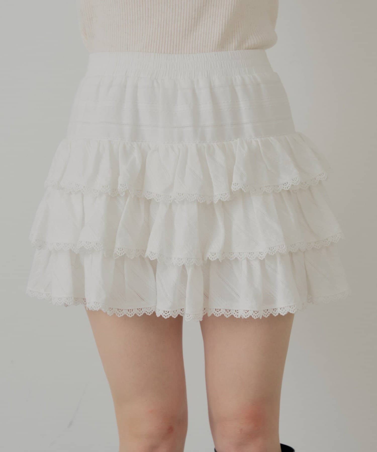 繊細なレースが上品なアクセントを添えるフリルティアードミニスカート登場!