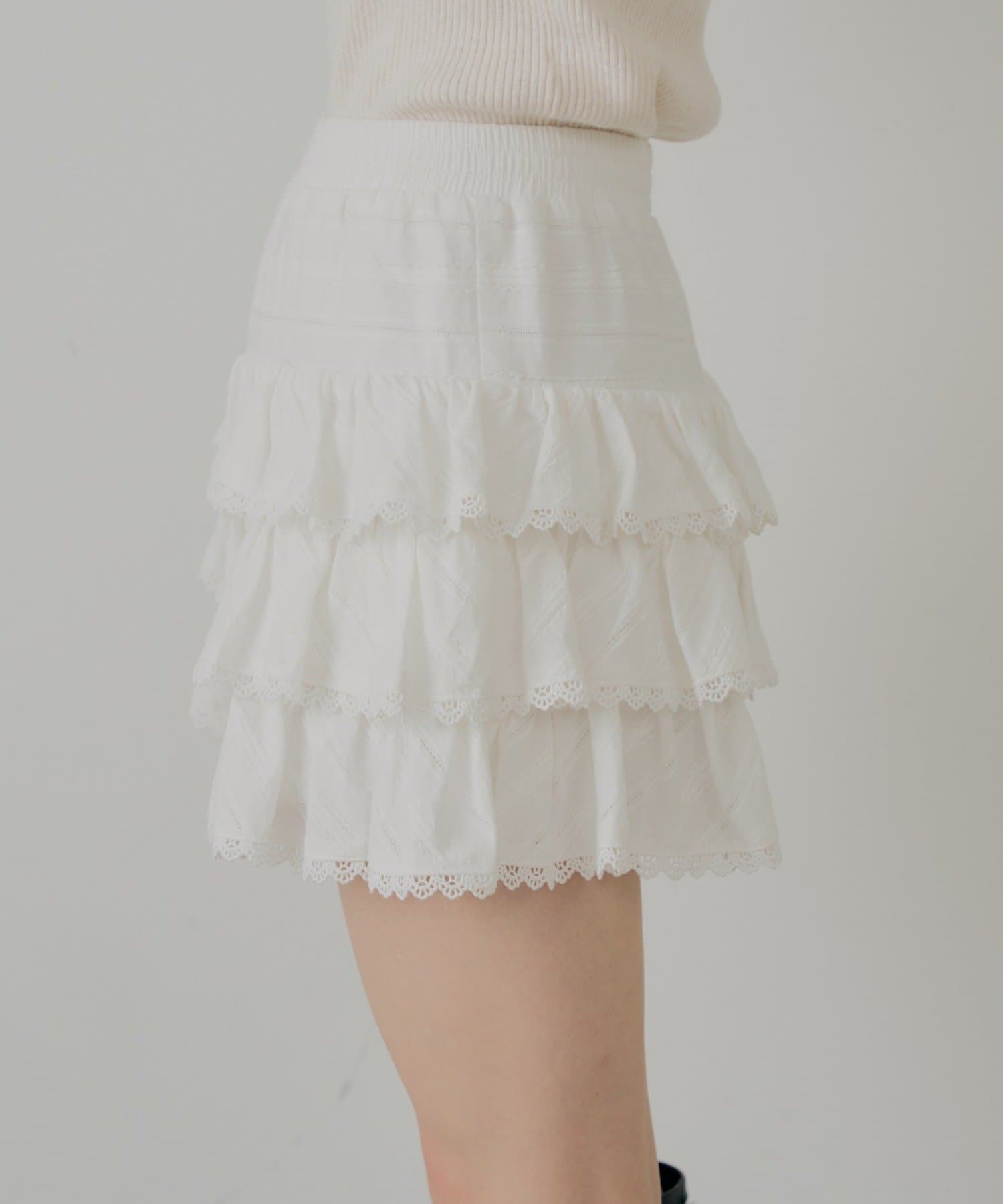 ・贅沢にあしらわれたティアードデザインが魅力のミニスカート。