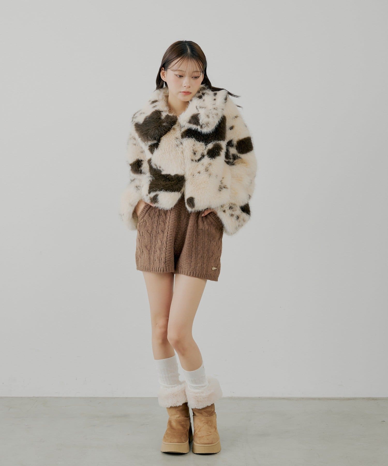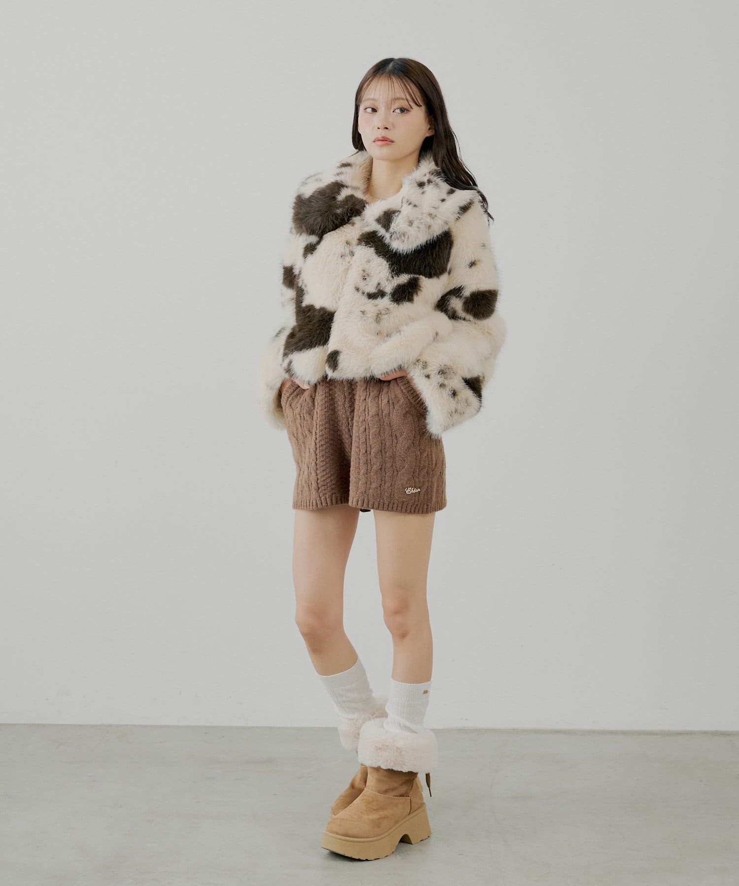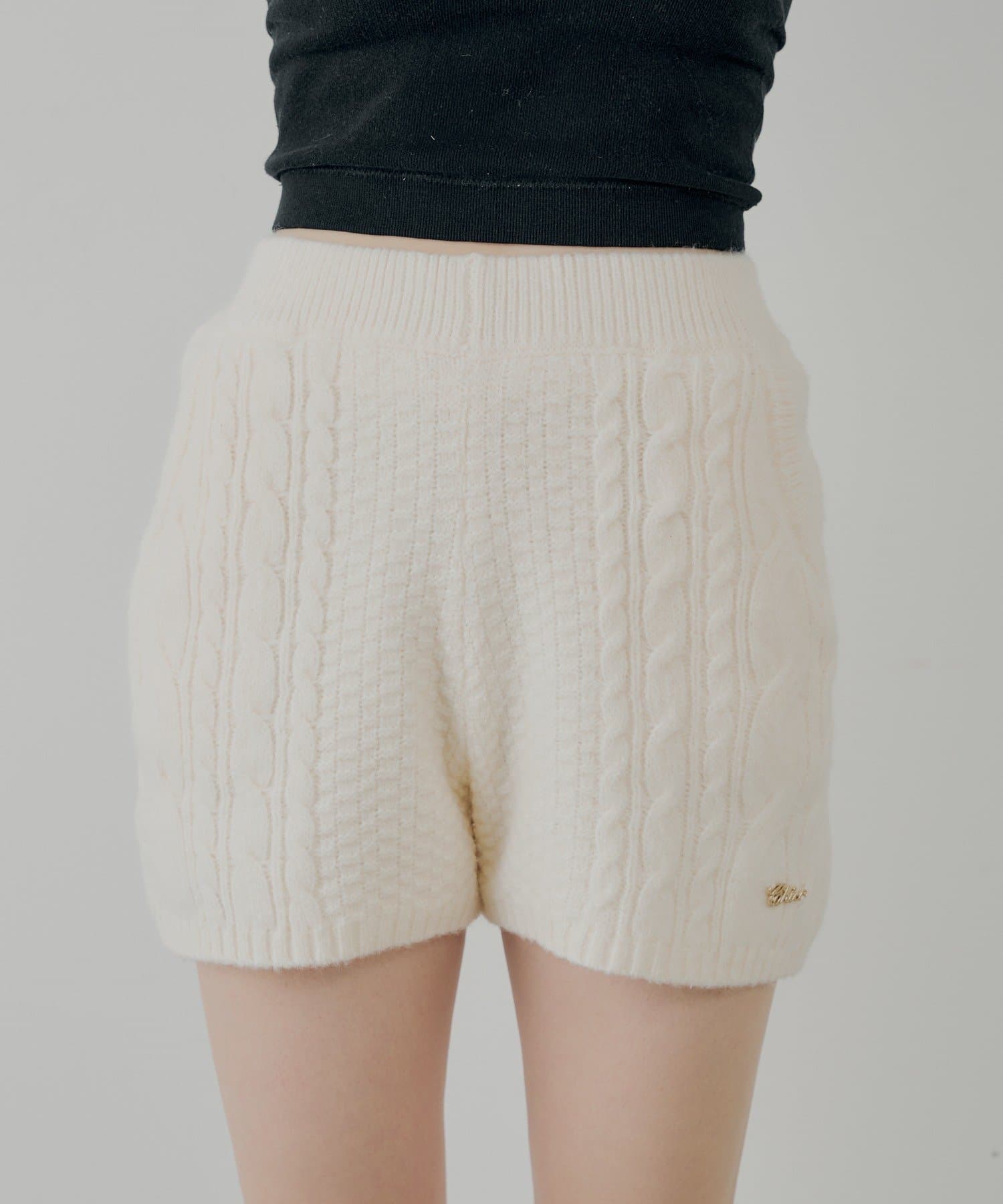 ほっこりとしたケーブル編みが、大人の可愛らしさを引き立てるケーブルショートパンツ