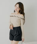 アシンメトリーなデザインで、レディな肌見せを叶えるリブニット登場!