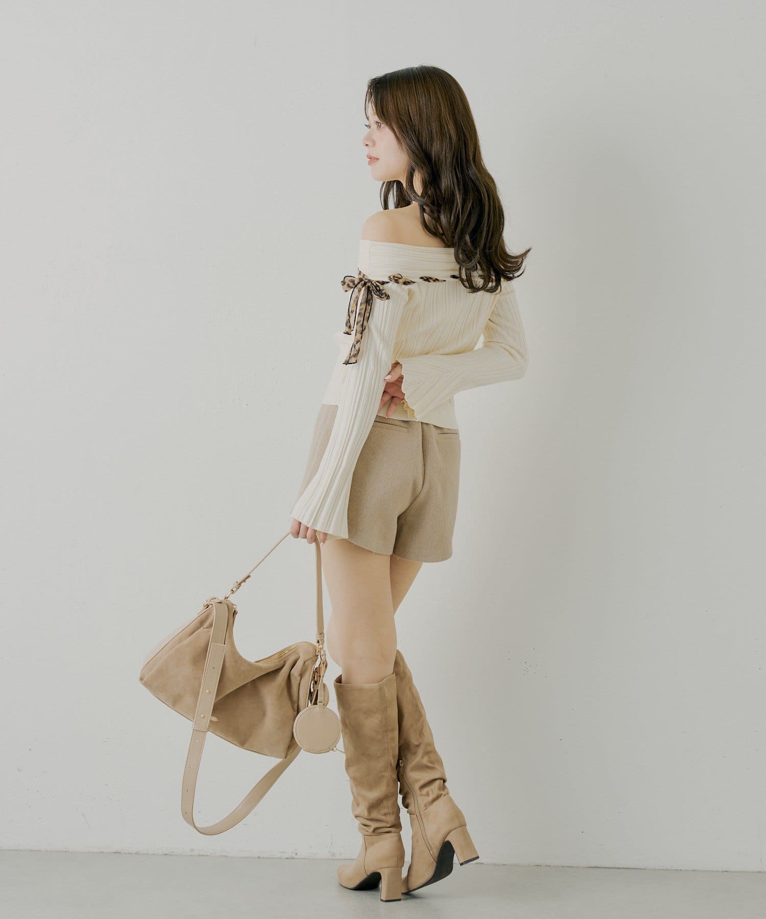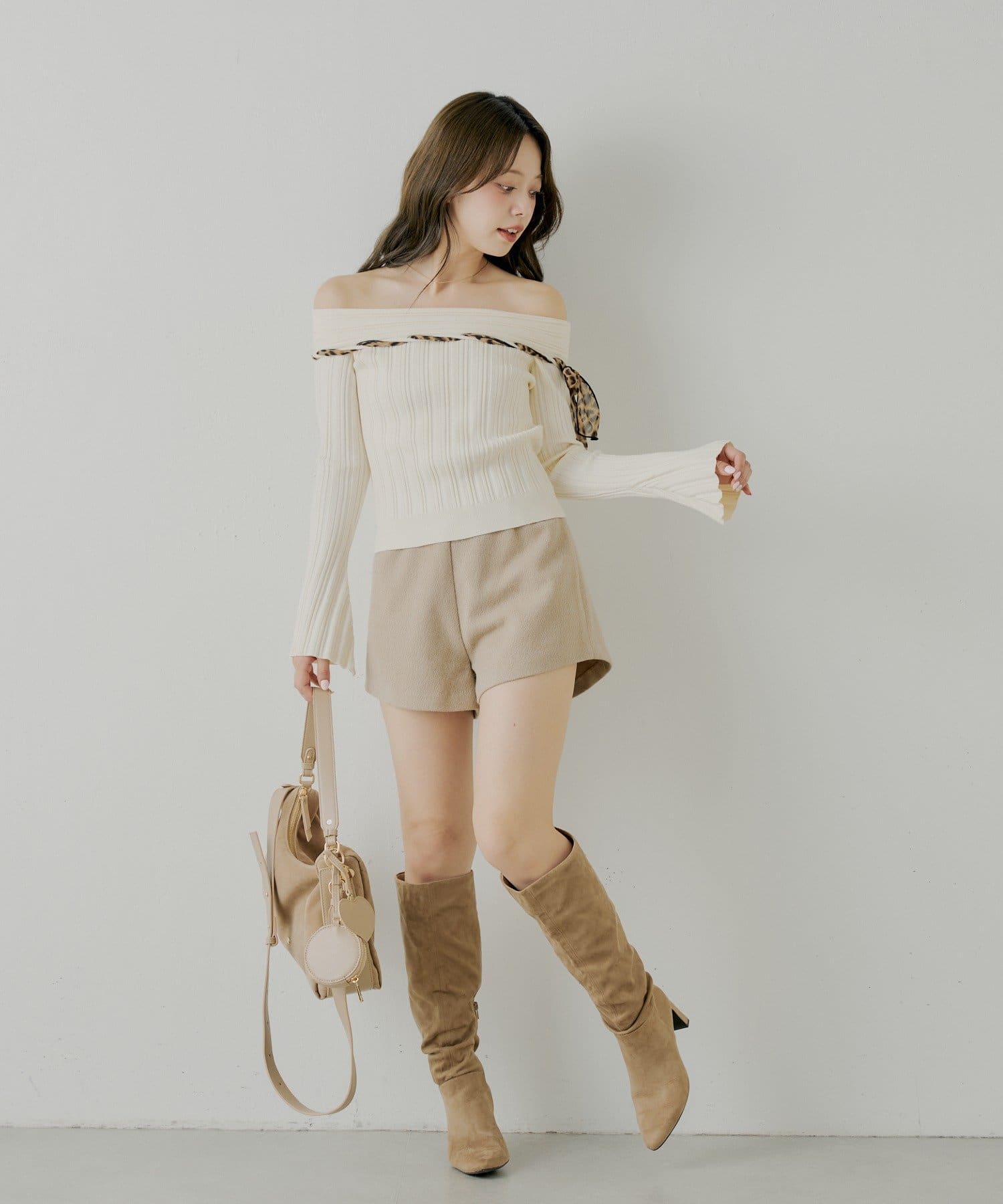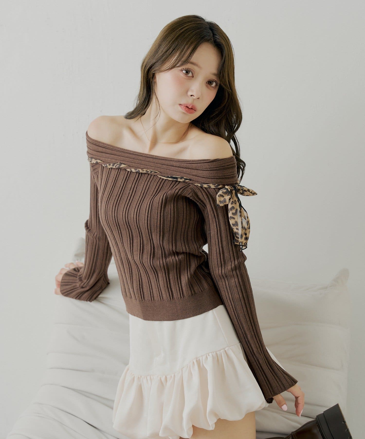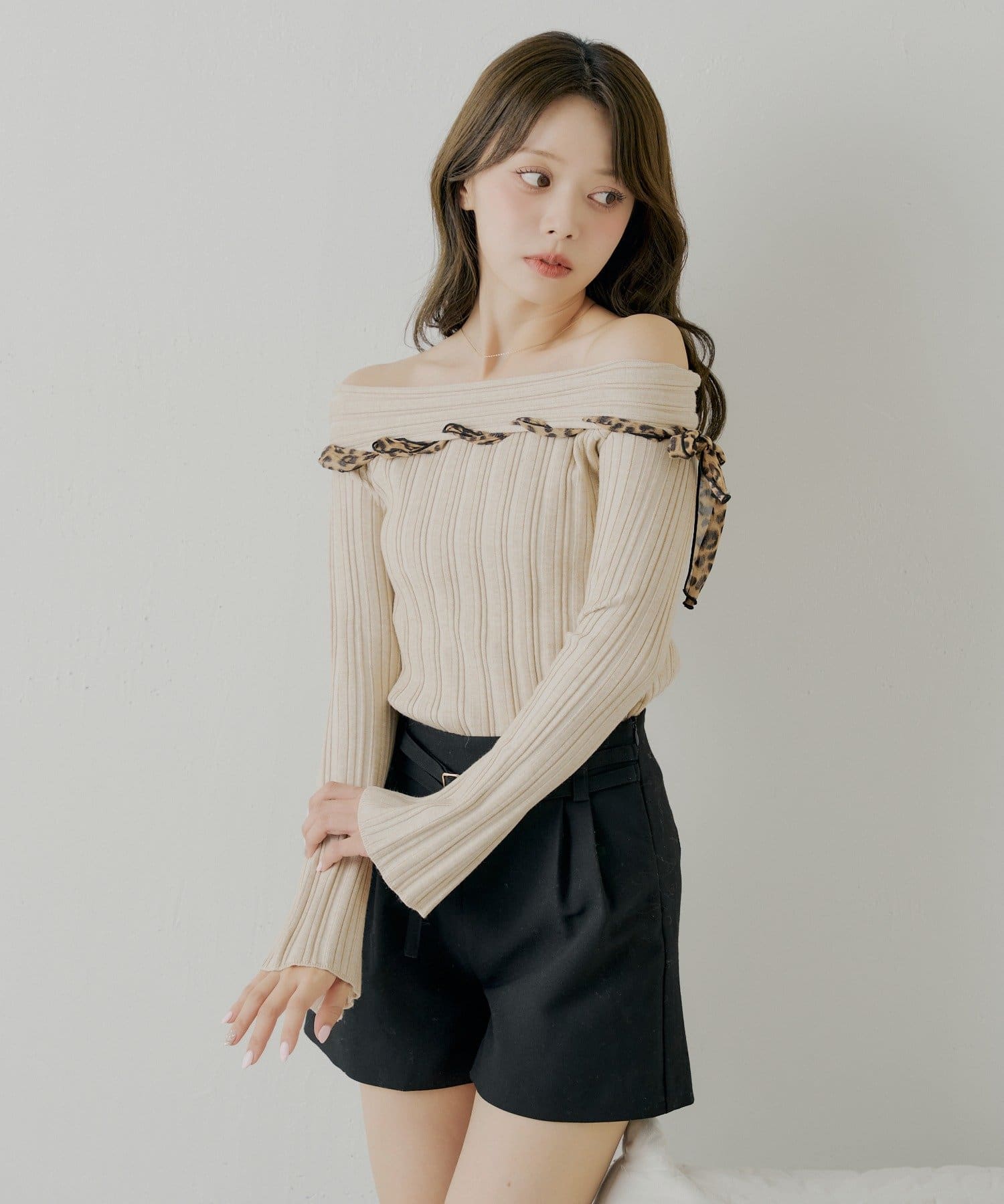 ・肩にあしらわれたリボンは、レオパード柄で、コーディネートのアクセントにも。