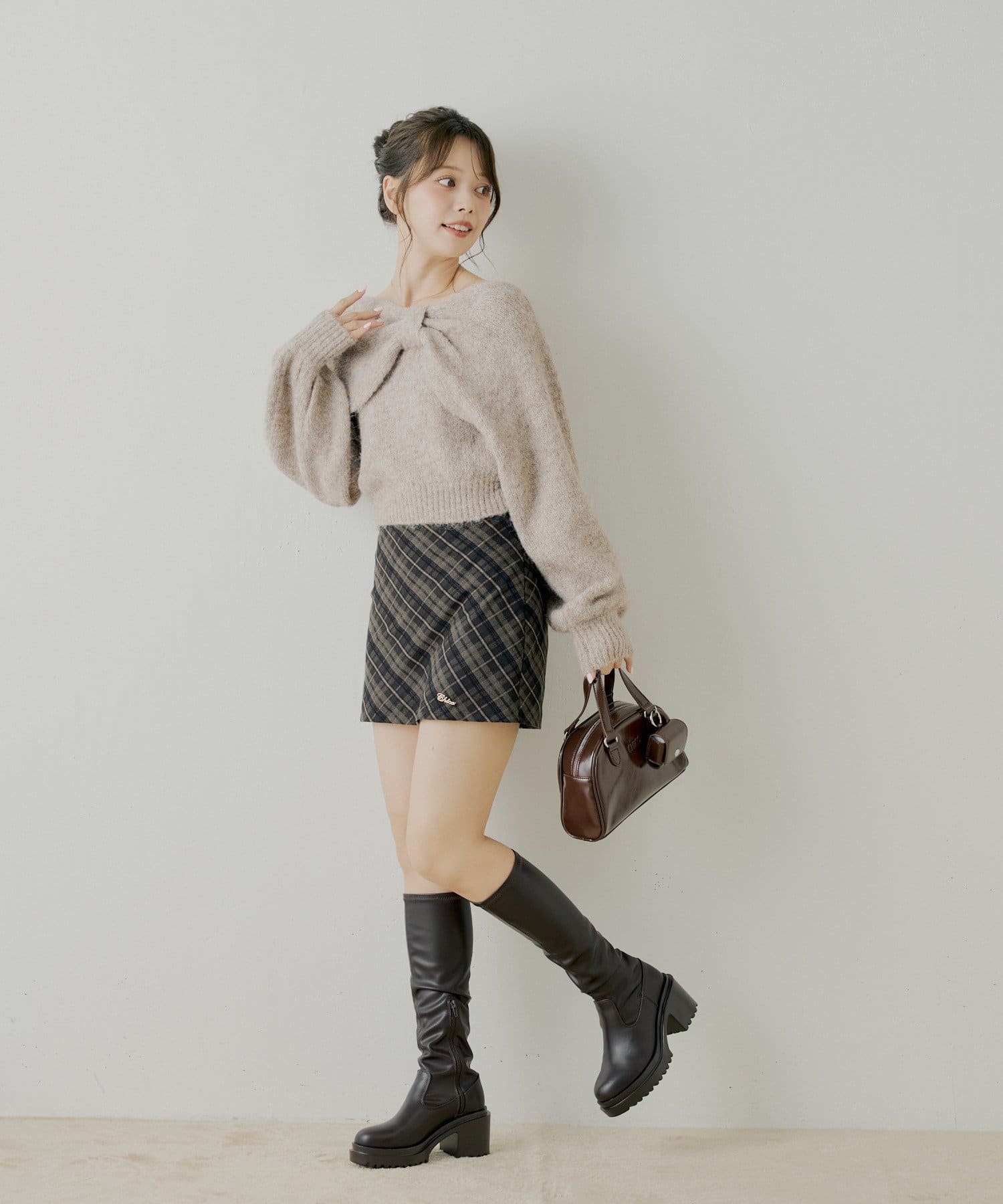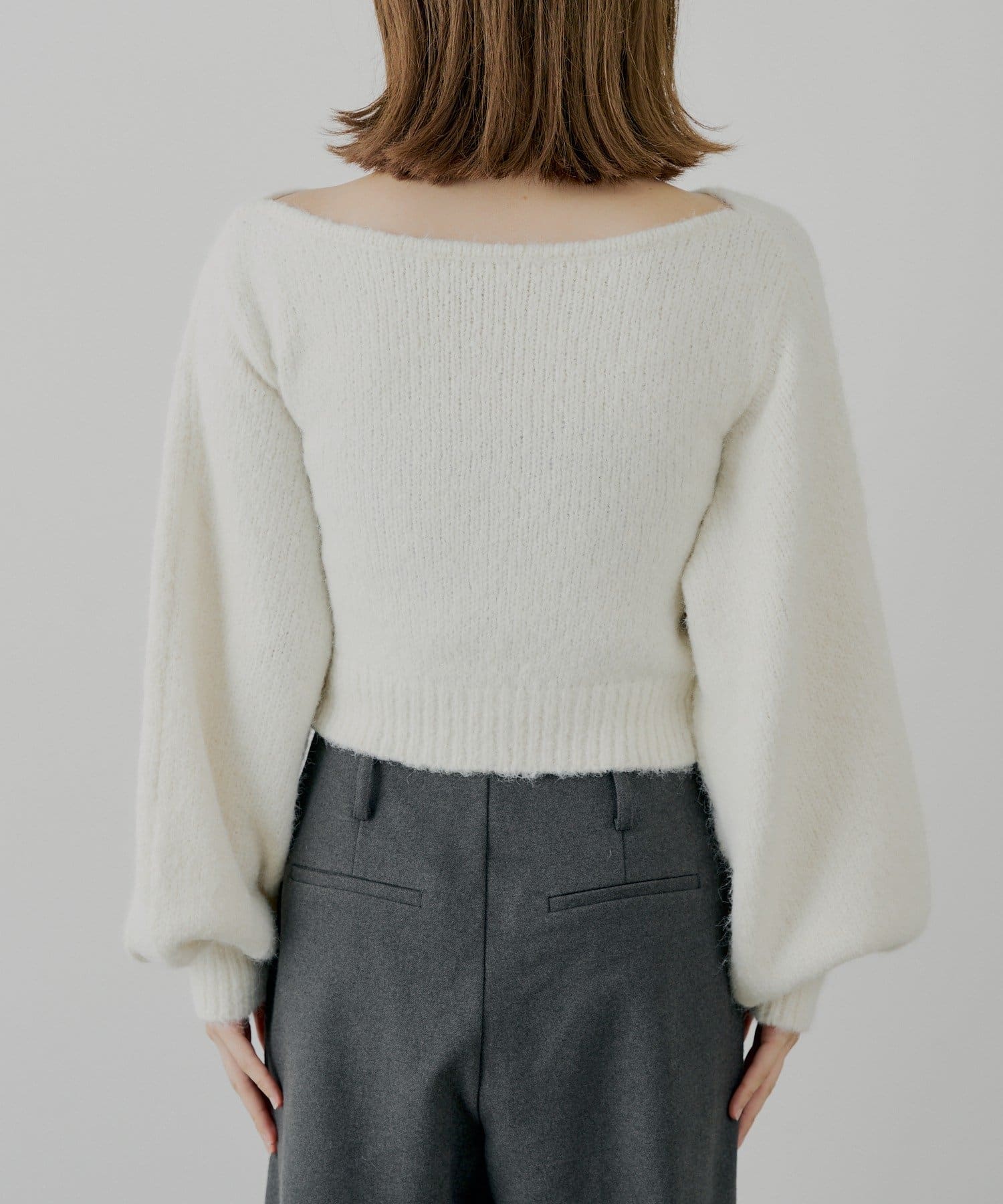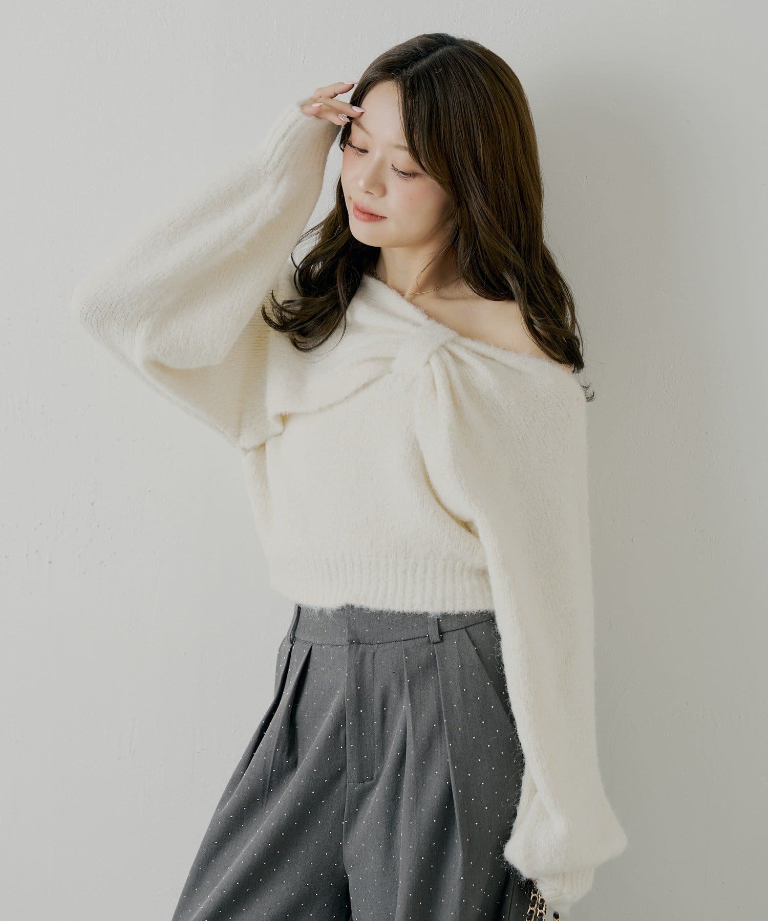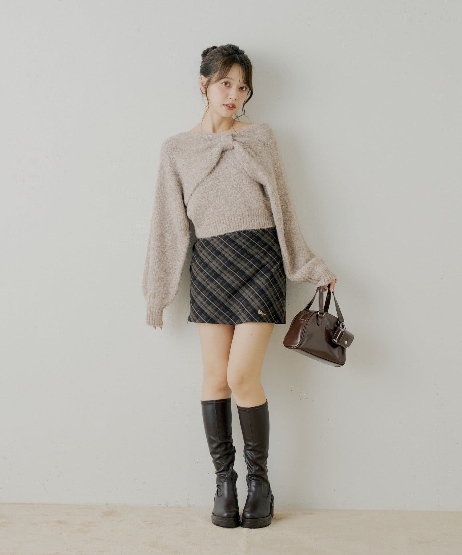 フロントのリボンデザインが目を惹くシャギーリボンデザインニット登場!