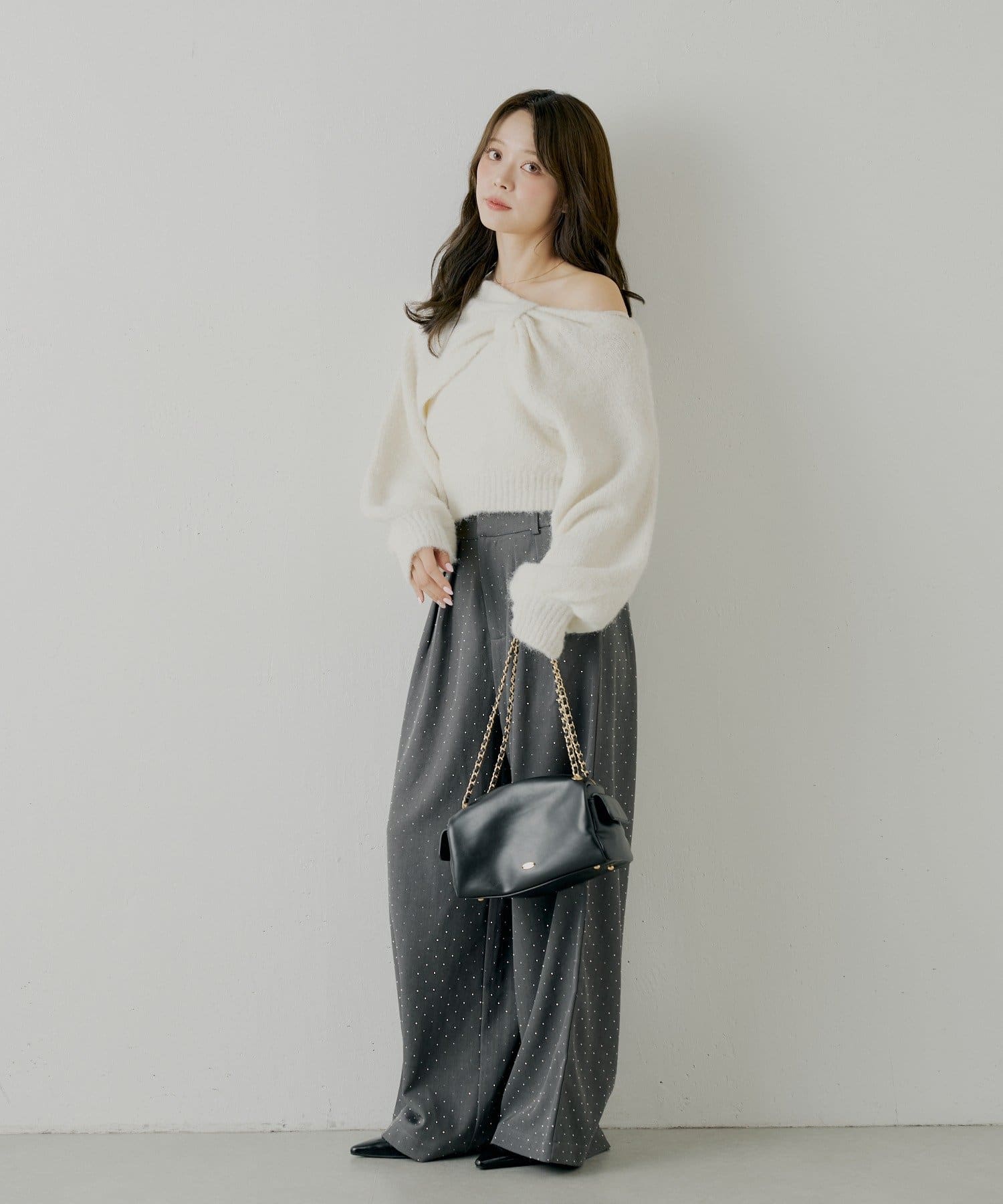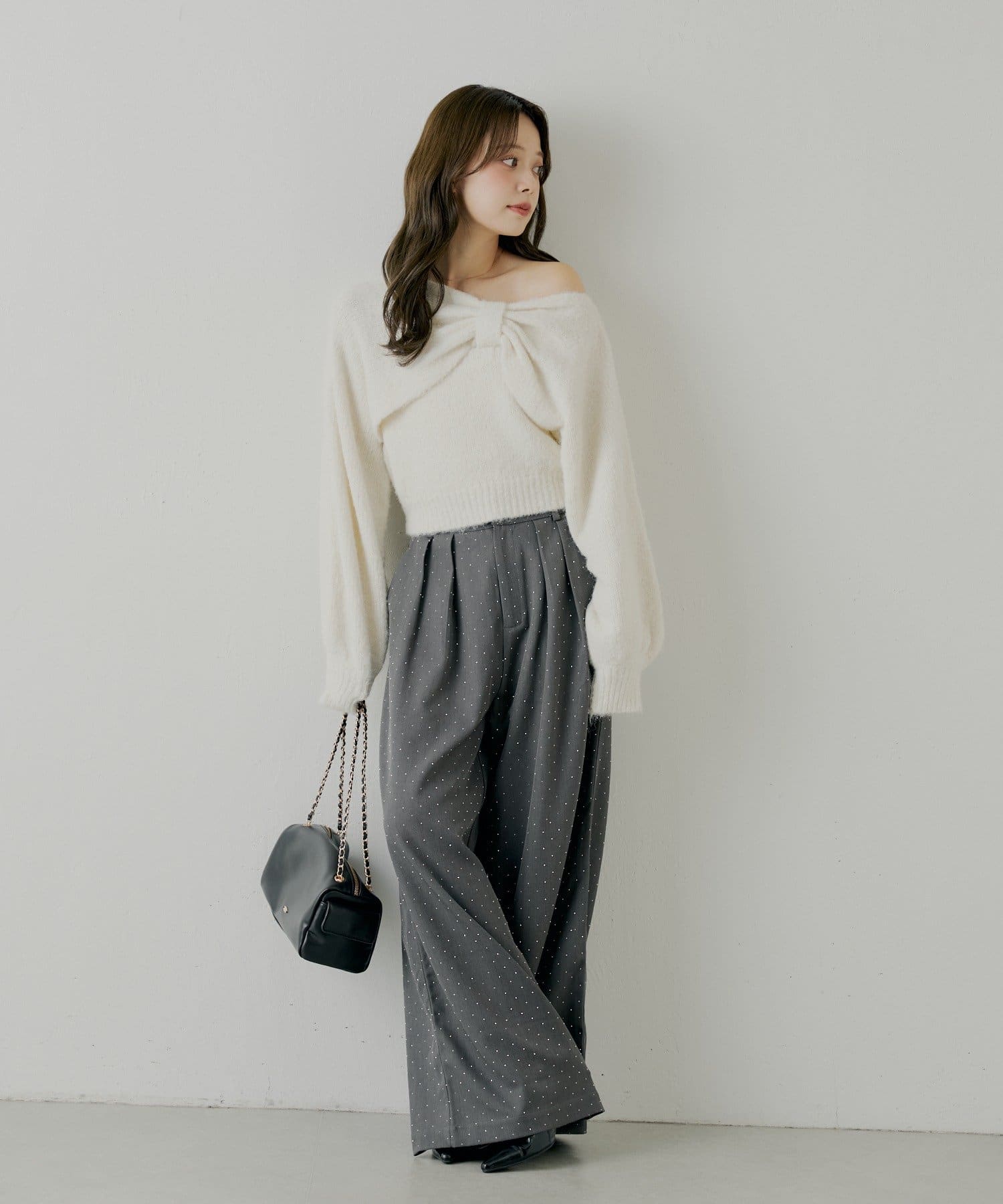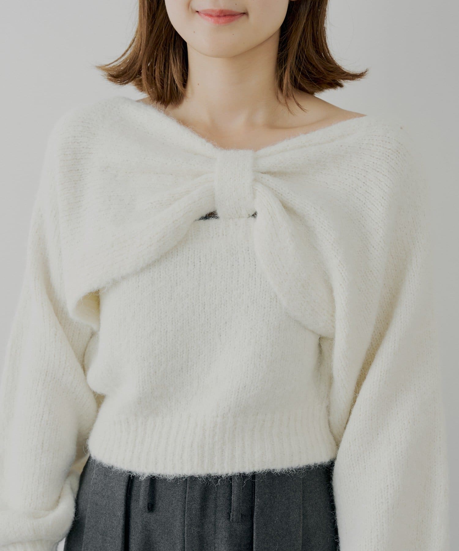 ・フロントのリボンモチーフが、フェミニンなアクセントのニット。