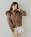 TOP > Chico > レディース > トップス > カーディガン/ボレロ > 【セットアップ対応】ポンポン付きファーフードケーブルニット