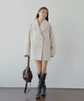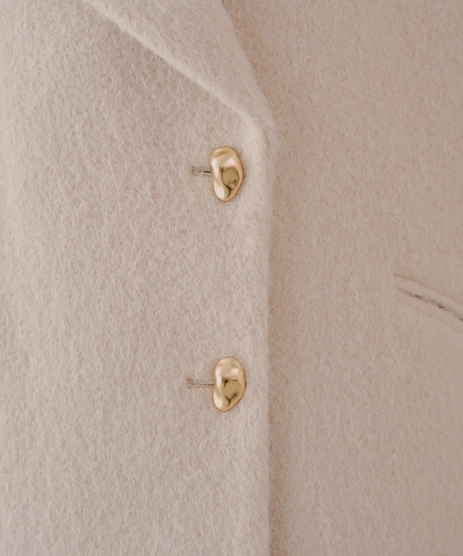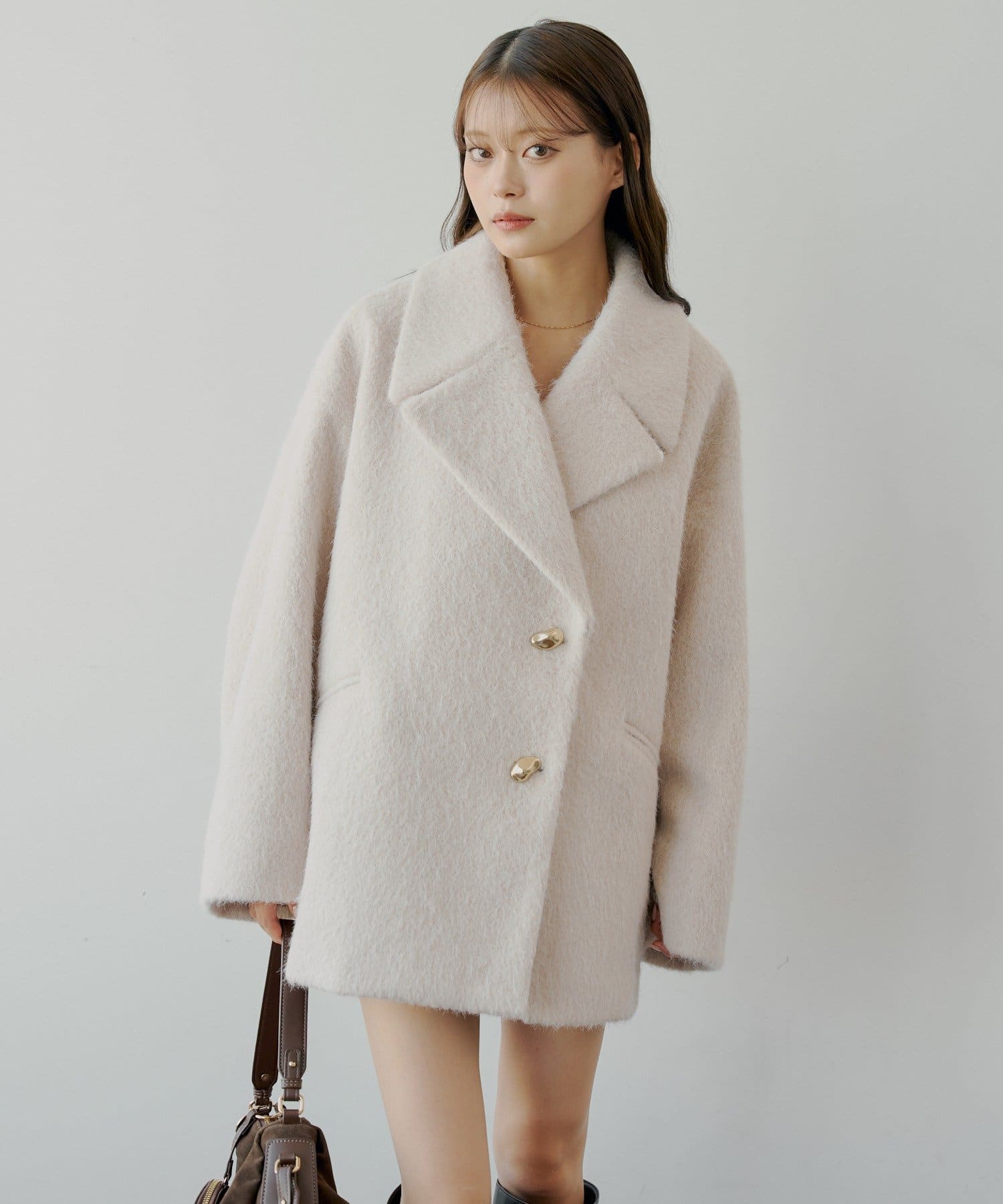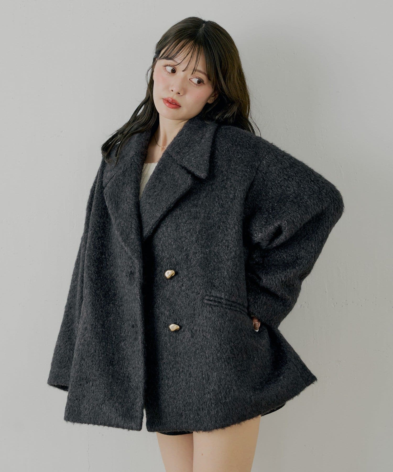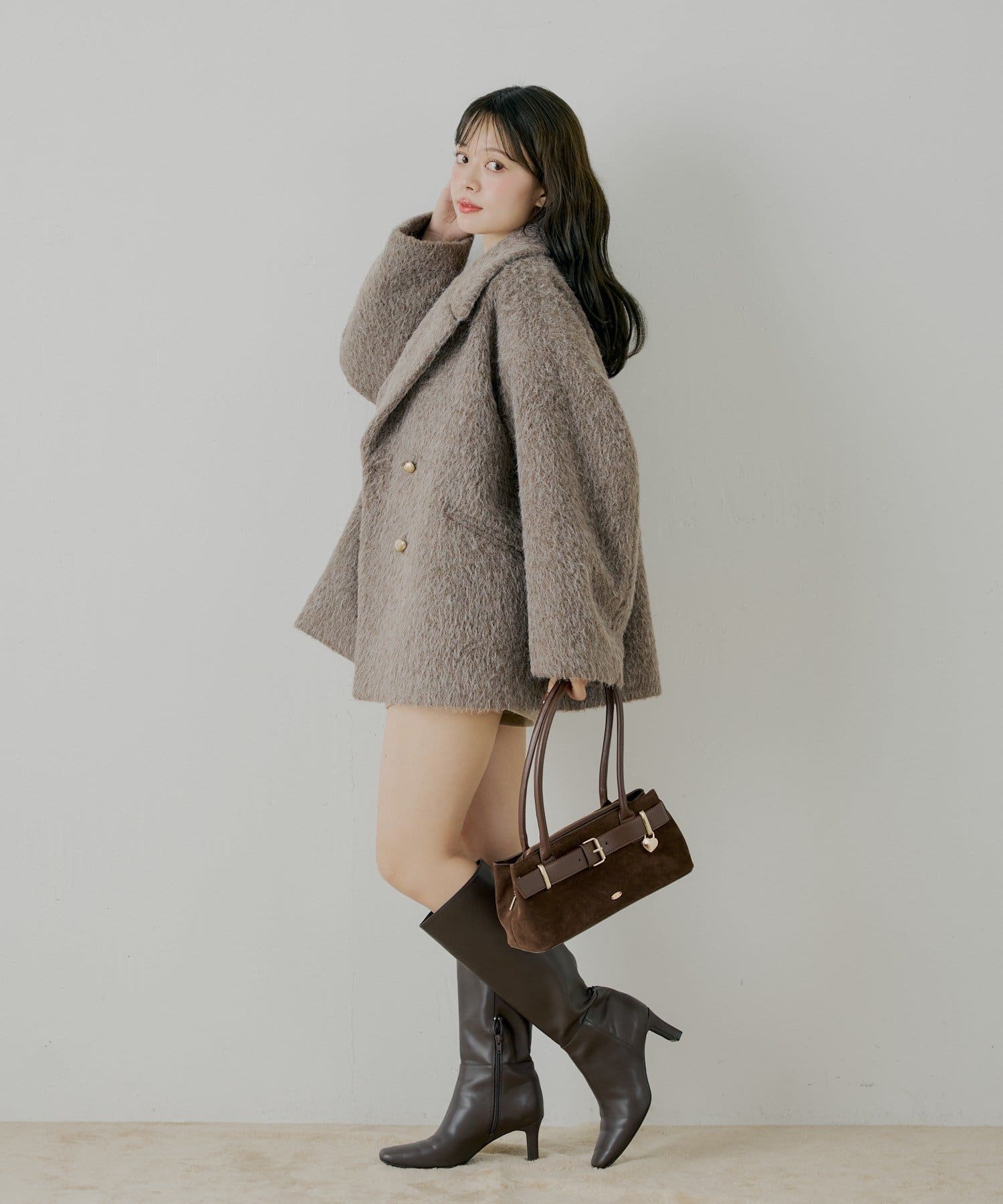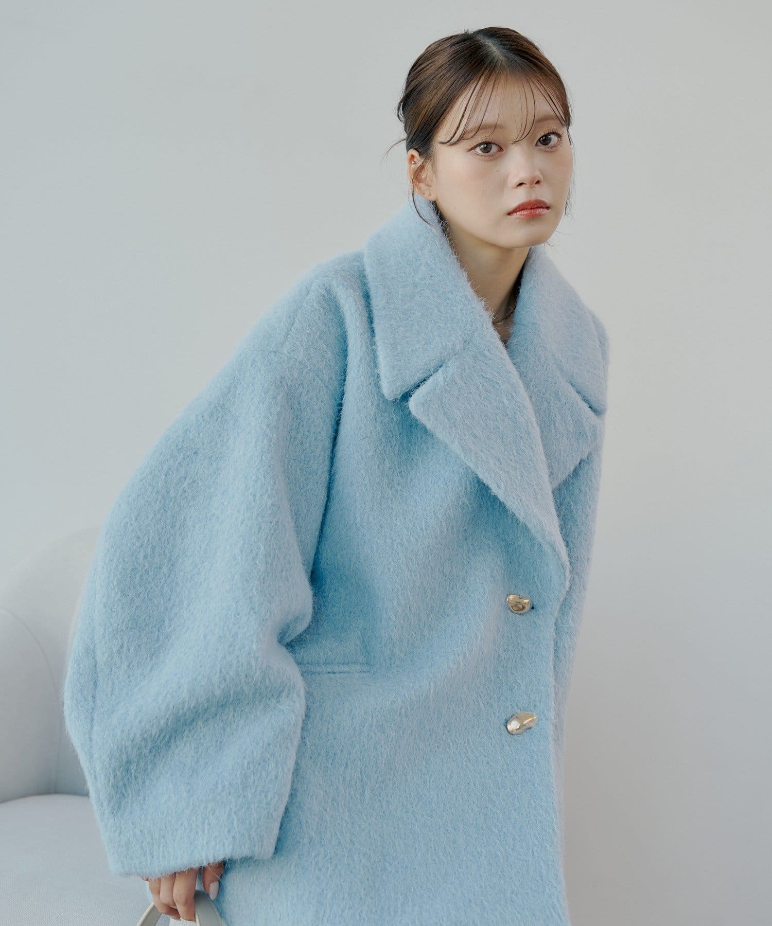 ふんわりと柔らかなシャギー素材が、大人の可愛らしさを引き立てるミディジャケットコート